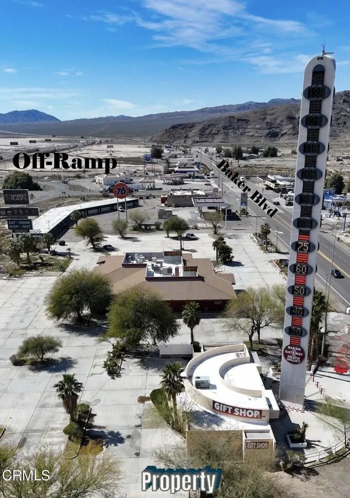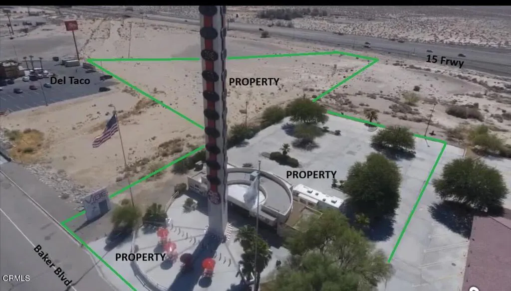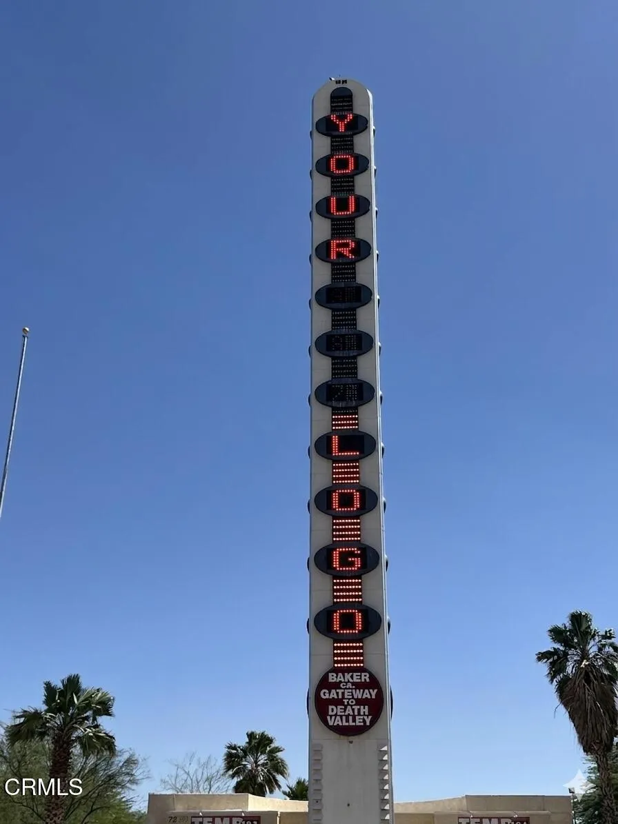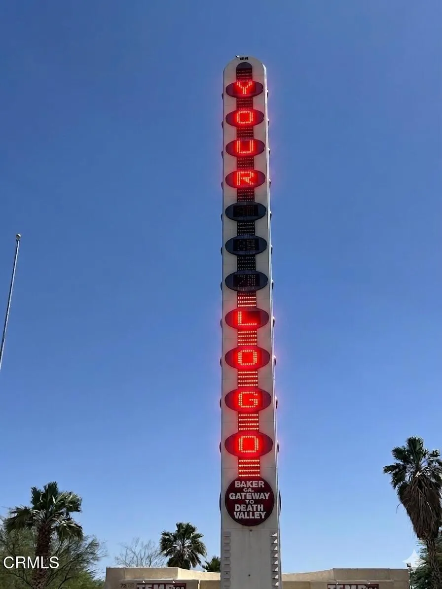For Sale THE ICONIC WORLDS TALLEST THERMOMETER! Known Worldwide. Own this landmark that compels the approximate 21million Vegas bound travelers to stop for their iconic photo op. Let them get a photo of your icon.Between the 15 Frwy and Highway 127 there is a combined annual traffic count of approx. 22 million vehicles to look at your logo. The Thermometer was built with three sides, one side faces the northbound 15 Freeway, one side faces the southbound 15 Freeway, one side faces Highway 127 and Baker Blvd for maximum exposure. Landmark Signage Monetization: The thermometer is, at its core, 134 feet of vertical advertising space.Baker, California is the Midway Hub between the Port of Los Angeles and Las Vegas for truckers who need their first 45-minute electric charge and a quick meal. Most of the travelers on these roads are Vegas tourists and long-hall logistics truckers.With a total of 4.31Acres, reimagine turning this world-famous tourist attraction into an updated income producing Combined Charging System (CCS), with an Electric Vehicle Charging Hub. And for the Big Rig Trucks a Fleet Charging Hub, Truck Charging Plaza or Megawatt Charging System (MCS), with space for big rig turn-around. While the vehicles are charging, turn the 1,107 Square Foot existing building with a large open retail section, large walk-in cooler, outdoor seating areas and restrooms, into a Specialty Coffee House with a fast casual or artisanal express food experience and a nanobrewery for travelers while drivers wait 20-30 minutes for a charge.Conversion or enhancement of the digital temperature display to include high-margin LED advertising space for your logo and or digital out-of-home advertising to create LED screens that rotate different ads thought the day. The upcoming Brightline West high-speed train, when passing Baker, will greatly reduce its speed, compelling train passengers, including tourists, business professionals and international visitors, to look out the window and see the World's Tallest Thermometer and its vertical logo, advertisement. This property has 175 Feet frontage along Baker Blvd.; it goes back 650 feet to the 15 Frwy and 101 feet along the freeway. It is located across the street between the famous Alien Fresh Jerky and Mad Greek Restaurant. The Thermometer is 650 feet from Highway 127 Off-Ramp. The Thermometer has been overhauled and restored to its original function.