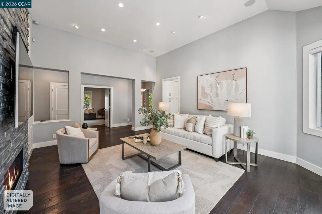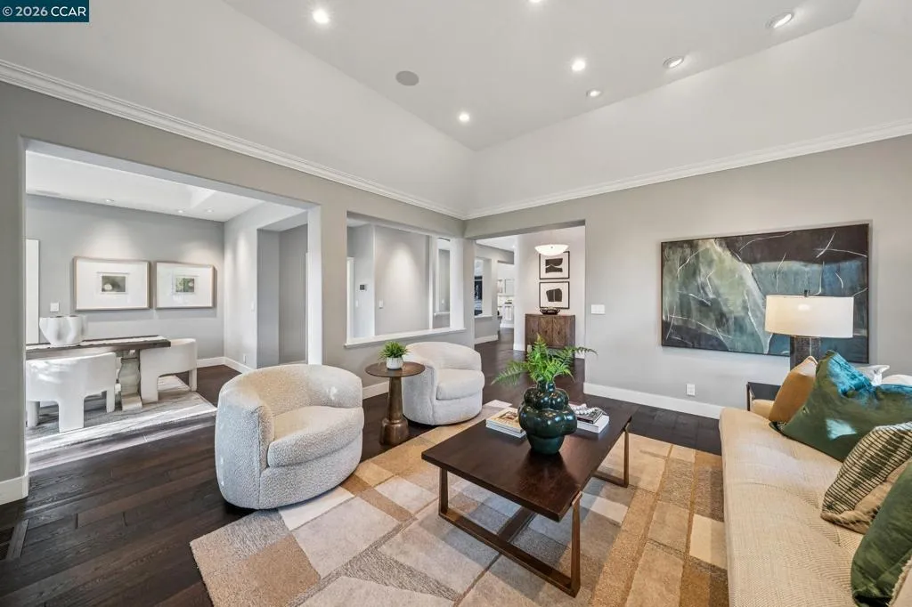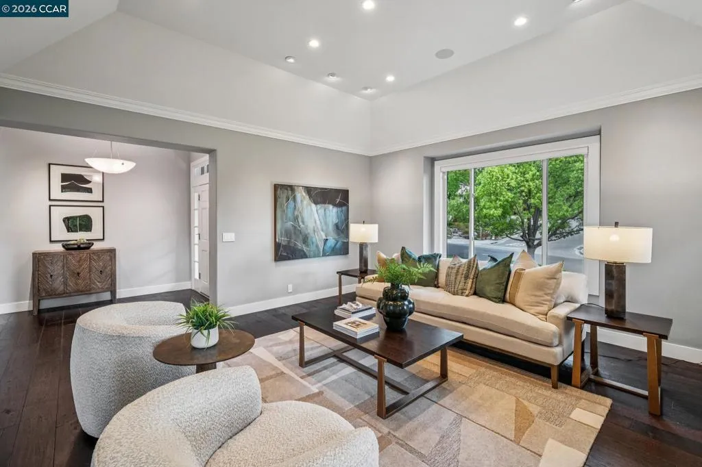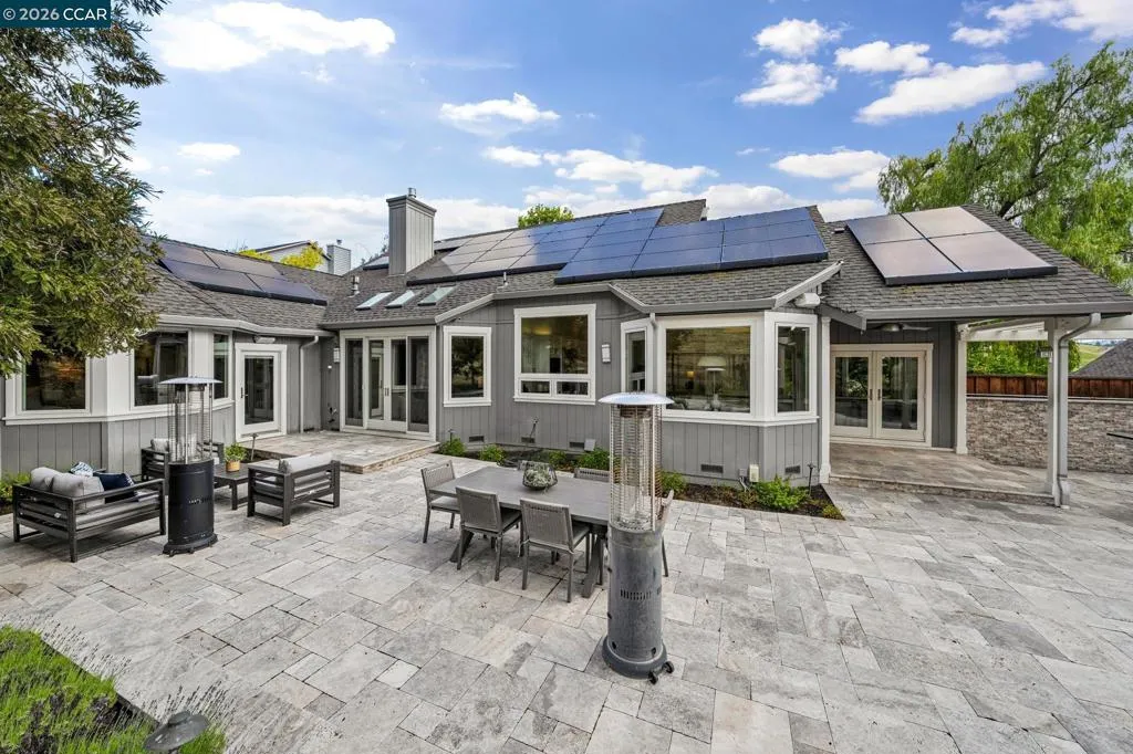 NEW LISTING!!! STUNNING 1 STORY CONTEMPORARY REMODEL in RANCHO PARAISO offers high ceilings, hardwood floors and custom lighting throughout, INVITING LIVING ROOM with modern fireplace and dining room with French patio doors to FABULOUS BACKYARD, DREAM KITCHEN with custom cabinetry, top of the line appliances including Miele cappuccino station, and eat-in dining area with patio doors to FABULOUS BACKYARD, IMPRESSIVE FAMILY ROOM with vaulted ceilings, skylights, art niches, surround sound, modern fireplace and patio doors to FABULOUS BACKYARD, 4 bedrooms includes the PRIMARY SUITE RETREAT with modern fireplace, patio door to FABULOUS BACKYARD and remodeled primary bath with HEATED FLOORS and walk-in closet, 3 additional bedrooms includes 2 bedrooms with BUILT-INS including cabinetry, desk, and murphy bed that share remodeled Jack & Jill bath, 4th bedroom with built-in desk, window seat and cabinetry adjoins remodeled full bath, LARGE 3 CAR GARAGE with epoxy floors and extensive storage, STATE OF THE ART CONTROL 4 SYSTEM and BUILT-IN SPEAKERS throughout home, OWNED SOLAR SYSTEM with TESLA BATTERIES, and FABULOUS BACKYARD featuring expansive patios including a covered outdoor patio area with lighting and fan for dining Alfresco, BUILT-IN BBQ with seating bar and beverage refrigerator, BUILT-IN SPEAKERS, mature trees and GORGEOUS POOL/SPA with a sheer descent waterfall and custom lighting... Excellent Northgate Schools. Close proximity to local trails, Arbolado Park, Mt. Diablo, Shadowbrook Winery, Boundary Oak Golf, Whole Foods Shopping and so much more!!