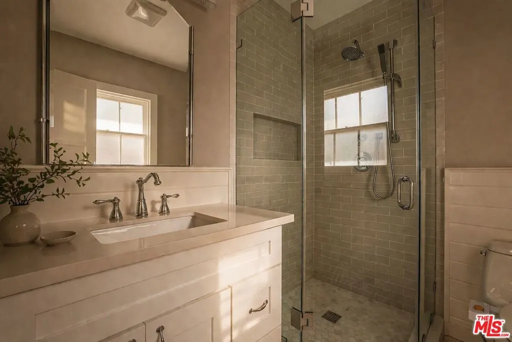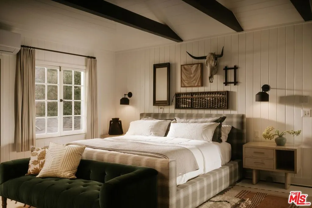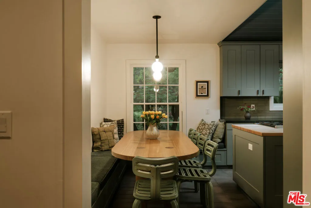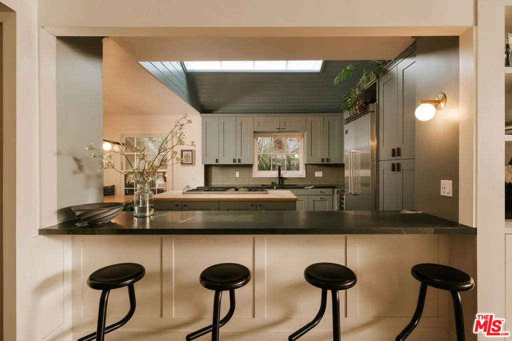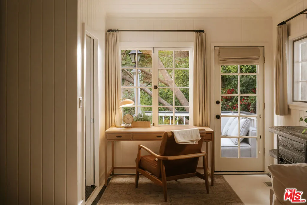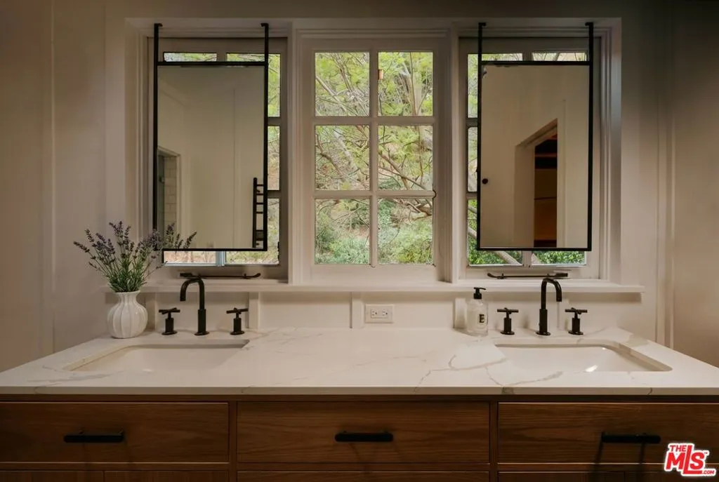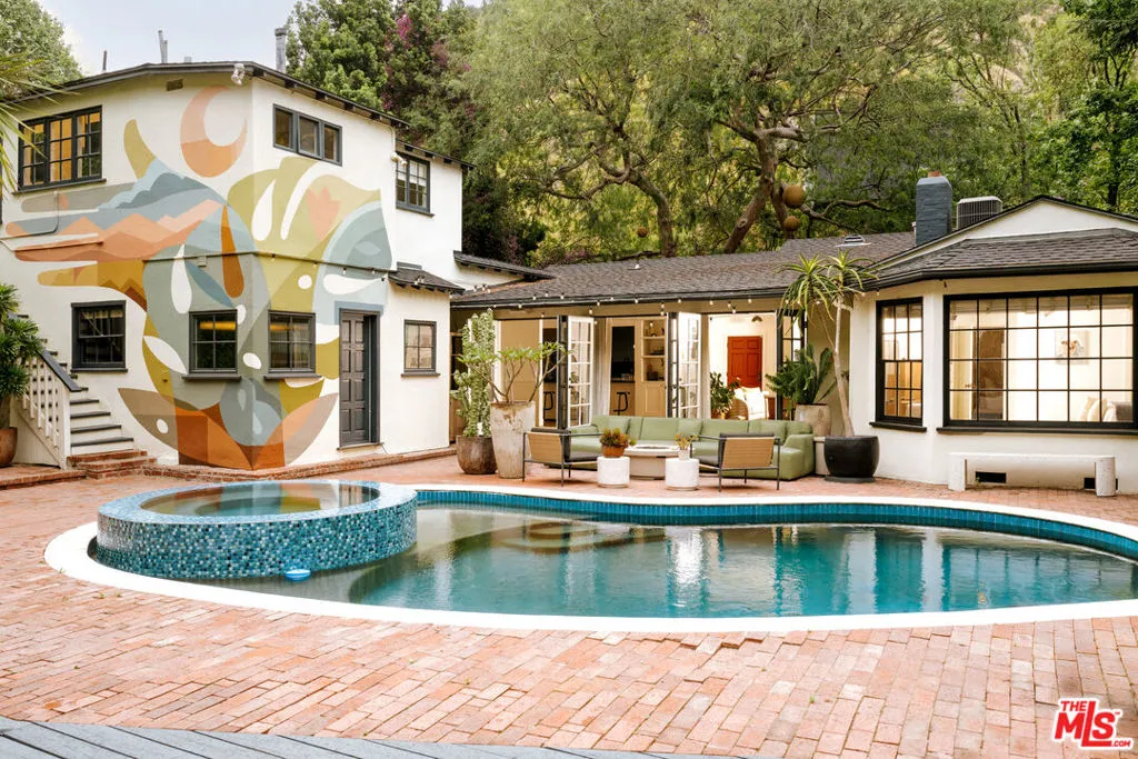 Tucked into the coveted hills of Nichols Canyon, just moments from the Sunset Strip, this gated, fully reimagined estate offers a rare private resort experience in the heart of Los Angeles. Enveloped by lush gardens and mature landscaping, the residence blends sophisticated design with effortless indoor outdoor living, creating a setting that feels worlds away from the city, with a nearby creek and the sounds of wildlife giving a sense of calm and seclusion despite being moments from the best of LA. A formal living room with fireplace, a beautifully renovated chef's kitchen with custom built-in banquette, and an expansive media room with theater-quality surround sound create spaces equally suited for intimate living and grand entertaining. Designed to embrace its tranquil setting, the living and dining areas open seamlessly to a spectacular outdoor retreat featuring a newly remodeled pool and spa, surrounded by curated landscaping by Studio John Sharp. The main level also includes a spacious guest suite overlooking the pool, along with two additional rooms ideal for guests, offices, or creative studios. Occupying the entire upper level, the luxurious primary suite is a true sanctuary, complete with fireplace, private patio, and a spa-inspired bath featuring a steam, triple rain-head shower, and dual vanities. Thoughtfully designed at every turn, with ideal scale, privacy, and seamless flow, 2015 Nichols Canyon is a rare turnkey retreat, an urban oasis where nature and city living exist in perfect balance.