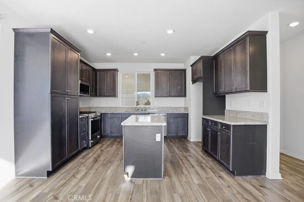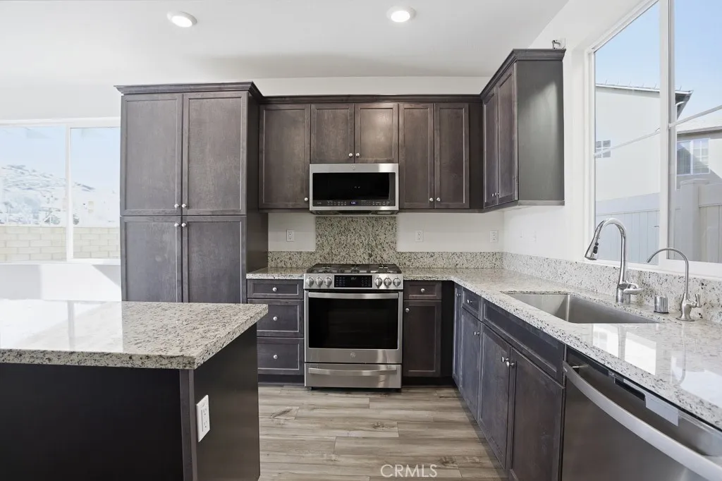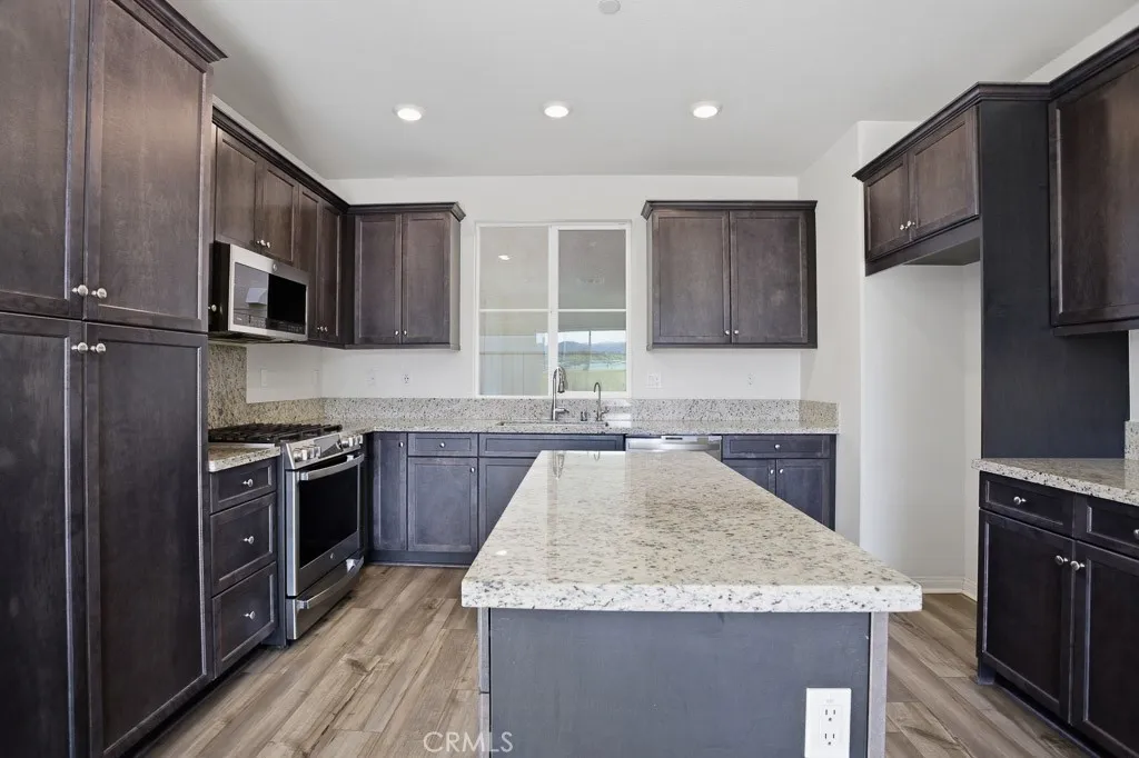 Welcome to 570 Jubilee Place in the desirable Harvest at Limoneira community of Santa Paula. Built in 2022, this 4-bedroom, 3.5-bath home offers a modern open floor plan, flexible living space, and a large backyard with mountain views. The main living area flows seamlessly into the kitchen and dining space, creating a comfortable layout for both everyday living and entertaining. The kitchen features granite countertops, a large center island, and stainless-steel appliances, including a gas range, dishwasher, and microwave. Updated LVP flooring adds a clean, modern touch throughout the main downstairs living areas and upstairs living space. A main-level junior suite provides flexible use for guests, extended stays, multi-generational living, and added privacy. Upstairs, the loft offers versatile space for a home office, media room, playroom, or game room. The spacious primary suite features, a walk-in closet, and an ensuite bathroom with dual vanities, a separate tub, and a separate shower. Additional highlights include an upstairs laundry room and a 2-car garage with space for parking and storage. The spacious backyard is ideal for outdoor dining, entertaining, or enjoying the surrounding views. This home is clean, well-maintained, and move-in ready. Located in the sought-after Harvest at Limoneira master-planned community, residents enjoy access to amenities including a pool, spa, fitness center, parks, playgrounds, and walking paths. Conveniently located near shopping, dining, and commuter access, this home offers a great combination of modern design, functional space, and community amenities.