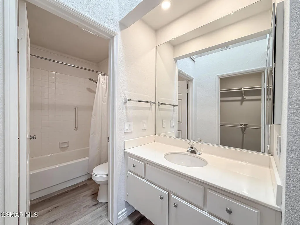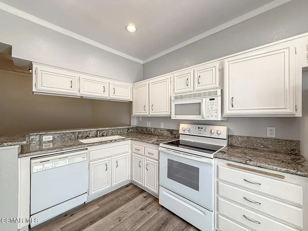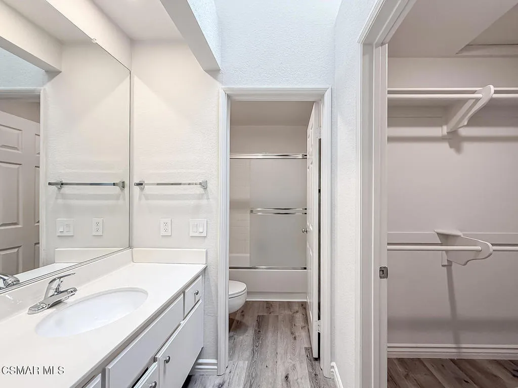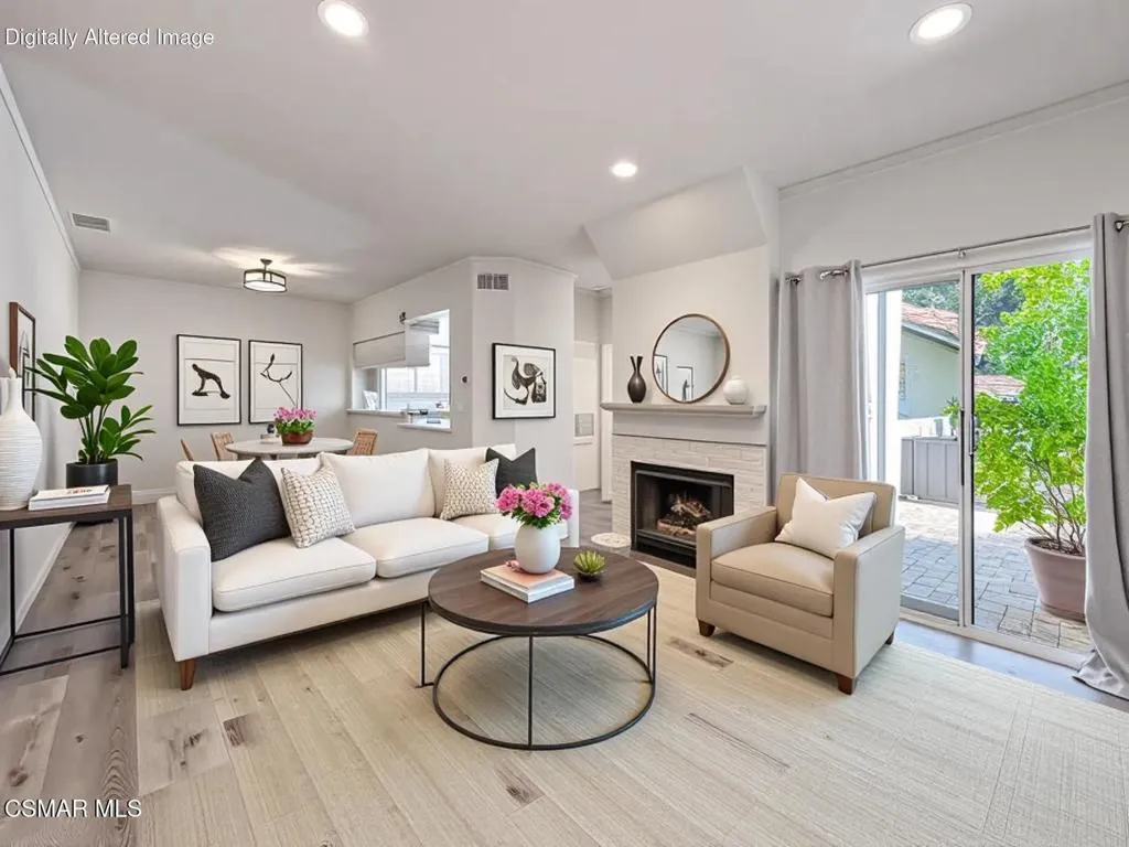 Fantastic Light & Bright Shadow Oaks Townhome with TWO Primary Bedrooms and direct garage access! A charming front patio welcomes you in where you are greeted by HANDSOME upgraded wood-like flooring found THROUGHOUT the home! The spacious Living Room is anchored by a charming gas fireplace and features an abundance of natural light from sliding glass doors which access the front patio. The Dining Room is ready for both formal & informal entertaining alike and flanks the UPGRADED Kitchen which showcases ATTRACTIVE granite countertops, LOTS of upgraded cabinetry, a ROOMY pantry, and DESIGNER appliances. A pair of sliding glass doors opens to the patio to fill the Kitchen with natural light! The staircase + downstairs powder room enjoy a continuation of upgraded wood-like flooring and the upstairs landing provides linen cabinet storage space. Both bedrooms offer TALL VAULTED ceilings, upgraded wood-like flooring, recessed lights, WALK-IN closets, and en-suite bathrooms fitted with built-in vanities and tub-showers. One of the bedrooms highlights sliding glass doors to a private balcony! The garage is accessed via the brick-surfaced outdoor patio and has TONS of built-in storage cabinetry and hosts the unit's Laundry area. At this tranquil community, you have access to a glimmering community POOL & SPA, access to AWARD-winning schools, and FANTASTIC local hiking & biking trails! CONVENTIONAL FINANCING AVAILABLE!