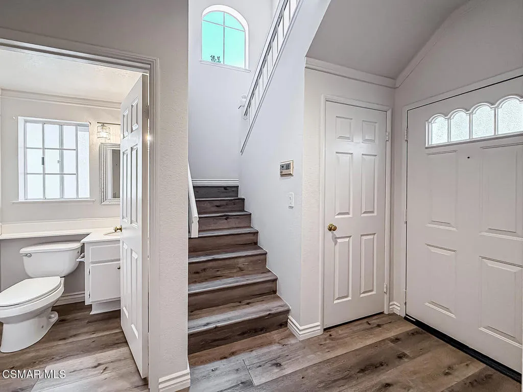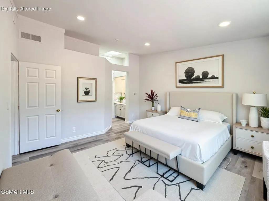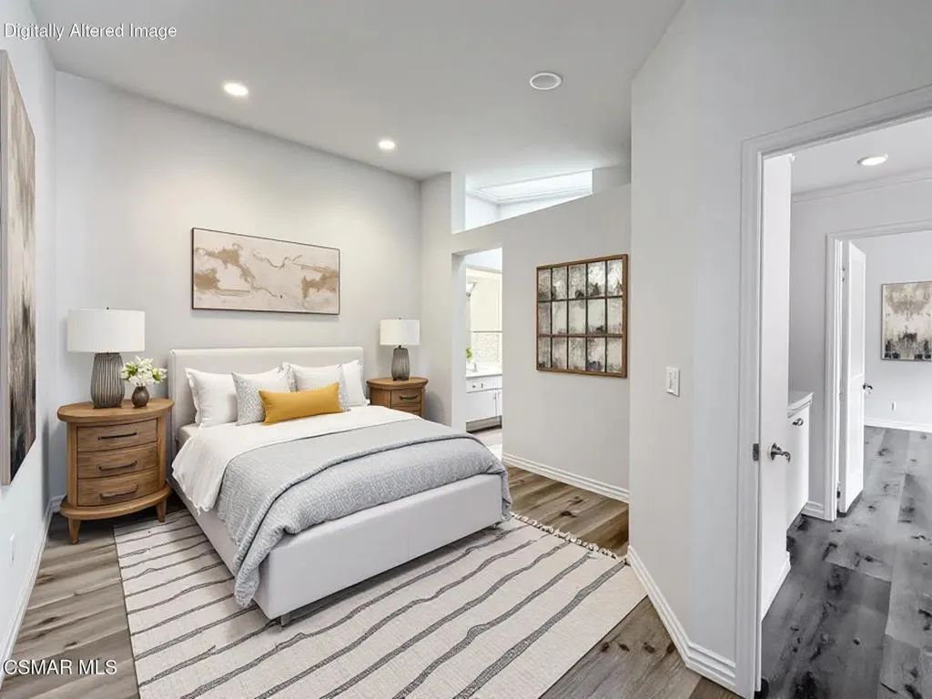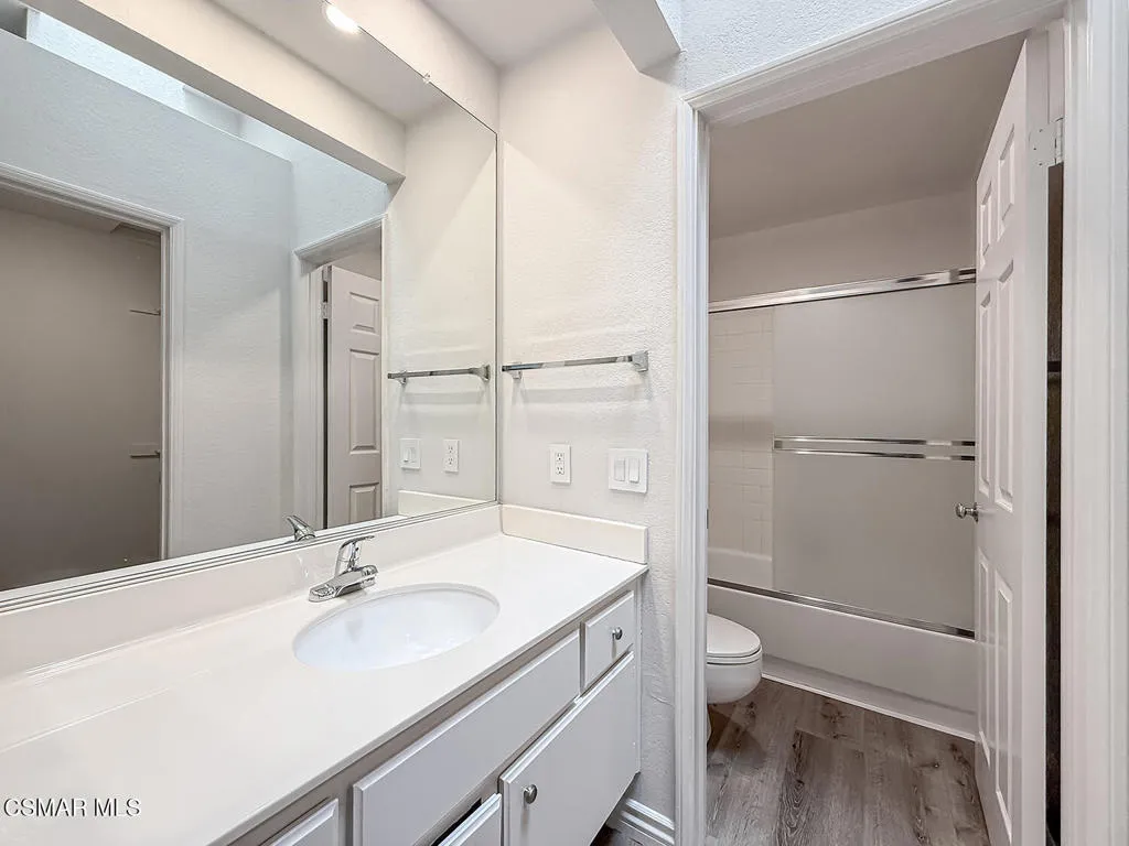 Fantastic Light & Bright Shadow Oaks Townhome with TWO Primary Bedrooms and direct garage access! A charming front patio welcomes you in where you are greeted by HANDSOME upgraded wood-like flooring found THROUGHOUT the home! The spacious Living Room is anchored by a charming gas fireplace and features an abundance of natural light from sliding glass doors which access the front patio. The Dining Room is ready for both formal & informal entertaining alike and flanks the UPGRADED Kitchen which showcases ATTRACTIVE granite countertops, LOTS of upgraded cabinetry, a ROOMY pantry, and DESIGNER appliances. A pair of sliding glass doors opens to the patio to fill the Kitchen with natural light! The staircase + downstairs powder room enjoy a continuation of upgraded wood-like flooring and the upstairs landing provides linen cabinet storage space. Both bedrooms offer TALL VAULTED ceilings, upgraded wood-like flooring, recessed lights, WALK-IN closets, and en-suite bathrooms fitted with built-in vanities and tub-showers. One of the bedrooms highlights sliding glass doors to a private balcony! The garage is accessed via the brick-surfaced outdoor patio and has TONS of built-in storage cabinetry and hosts the unit's Laundry area. At this tranquil community, you have access to a glimmering community POOL & SPA, access to AWARD-winning schools, and FANTASTIC local hiking & biking trails! CONVENTIONAL FINANCING AVAILABLE!