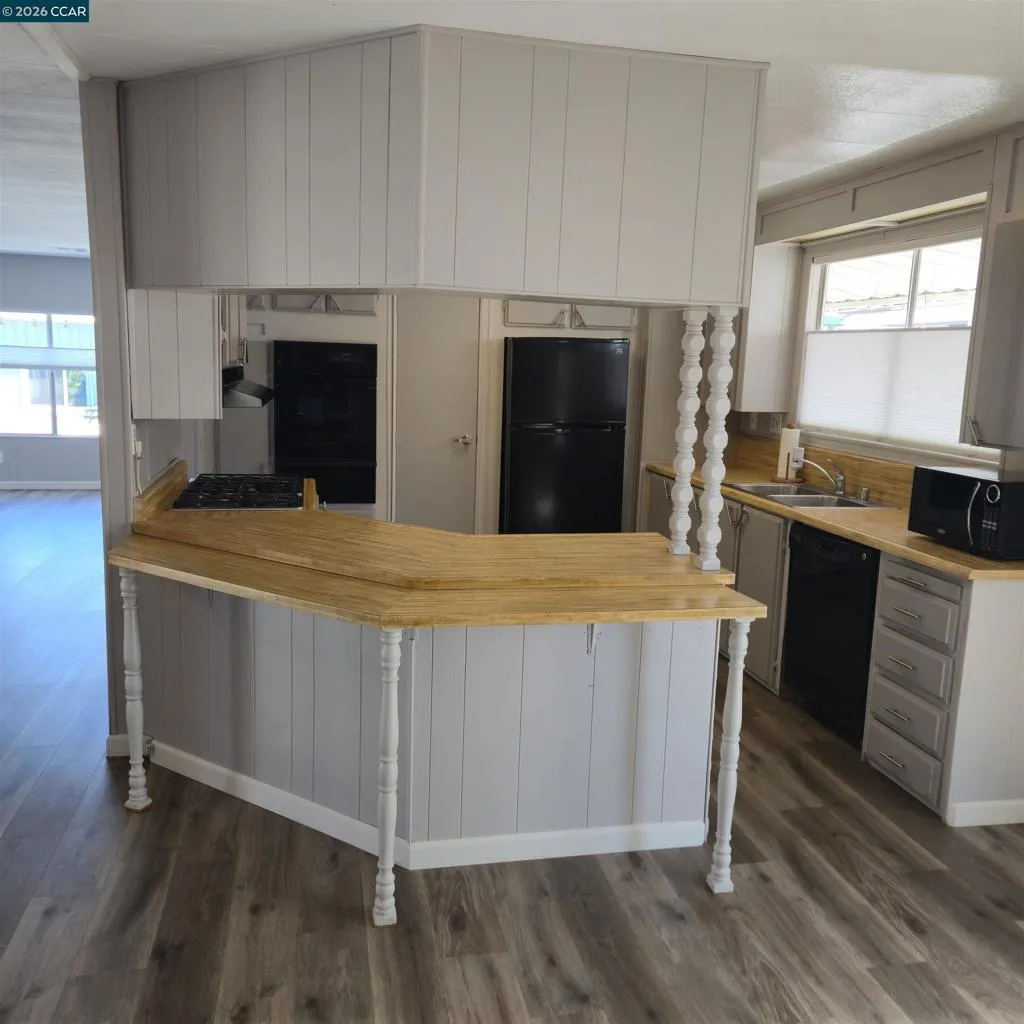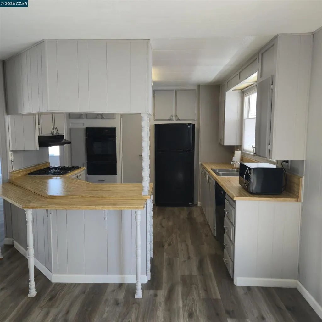 Discover this well-maintained Far West manufactured home nestled in the highly desirable Tara Hills Park, a vibrant senior community offering resort-style amenities including a clubhouse, sparkling swimming pool, and relaxing spa. This spacious double-wide home features a thoughtfully designed layout with a bright family room, a formal dining area complete with a built-in hutch, and a well-equipped kitchen boasting a double oven and stovetop—perfect for everyday living or entertaining. Enjoy additional living space with a separate living room, a comfortable primary bedroom, and a second bedroom ideal for guests or a home office. The bathroom is conveniently located near the laundry area and includes a walk-in tub for added safety and ease. Step outside to a welcoming covered front porch—perfect for morning coffee or evening relaxation. Freshly painted, new flooring, new window coverings and truly move-in ready, this home is located at 16401 San Pablo Avenue and offers the perfect blend of comfort, convenience, and community. Fireplaces: NO