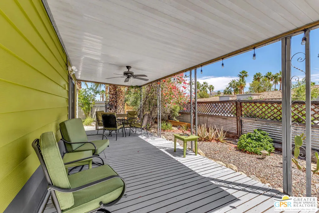 Located in the desirable Parkview Mobile Home Estates, a vibrant 55+ community in South Palm Springs, this well-maintained home offers the perfect blend of comfort and convenience. Ideally situated next to the scenic Lykken Trail and just minutes from downtown Palm Springs, you'll enjoy easy access to renowned restaurants, shops, and museums.This thoughtfully cared-for home features updated electrical and plumbing systems, an open-concept floor plan, and a security camera system with audio for added peace of mind. The spacious layout flows seamlessly to a private back patio where you can relax and take in the magnificent mountain views.Parkview Mobile Home Estates is a welcoming and active community, offering a true sense of connection and lifestyle. Please note: park approval is required for residency, and rentals are not permitted. The current land lease is set to expire in 2027 and will not be renewed. The community will continue to be managed by a professional management company in coordination with ownership and the on-site park manager.