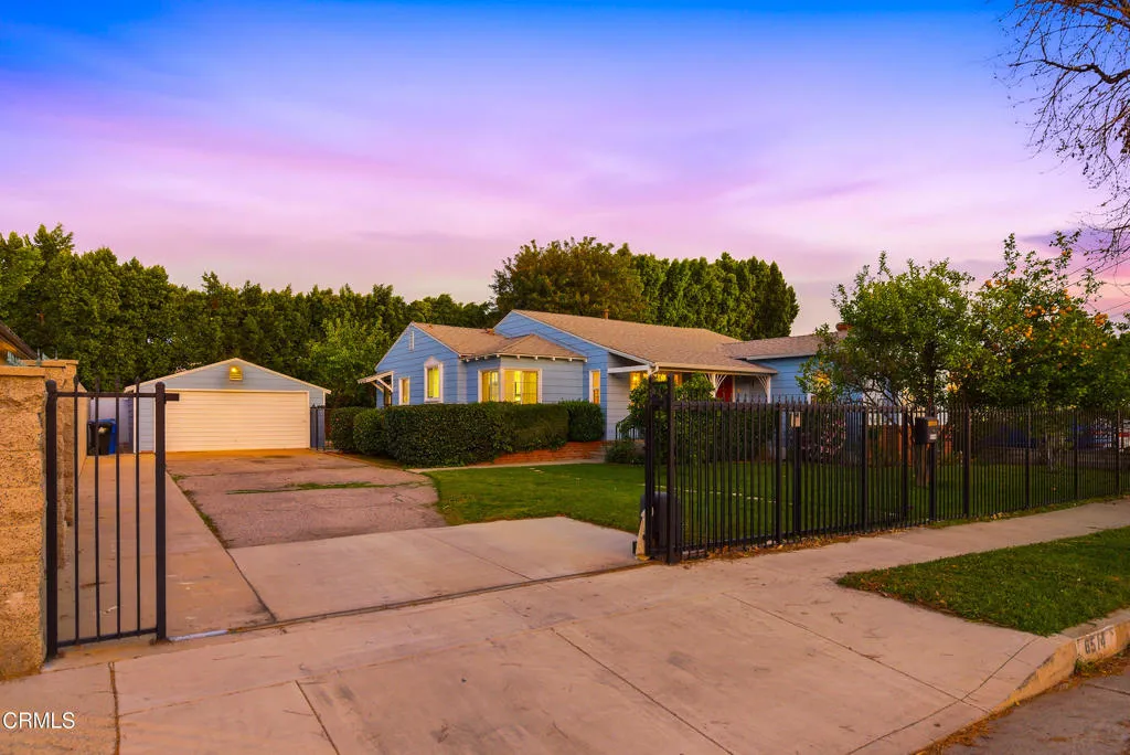 Valley Glen Incredible Private Gated Compound on Huge almost 1/4 Acre Lot with Detached Garage Perfect for an ADU! Once through the private gate, this beautiful property gives you the feeling of entering your own private sanctuary. Beautiful & tranquil landscaping & plants including fruit trees in the front yard welcome you to the cozy & inviting covered front porch. Entering the home, you can feel the welcoming good energy of the home with hardwood flooring throughout & a nicely flowing versatile layout. Interior features include a remodeled kitchen, large living room, formal dining room, 2 large bedrooms with updated closet doors, a large primary bathroom. The 3rd bedroom and second bathroom are in close proximity to the rear door of the home - a potential opportunity to rent that bedroom in the future for additional income while retaining privacy in the rest of the home. The home is one of the original homes in the area & was built exceptionally well with high quality old growth redwood as noted by the long time owners who have lovingly improved the home with well over $100,000 in newer improvements & upgrades. The list of newer improvements includes newer electrical panel, newer copper plumbing, newer HVAC system, newer roof & many more - most of the expensive repairs on this home have been recently completed - not just cosmetic items which is more typical - the sellers truly took a long term approach with their extensive upgrades which will greatly benefit the new lucky owner. The expansive approx 500 sq ft detached garage is fully insulated with drywall & electricity - an absolutely ideal setup for an ADU for rental income or more space for family & guests. The expansive backyard features patio area perfect for alfresco dining & relaxing, mature privacy trees, large shed, raised garden bed & plenty of room for a swimming pool, etc. Incredibly cared for & upgraded in almost every way - this home has all of the right ingredients & the wonderful loving energy can be felt the minute you enter the almost 10,000 sq. ft grounds. This beautiful & unique estate is a true legacy compound where you can truly enjoy all the best California living has to offer!