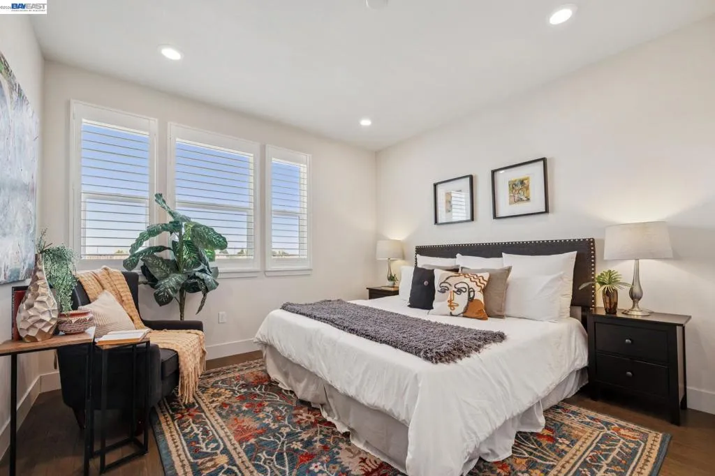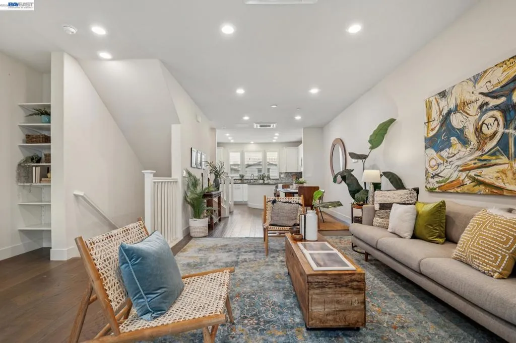 Built in 2016, this 3 bed, 3.5 bath tri-level home offers 1,727 sq ft of thoughtfully designed living space in a prime central location. Each bedroom features its own en suite bathroom, offering ideal privacy and comfort. The first floor features a private bedroom with a full bath, including a stall shower. On the second floor, enjoy an open-concept layout that seamlessly combines the kitchen, dining and living room, along with a convenient half bath. Highlights include recessed lighting, LVP flooring, a built-in bookshelf, and a patio slider to a covered outdoor lounge area. The kitchen is equipped with stainless steel appliances, glass tile backsplash, dark gray quartz countertops and plantation shutters. Upstairs, the primary suite boasts a double vanity and tiled stall shower with a built-in bench. The third bedroom features its own bathroom, complete with a shower over the tub, and the laundry room is conveniently located on this level. The attached two-car garage features epoxy flooring, overhead storage and an EV charger. Enjoy easy access on and off the island via Park St Bridge or Webster/Posey Tube. Close to Marina Cove Park, shops, restaurants and local markets.
