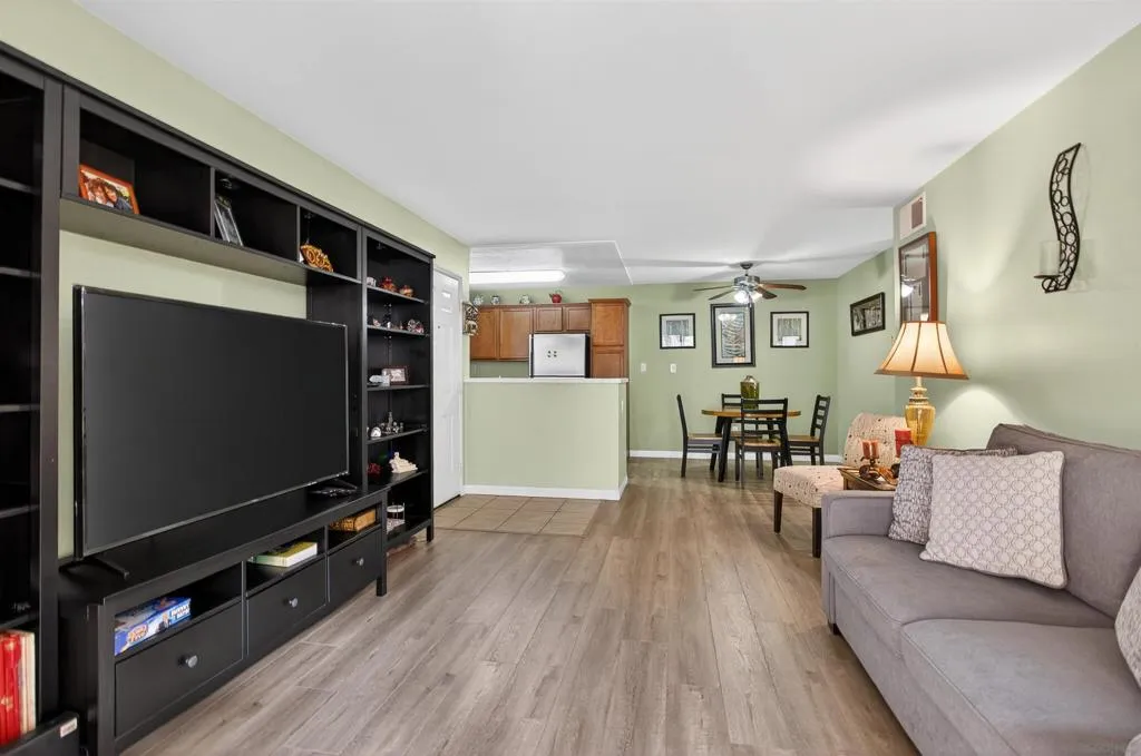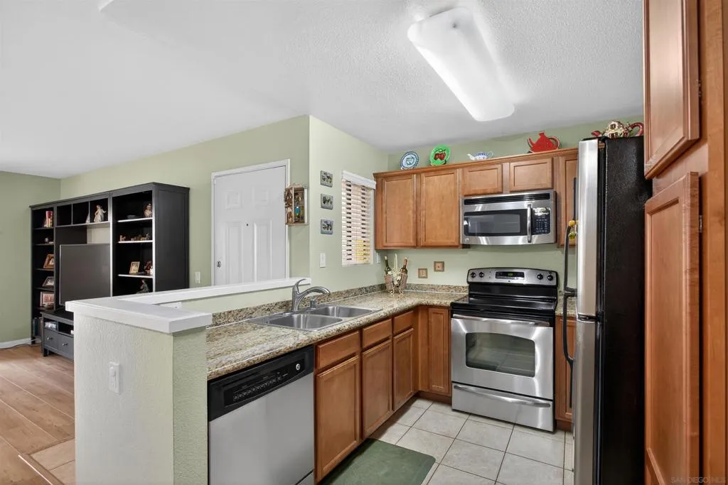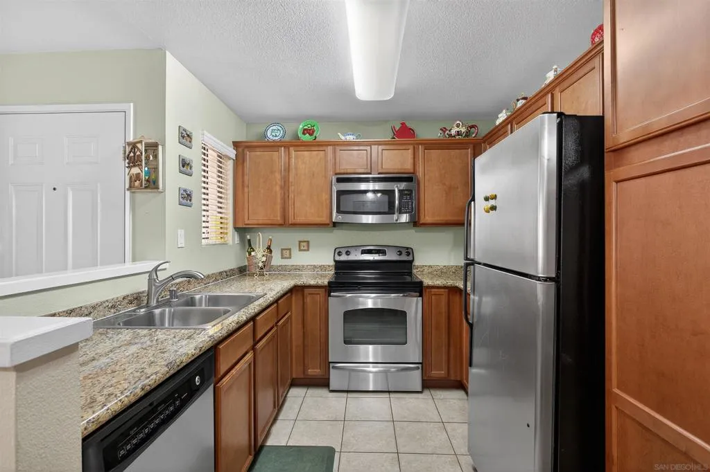 Quaint jewel of a one bedroom condo on the first floor featuring an exceptionally efficient floor plan layout for comfortable living. This home features all stainless steel appliances, granite countertops, luxury vinyl plank hard surfaced flooring in living room, dining room, and hallway, with tile in the bathrooms and carpeting in the bedroom, along with full sized washer & dryer, central AC & Heat. Located in the heart of Rancho San Diego in the highly desired Villa Monte Vina complex, this place offers Shopping, top tier schools, and restaurants all within a Hop, skip, and jump away from your doorstep. In addition, the complex features a wide array of amenities for you to enjoy including BBQ grill, tennis courts, pool, spa, guest parking, and a clubhouse.