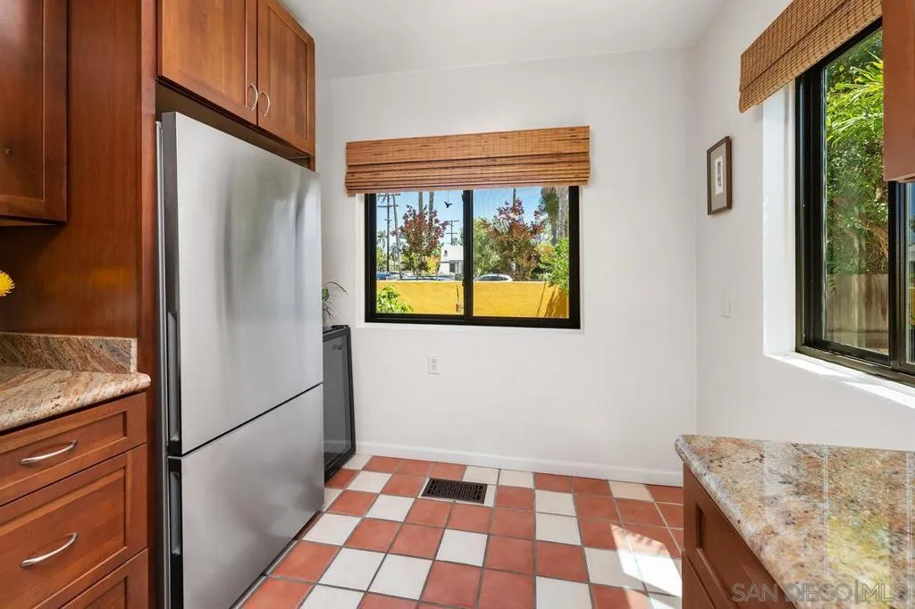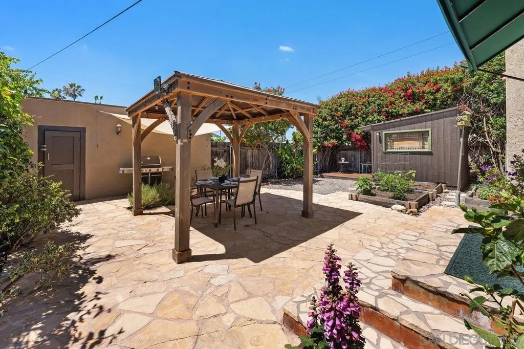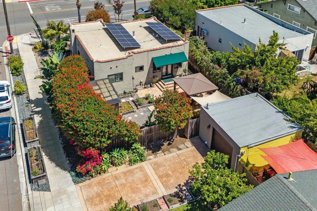 Welcome to this beautifully updated Spanish Bungalow in the heart of vibrant University Heights. Privately set yet incredibly walkable, this turnkey residence welcomes you with a lush courtyard entry and tranquil fountain—creating an immediate sense of charm and serenity. Rich in original character and thoughtfully updated for today’s lifestyle, the home showcases graceful archways, coved ceilings, and warm wood flooring. Sun-drenched living spaces are framed by new Pella dual-pane windows, enhancing energy efficiency. Thoughtfully upgraded throughout, the home features a resealed roof, newer HVAC system with new ductwork (2022), and owned solar—delivering year-round comfort and long-term savings. Additional improvements include foundation upgrades, a new gas line, insulated flooring, new floor registers, and a newer water heater. The light-filled kitchen offers abundant wood cabinetry, stainless steel appliances, a wine refrigerator, and a charming breakfast nook. Embrace a farm-to-table lifestyle with multiple garden beds, perfect for growing fresh herbs and vegetables. The exterior showcases drought-tolerant landscaping, fruit trees, and inviting garden spaces designed for effortless California living. A spacious detached one-car garage and private driveway provide valuable off-street parking. A standout feature is the detached workspace with electrical—ideal for a private office, yoga studio, or creative retreat. All appliances convey, including a Weber BBQ with a dedicated gas line, completing this exceptional offering.