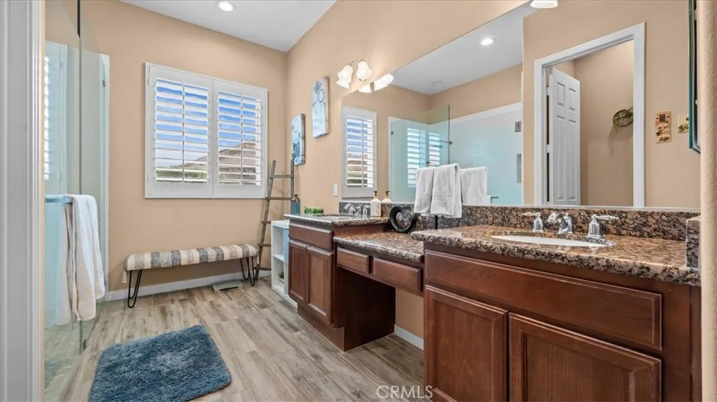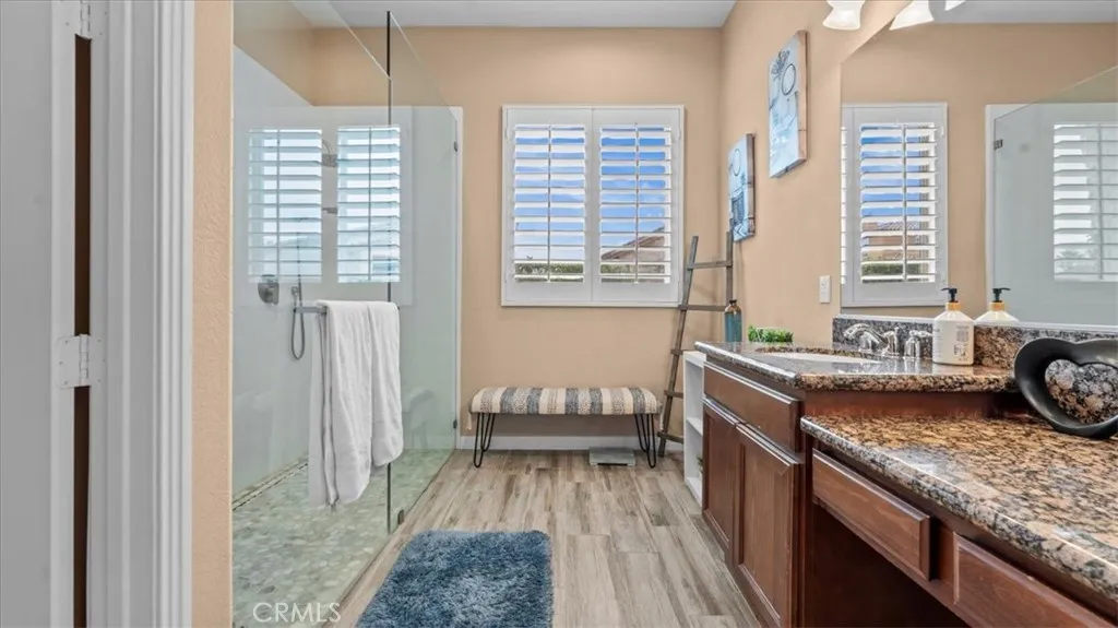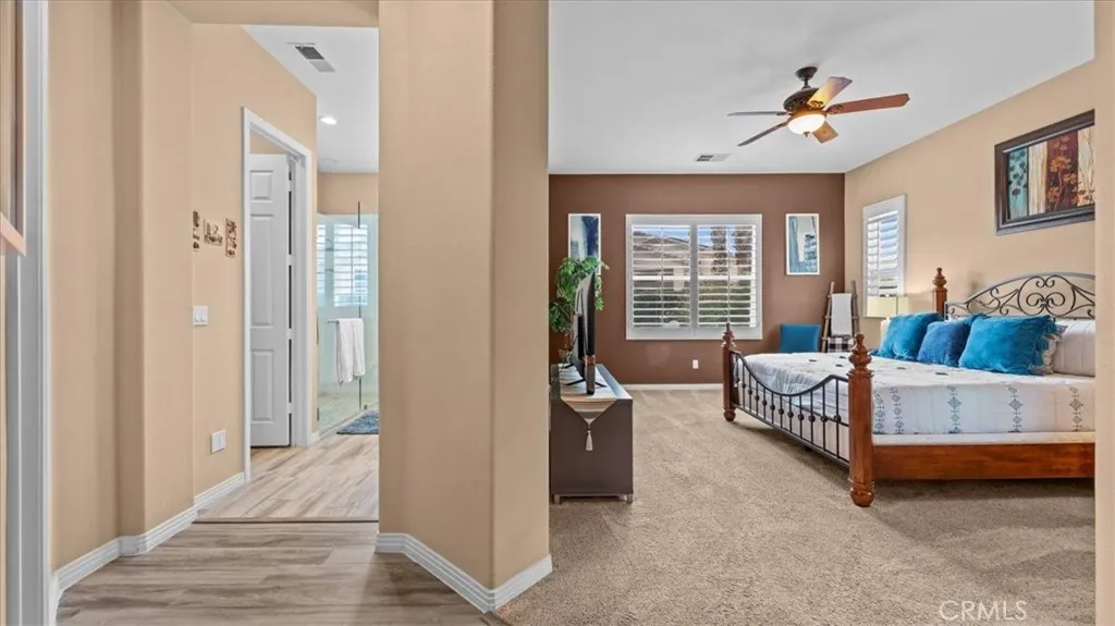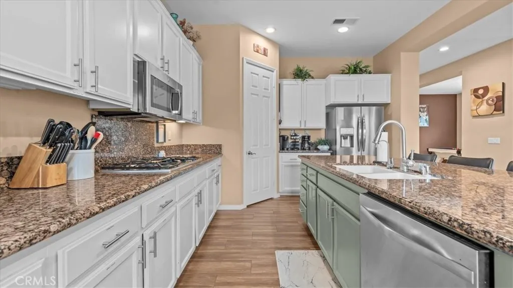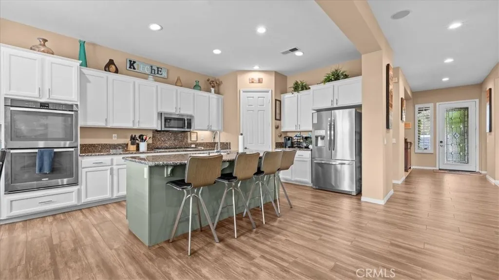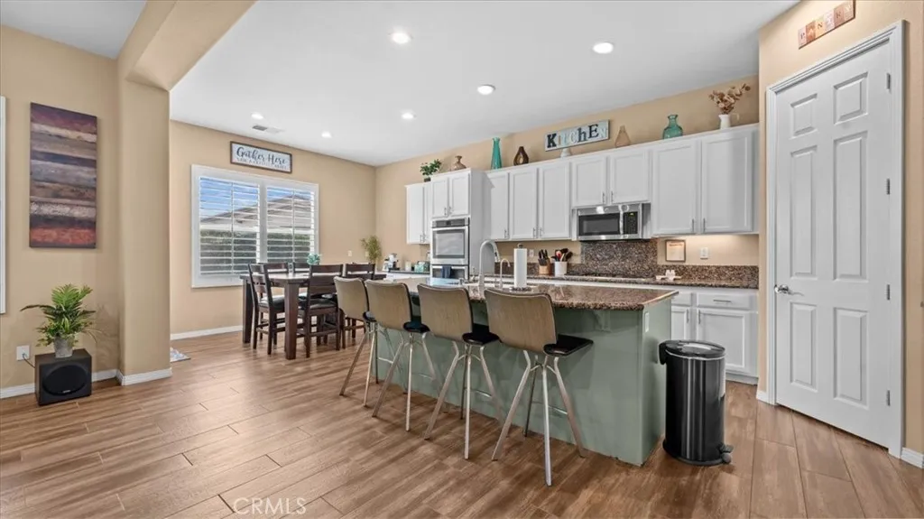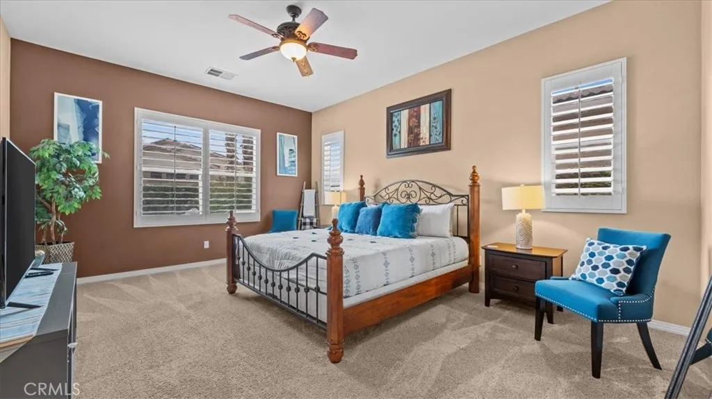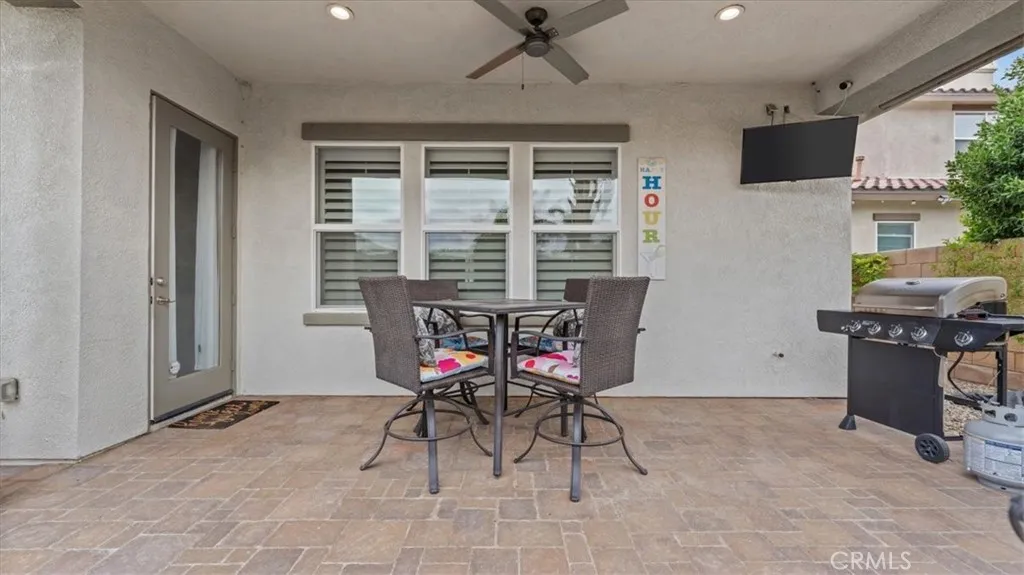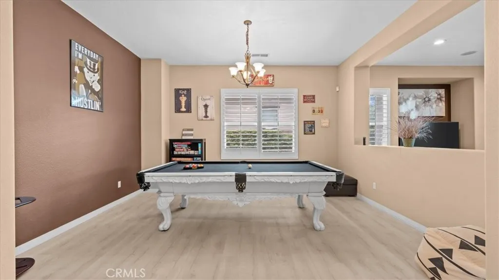 Welcome to this beautiful, turnkey, fully furnished single-story home located in the prestigious Palazzo community. This residence features a spacious open floor plan with three large bedrooms and three full bathrooms, complemented by a formal dining room and a versatile den—ideal for entertaining family and friends. At the heart of the home is a warm, cozy fireplace and a wide-open, fully upgraded kitchen. The chef’s space boasts a pantry, ample cabinet storage, and a large island with plenty of seating. Modern conveniences abound, including a whole-house water softener, a dedicated kitchen water purifier, a tankless water heater for instant hot water, and two HVAC units (one of which is brand new, serving all bedrooms). The interior is finished with stylish tile-like flooring throughout the main living areas and plush carpeting in the bedrooms for added comfort. Step outside to a backyard oasis featuring a saltwater pool and jacuzzi situated just off the patio. Surrounded by elegant pavers and featuring a gas firepit, this outdoor space is perfect for relaxing or hosting gatherings.