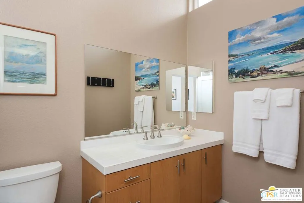 Experience Elevated Desert Living with Unmatched Views. Built in 2006 by nationally recognized builder Lennar, this exceptional home offers breathtaking, million-dollar views in the highly desirable Escena Golf Club community. Wake up and unwind to stunning western mountain vistas, including the iconic Mount San Jacinto, with sunsets that transform your backyard into a daily masterpiece. This thoughtfully designed residence features two spacious en-suite bedrooms. The primary suite is a private retreat, complete with dual closets including a large walk-in double vanities, an oversized walk-in shower, and direct access to the patio and pool. The secondary en-suite offers comfort and flexibility, featuring a generous closet, dual vanities, and a shower-over-tub combination. The open-concept floor plan is ideal for both everyday living and entertaining, highlighted by an expansive kitchen island with ample seating, seamlessly flowing into the dining and living areas. A charming entry courtyard creates a peaceful, welcoming space perfect for relaxing or hosting guests. Step outside to your private backyard oasis, featuring a large pool and spa, abundant lounging space, and uninterrupted golf course and mountain views. Whether you're soaking up the sun or enjoying an evening under the stars, this home delivers the ultimate desert lifestyle. Currently operating as a successful vacation rental during primary months and enjoyed part-time by current owners, the property allows for 30+ night stays with no license required offering both lifestyle and income potential. Home is being offered Turnkey furnished. Schedule your private showing today and experience the view for yourself.