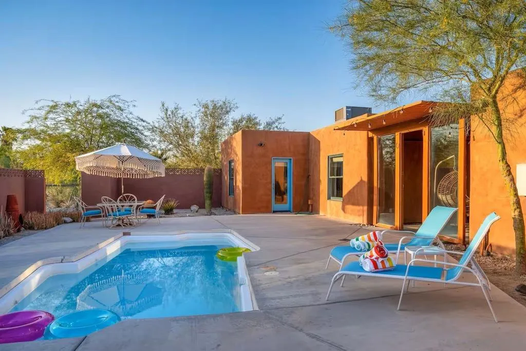Cute Southwestern home with strong rental history! Here is your chance to own a home with a pool at an affordable price. This open floor plan features tile throughout with a beautiful kitchen and stainless steel appliances. Outside there is a covered breezeway leading out to the private pool area with a hot tub and great views of the mountains. If you are looking for a small home with lots of character and all the amenities, this is it! Offered furnished.
