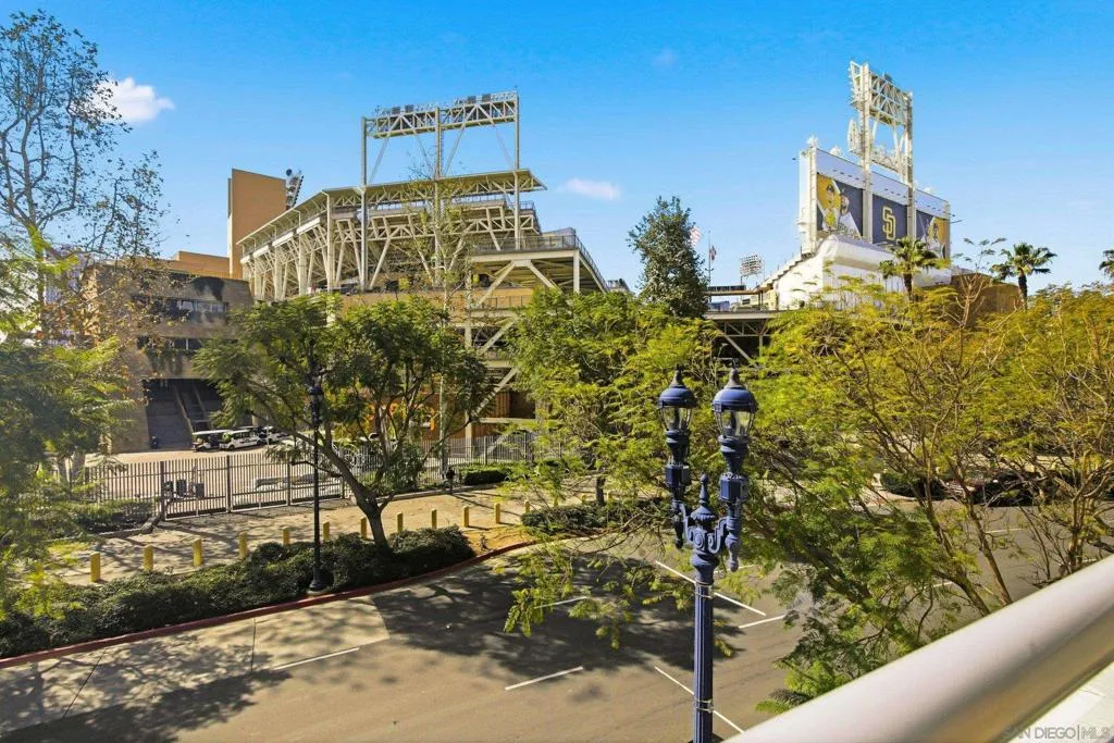 Experience vibrant downtown living in this spacious 1-bedroom, 1-bath condo at Park Terrace, located directly across the street from Petco Park. Offering 808 sq ft, the open layout is designed for comfort and entertaining, featuring a roomy kitchen with stainless steel appliances, an in-unit washer and dryer, and a large balcony to soak in the city energy. The well-sized bedroom features a walk-in closet and plenty of space to unwind. Enjoy the convenience of one assigned parking space, plus controlled access and 24-hour security for added peace of mind. Park Terrace residents enjoy a well-equipped fitness center and a rooftop BBQ terrace, ideal for hosting friends or relaxing above the buzz of downtown. Step outside and you’re just moments from the Gaslamp Quarter, top restaurants, shops, and nightlife—bringing the best of San Diego right to your doorstep. VA approved and move-in ready—schedule your private tour today.