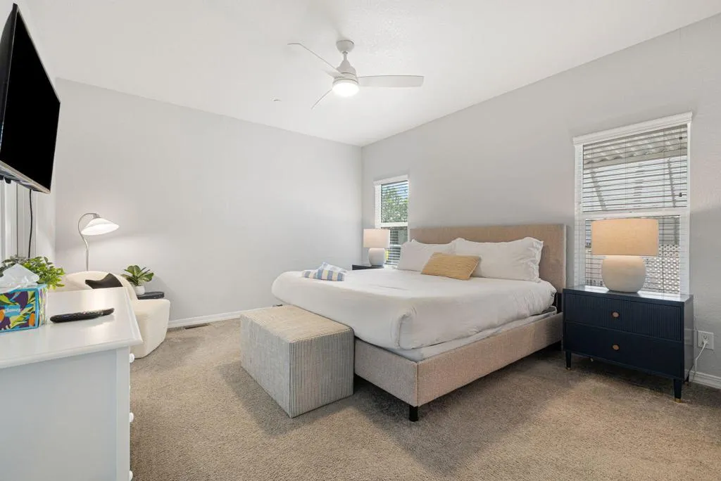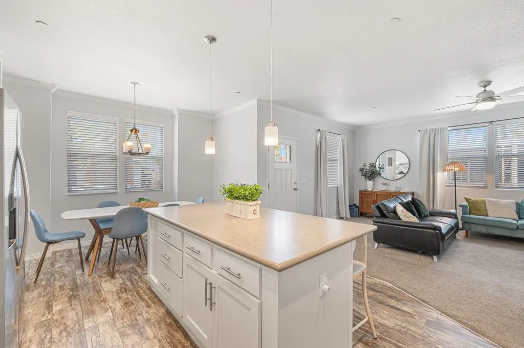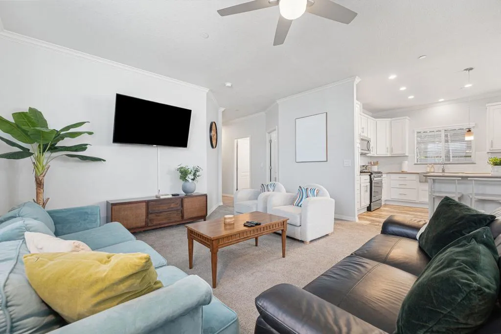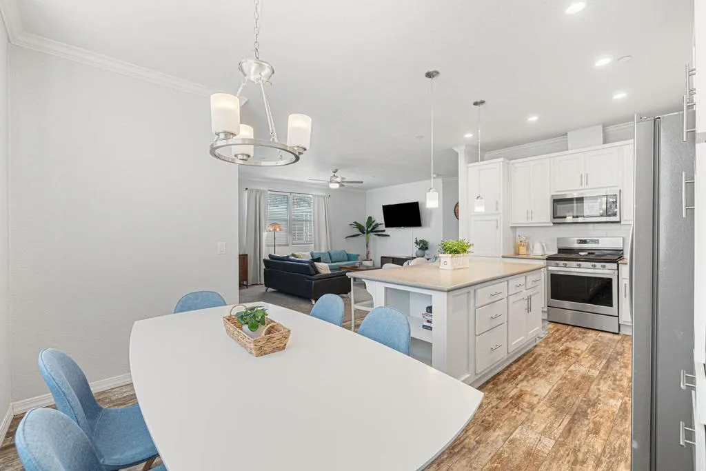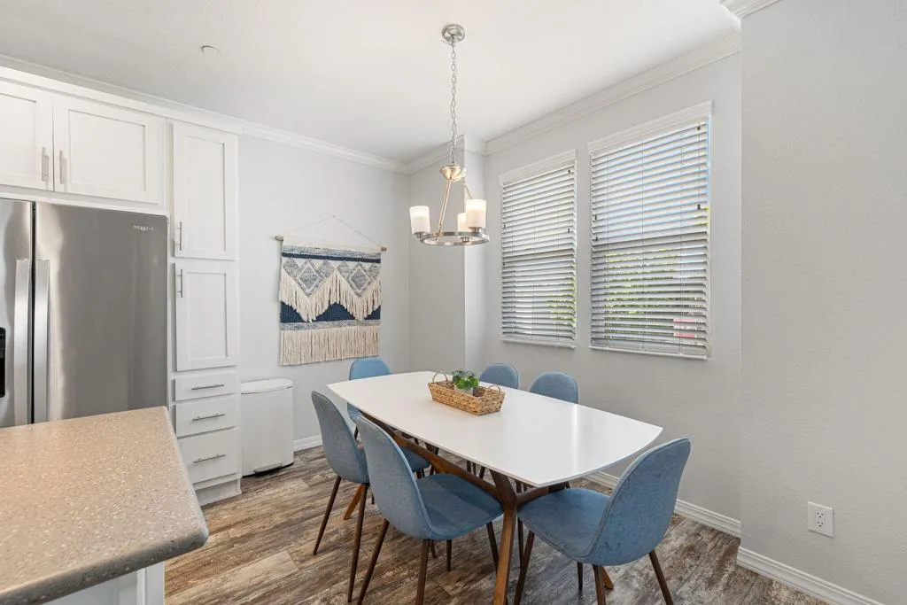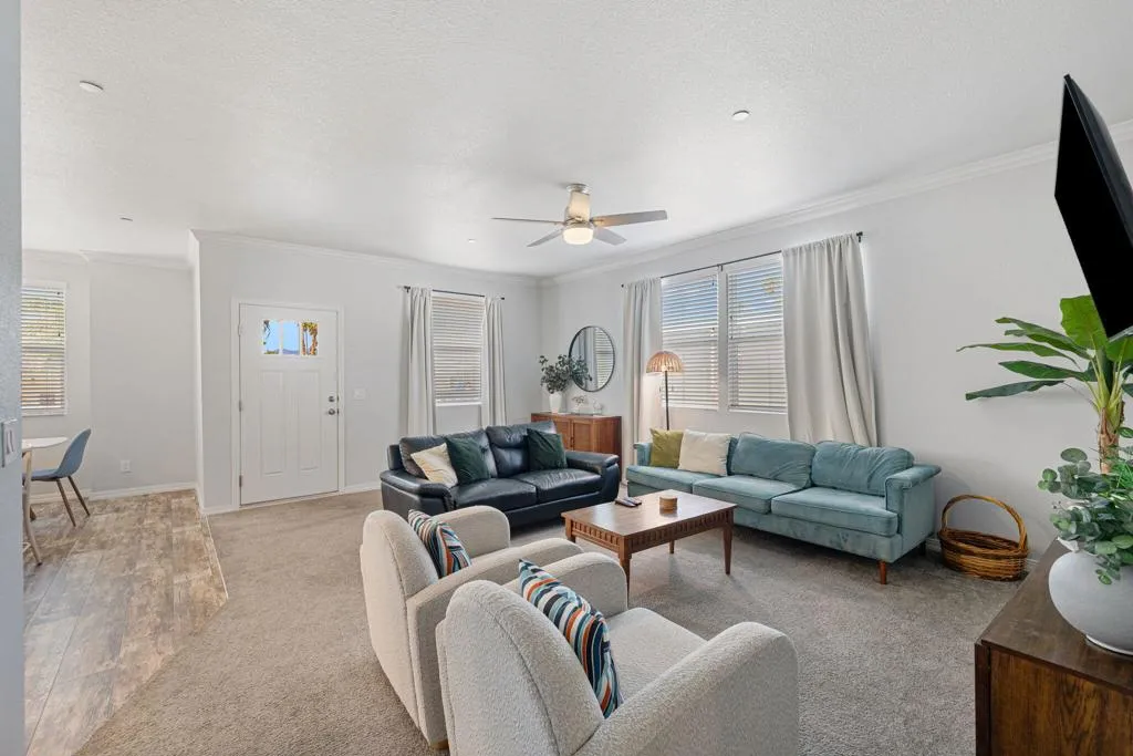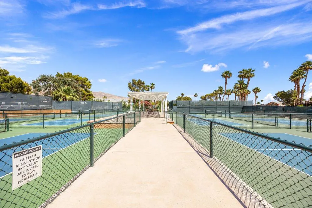 : Welcome to Family Friendly Sky Valley Resort! This 2021 double-wide 2-bedroom manufactured home shows like a brand-new model home and is located steps from the west side pool This home is currently in the Sky Valley Resort rental program and can remain a short term rental for the new buyer. This property is tastefully decorated and is offered turnkey furnished! The floorplan is open and inviting, energy efficient dual pane windows, high ceilings, can lights, kitchen island, individual laundry room, and is light and bright. This home is a rare find with a low monthly space rent of 1,068.00 per month. Located in Family Friendly Sky Valley Resort with the geothermal healing mineral water in its many pools and spas, state of the art pickleball courts, Cafe, horseshoes, dog park, ponds, hiking trails and so much more! Located in the Coachella Valley a short drive from quaint downtown Palm Springs, fine shopping and dining on El Paseo Drive in Palm Desert, the new Acrisure arena, art festivals, PGA golf tournaments, PNB Paribas open tennis tournaments in Indian Wells, and Coachella and Stagecoach music festivals at the Empire Polo grounds. Enjoy the friendly and beautiful people of Sky Valley Resort with so much to offer. This is a perfect permanent home, weekend or warm Winter getaway!