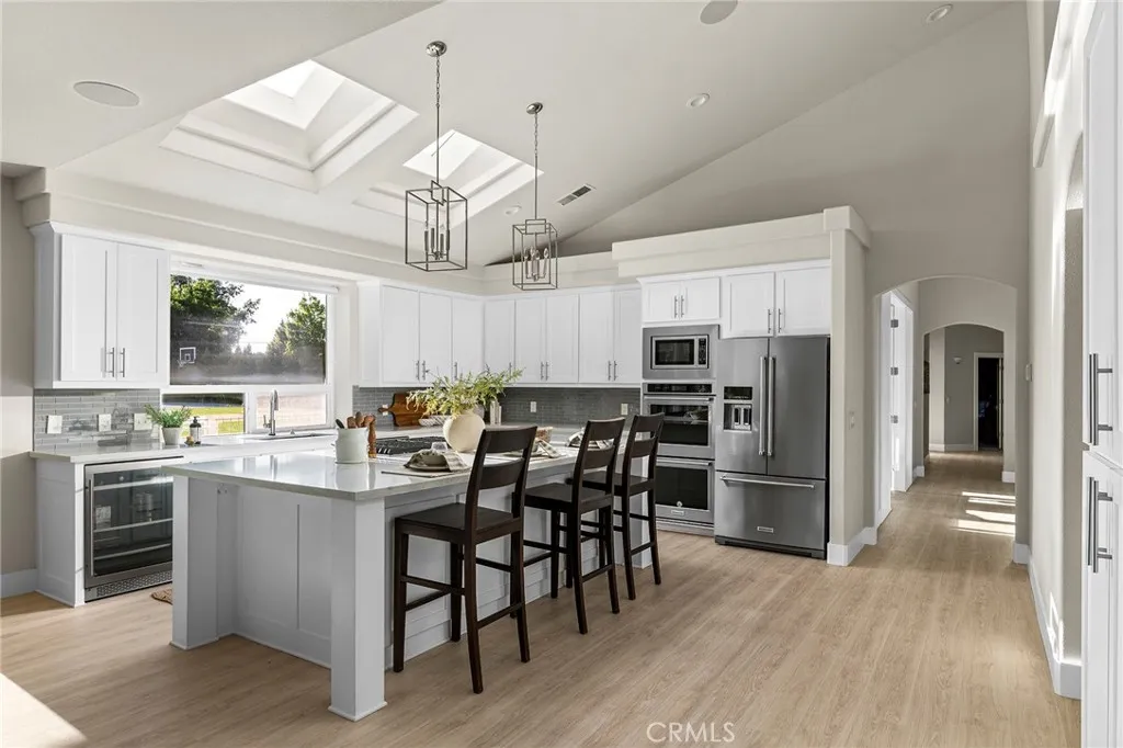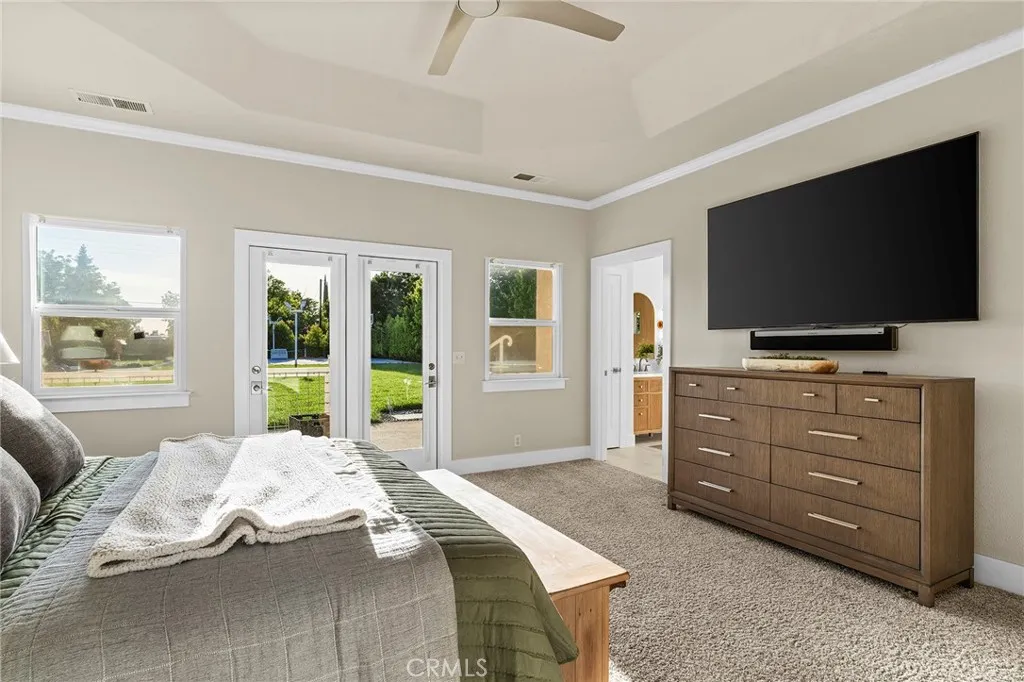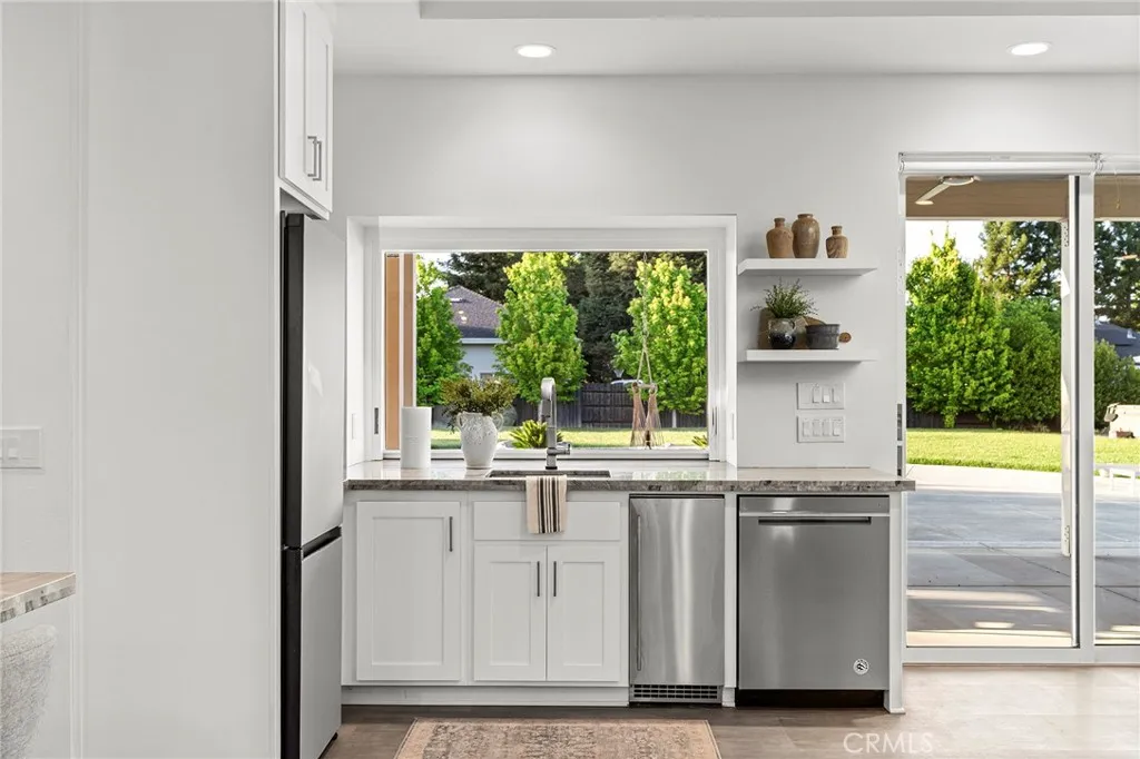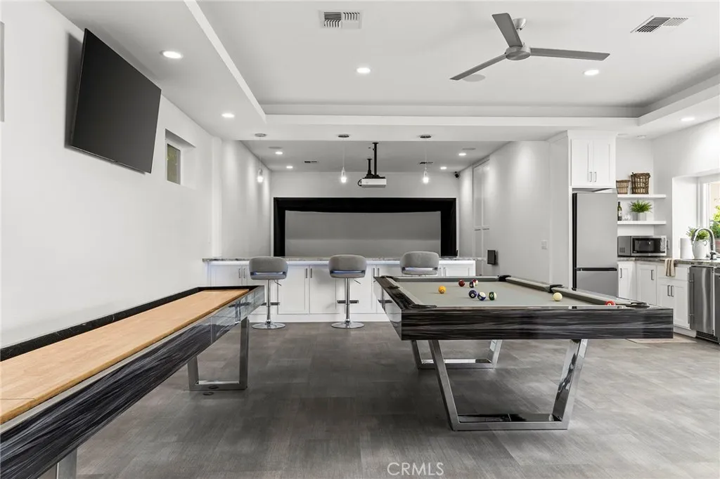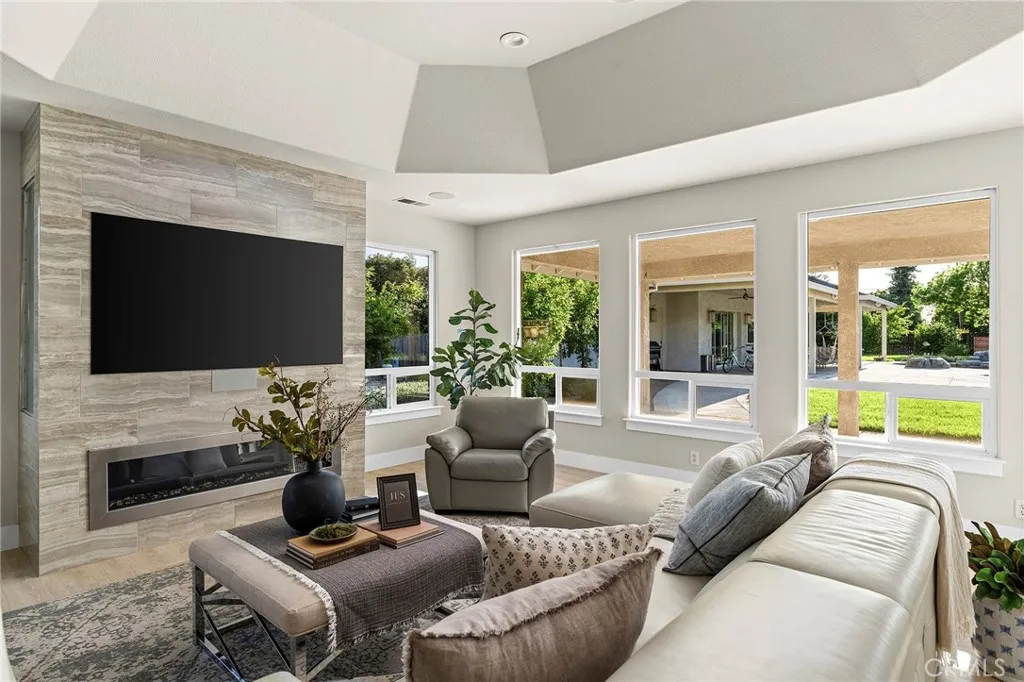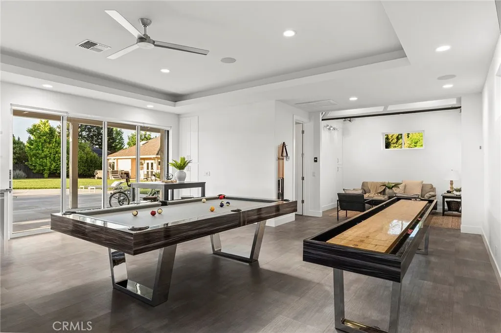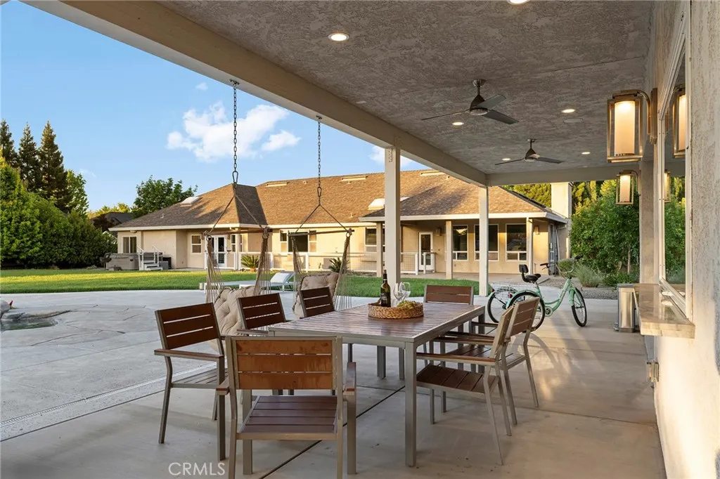 Welcome to a truly one-of-a-kind resort compound in one of Chico's most sought-after neighborhoods — nearly a full acre of turnkey luxury where every detail has been thoughtfully curated with over $1M+ in interior and exterior upgrades. The showstopper is a $600K+ custom pool house — a true second dwelling right in your backyard, with professional Full Swing golf simulator (100+ world courses), designer pool and shuffleboard tables, full kitchenette with commercial ice maker, pass-through bar to the pool deck, and separate bedroom area with a full bath. Ideal for guests, au pair, multi-generational living, a teen hangout, home gym, or the ultimate entertainment retreat. Sleeps four. The backyard is its own destination: a completely renovated salt-water pool with beach entry, rock waterfall, and slide; regulation sport court with pro LED lighting (NBA 3-point line + pickleball), putting green, horseshoe pit, and a generous covered patio with commercial-grade ceiling heaters, outdoor TV, ceiling fan, and dining area. Outdoor Sonos runs throughout with underground wiring. A fenced turf area off the kitchen is perfect for pets or toddlers. The lot has been professionally leveled for a premium flat yard. A dedicated flex zone awaits your vision — garden, greenhouse, outdoor kitchen, or firepit. Inside, both full bathrooms were gut-renovated in 2026 with designer-level finishes and gold fixtures throughout. The fully remodeled chef's kitchen features quartz counters, 6-burner gas cooktop, double wall ovens, oversized island with ample storage, skylights, and built-in wine fridge. Open-concept living is anchored by a marble fireplace, soaring tray ceilings, 77" LG OLED, and in-ceiling Dolby Atmos. A formal dining space sits just off the entry, alongside a light-filled bonus room with French doors — ideal as a home office, playroom, or flex space. Four bedrooms share a private hallway. The master opens directly to the yard This is a professionally integrated smart home: 11-zone Sonos audio (8 indoor, 3 outdoor), enterprise-grade Ubiquiti WiFi covering the entire acre, $50K+ owned solar (near-zero electric bills), whole-home water filtration, infrared sauna, and home gym — all included. 3-car garage. Mature tree-lined privacy. This isn't just a home — it's a lifestyle.