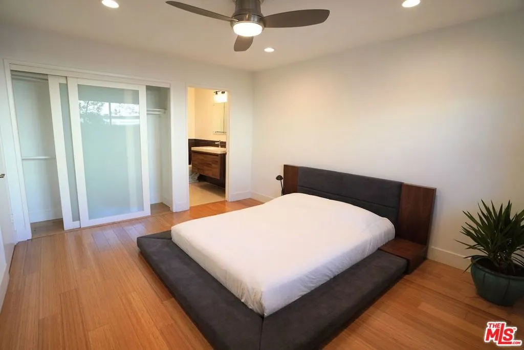 Upgraded 2 bedroom/2 bath contemporary condo on a quiet tree lined street in Santa Monica. Peaceful & private unit, located in thedesirable Sunset Park neighborhood. This spacious condo features an open floor plan with recessed lighting throughout, fireplace and private patio. Upgraded Kitchen with gray cabinets, granite countertops, stainless appliances and new cabinet hardware. Bamboo floors throughout, double pane windows, Central Heating and In-Unit Laundry. Laundry with newer LG washer/dryer and additional storage. Spacious primary bedroom with recessed lighting, Minka Aire fan and gorgeous master bathroom . Recently remodeled Primary Bathroom with vanity, lighting, custom shower with Grohe fixtures including body sprayers. Spacious guest bedroom with huge walk-incloset, recessed lighting and fan. Remodeled Guest Bathroom with custom tile, modern vanity and high-end fixtures. Located in a secure, well maintained small complex that includes 2 side x side parking spaces. Prime location, minutes to the Beach, Ocean Park, Main Street, Restaurants, Night Life and Retail.