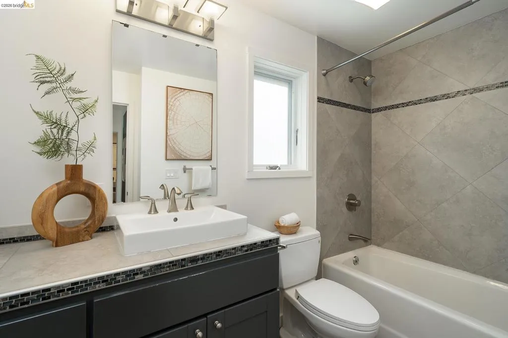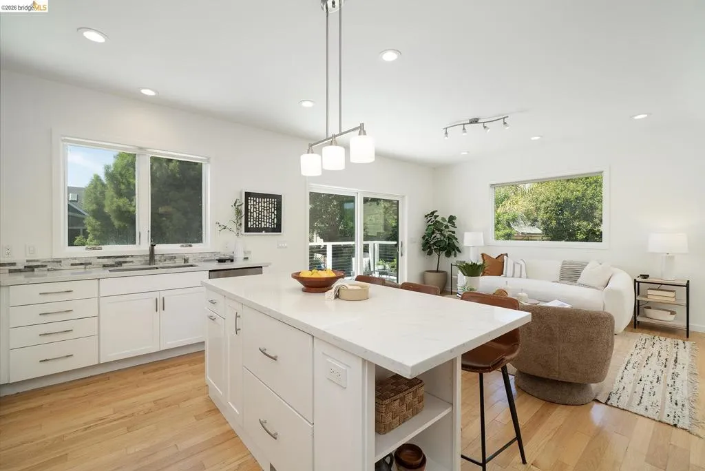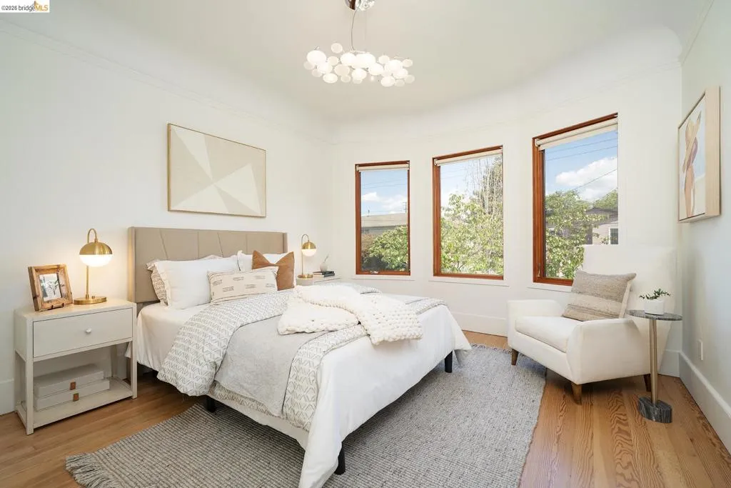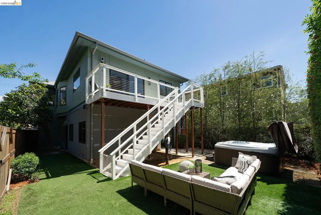 A 1910 Craftsman Reimagined for Modern Living Step into a beautifully reimagined 1910 Craftsman where timeless Berkeley charm meets cutting-edge convenience. This masterfully remodeled, tech-forward 5-bedroom, 3.5-bath home (one bedroom converted into a luxury walk-in closet) offers approx. 2,382 sq ft of bright, open living space on a 3,600 sq ft lot. Every detail is curated for comfort, sustainability, and ease. Premium smart-home features include Owned Solar, Nest thermostat, Ring cameras, Schlage smart locks, and electronic window shades. Energy Star appliances and lighting, low-flow fixtures, enhanced insulation, and high-performance windows support efficiency and lower utility costs. The contemporary kitchen with solid-surface counters, gas range, and breakfast bar flows into flexible living, family, dining, and bonus spaces ideal for work, play, or multi-generational living. Radiant heat, hardwood and tile floors, a second side entrance, and no-step entry to the main level add everyday comfort and versatility. Outdoors, relax in the large hot tub, entertain on the patio, and enjoy low-maintenance front and back yards plus off-street parking. In Berkeley’s desirable Ocean View neighborhood, you’re moments from Fourth Street shops and dining with easy freeway access—historic character, fully updated for modern life. Energy score of 7.