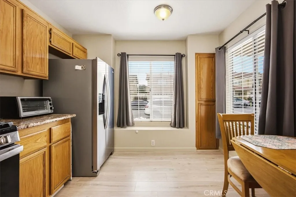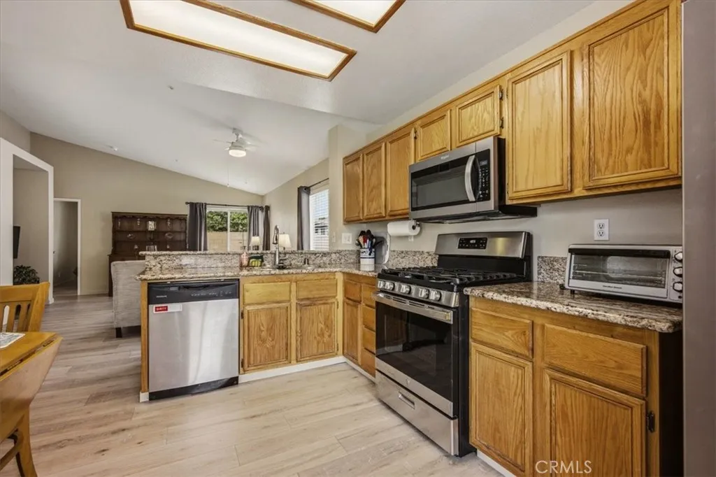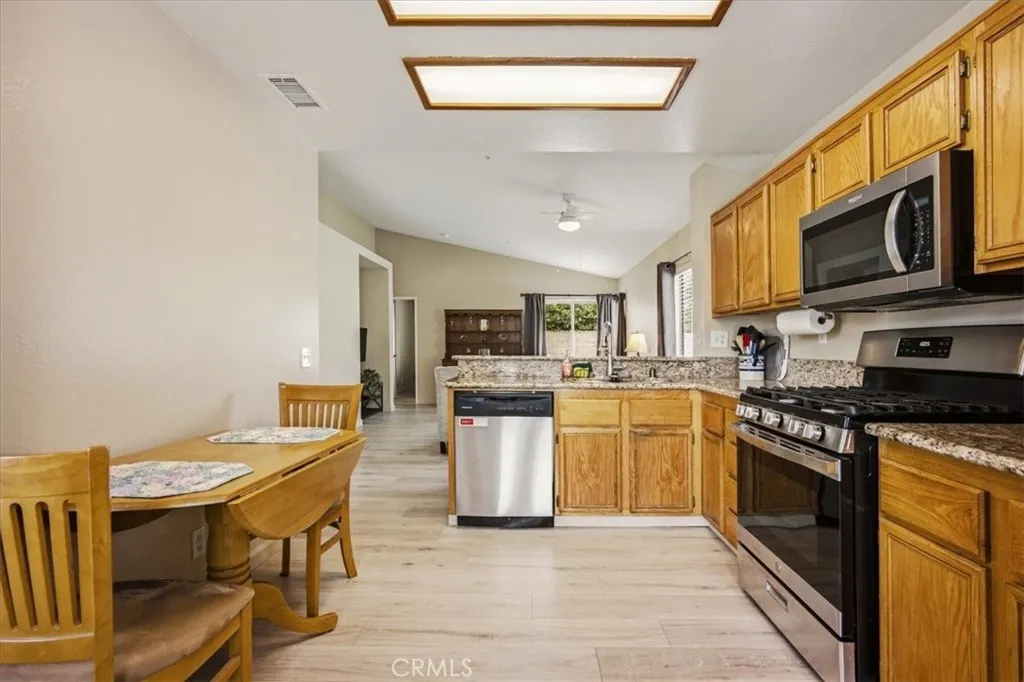 Stonegate - Mission Grove Great opportunity awaits the buyer seeking a single level residence in the gated community of Stonegate! Sitting in a cul-de-sac just inside the main gate, this 3 bedroom & 2 bath residence features an open floor offering comfort and style. Overlooking the main living area, your spacious and functional kitchen offers granite countertops and plenty of cabinet space. The main living area offers an inviting area to sit back, relax, and unwind. In addition, you'll find a nice sized master suite complete with attached bath and dual sinks in the vanity. Two additional bedrooms and a full bath round out this cozy residence. The interior has been completely re-painted and the newer laminate flooring throughout provides a seamless flow. The rear yard offers plenty of space for the kids and pets. Close to award winning schools, shopping, and freeways make this a great opportunity.