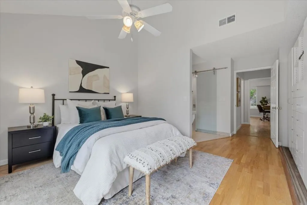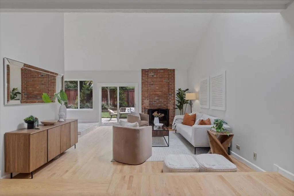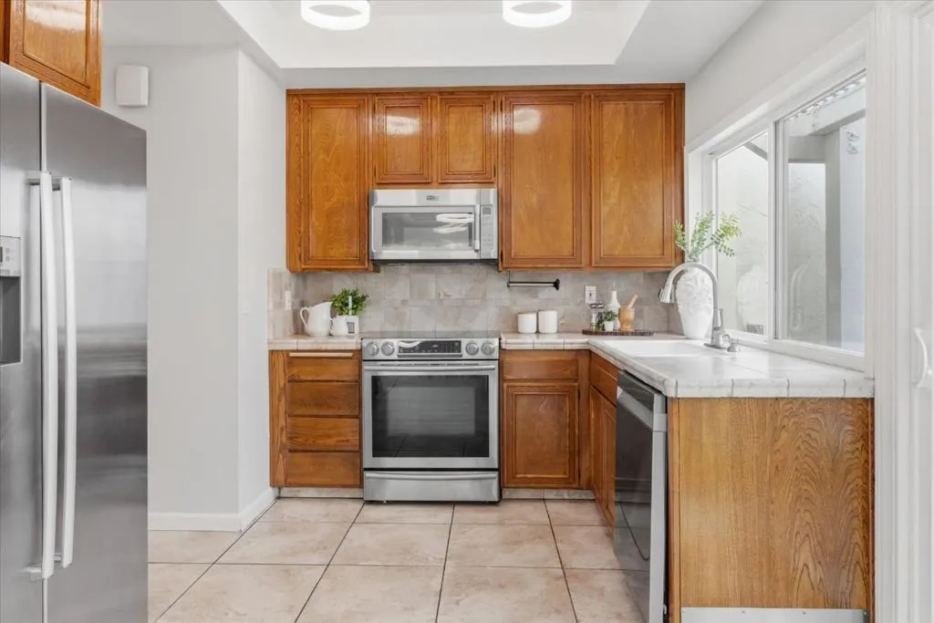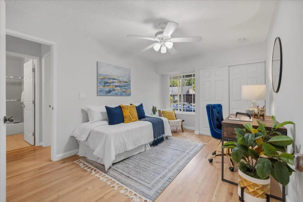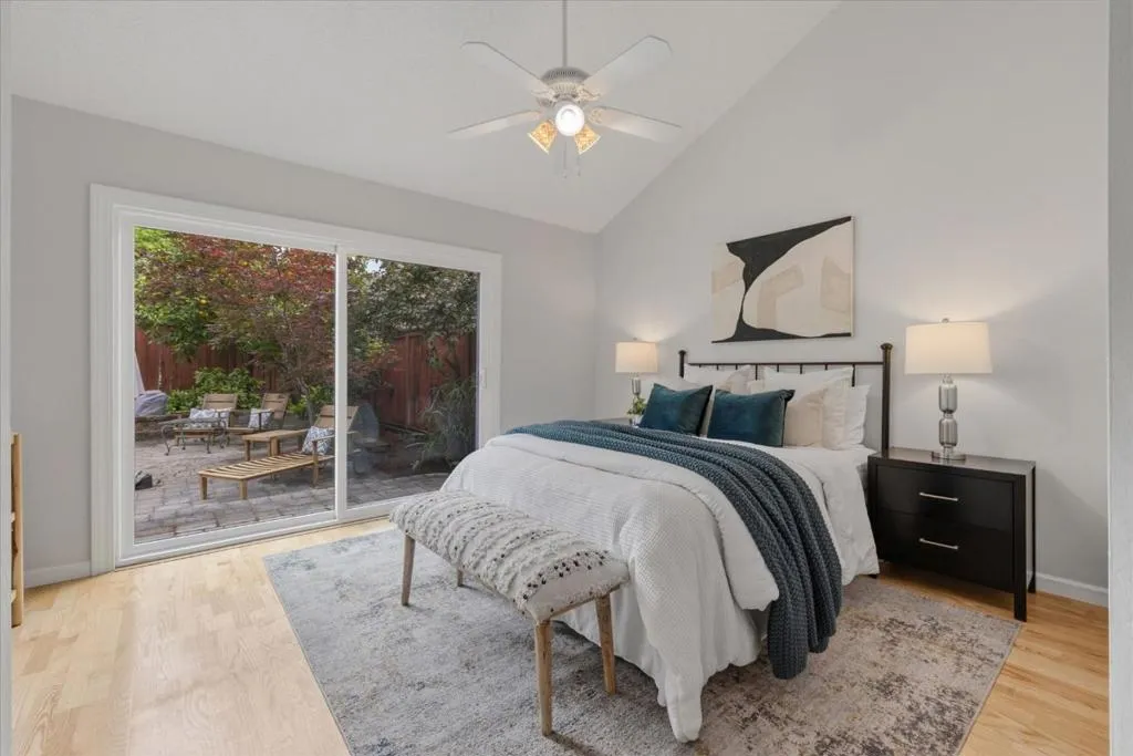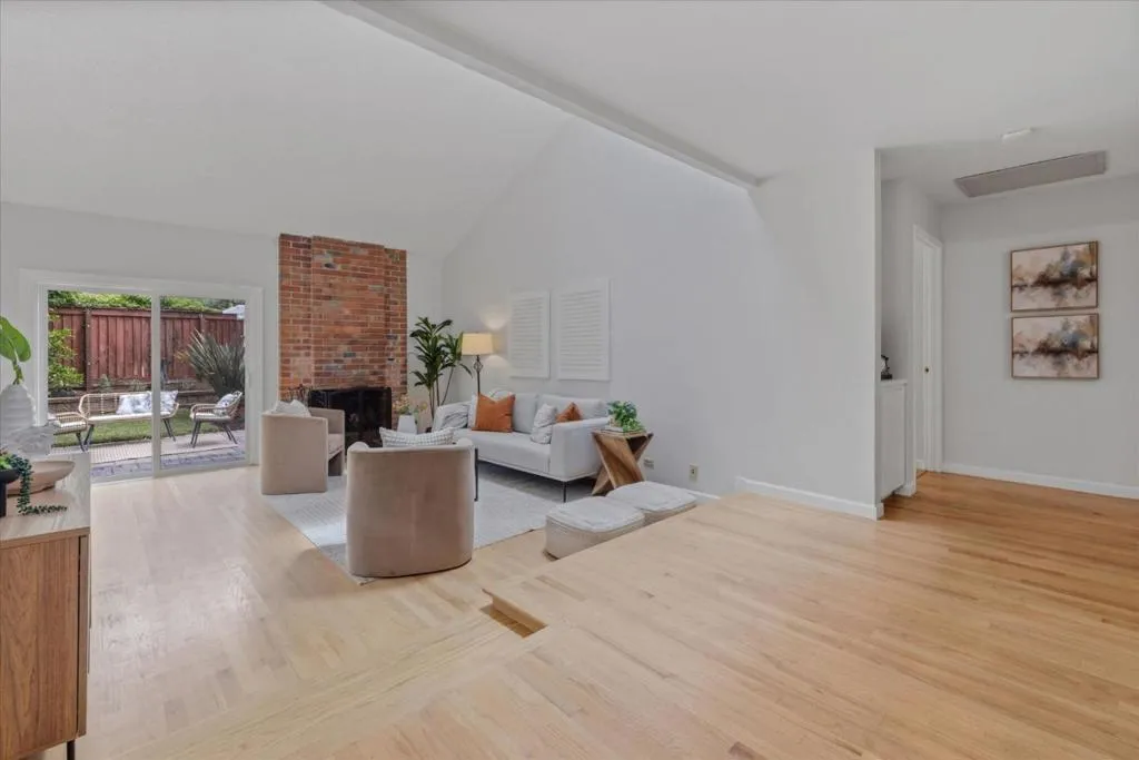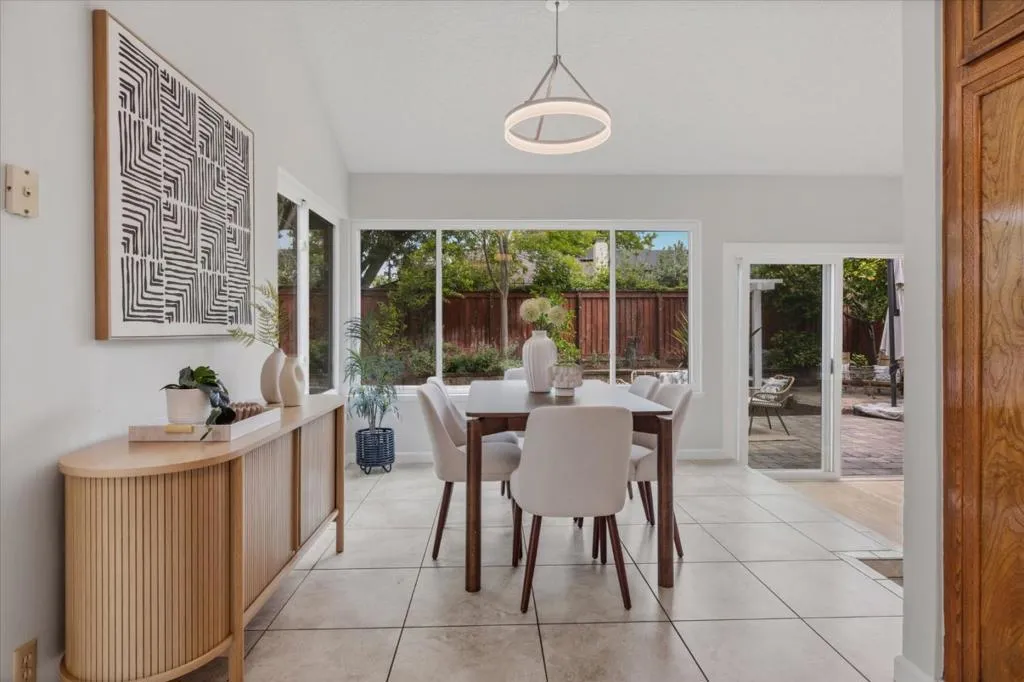 This 3-bedroom, 2-bath home is located in San Jose within the Morgan Hill Unified elementary school district. Also located in the prestiges Los Paseos community of Santa Teresa. The primary bedroom is conveniently situated on the ground floor. The kitchen is equipped with a dishwasher, garbage disposal, electric oven, and refrigerator, offering functionality for daily meal preparation. Flooring throughout the home includes tile and wood, providing a durable and attractive surface. A wood-burning fireplace is featured in the living room, adding a cozy element. Laundry facilities are located in the garage, which also offers space for two vehicles. The bathrooms include a shower over tub in the guest bathroom and a stall shower in the primary. Heating is provided by central forced air. Dining is accommodated in the designated dining area. The community offers access to an in-ground pool as a shared facility.