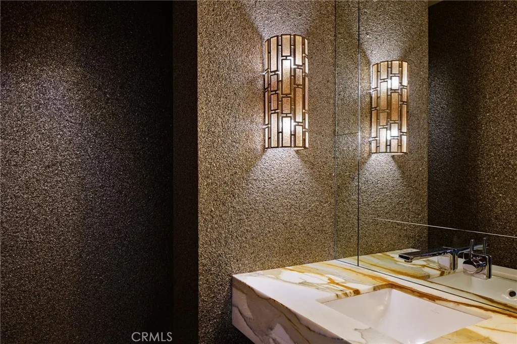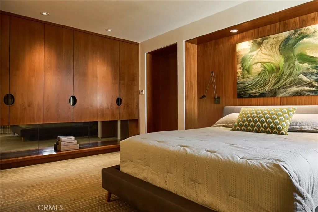 An exceptional representation of refined architecture, design integrity, and thoughtful accommodations developed to suit even the most discerning resident. Formally awarded the recognition of Best Architectural Design in Orange County, the residence was imagined and expanded by Louis Dennis and Jeff Dahl. With Frank Lloyd Wright and Mid-Century-inspired construction practices and design sensibilities, along with the direction of a Feng Shui Master, the creators crafted a one-of-a-kind collection of spaces with an enduring aesthetic; a meticulously sourced assemblage of resilient and rare elements; and a balanced, harmonious environment. The configuration of the entire 10,000 square-foot property, a fluid continuum of well-scaled spaces, is emblematic of the quintessential modern domain, affording myriad opportunities to comfortably reside, entertain, work, and enjoy an atmosphere of relaxed elegance. The interior encompasses six bedrooms; seven total baths; a library/office; formal living and dining or billiard room; a Poliform system kitchen; bar and media room; a fully-equipped fitness room with floor-to-ceiling roll-up doors; sauna; a temperature-controlled wine room; and six-vehicle gallery garage with its own lounge. The exterior surround is graciously connected through a series of massive custom-clad La Cantina collapsing glass doors – an entry fireside terrace; central courtyard with a reflecting pool/spa; a secluded lush lawn, a water wall and sparkling swimming pool with a Baja shelf, adjacent to an outdoor kitchen and dining area equipped with a Teppan table and Lynx barbeque; and a heated California room – offering an uncommon number of independent areas for the benefits of an outdoor lifestyle. Every consideration was made to establish an ideal alchemy of appointments, just a small selection includes – poured-in-place Terrazzo flooring; African walnut and mahogany cladding and finish carpentry; Radiant heated floors; imported stone and artisan-applied finishes; elevated ceilings with clear story windows; flush door frames and walls with base reveals; Gaggenau and Sub-Zero appliances; a multi-room primary suite with a spa bath, dressing salon, and wardrobe; and an integrated home efficiency and audio visual system. Set within the region’s sought-after, idyllic Lake Park district and further complemented by its proximity to iconic beaches and amenities, this extraordinary property is an offering beyond compare.