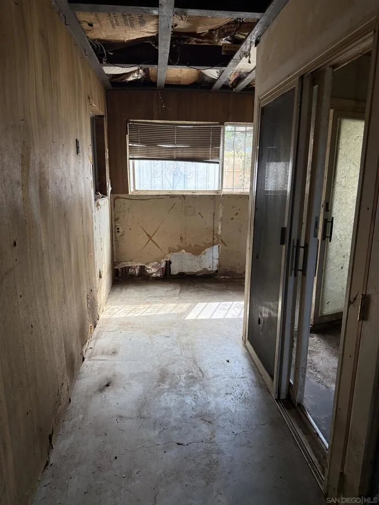 Opportunity knocks for investors, builders, or buyers ready to create something special. This 2-bedroom, 2-bath home offers approximately 1,000 square feet of living space and sits on a generously sized lot with exceptional potential. The property is a full rehab and will require a complete renovation, making it ideal for a full redesign or custom rebuild. Whether you're looking to flip, hold, or design your dream home from the ground up, this is a blank canvas with strong upside. Situated at the end of the street, the location provides added privacy with no neighbors across the street or behind, and only one neighboring property to the side. The lot is fully fenced and offers ample space to expand, add an ADU, install a pool, or create an outdoor retreat tailored to your vision. Rare combination of size, privacy, and potential. Bring your contractor and imagination. One of the lowest priced single-family homes in all of San Diego.