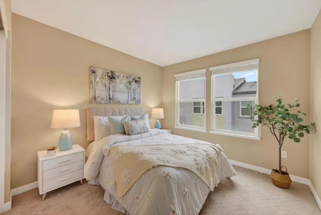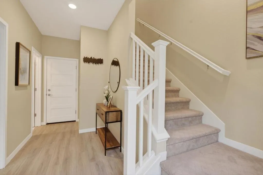 Welcome to 1860 Midnight Circle! In the Highly Desirable Onyx Community. This newer built townhome in 2016 has been maintained and cared for over the years of ownership and has the best floor plan and location in the entire community - A true townhome design not condo style, situated towards the very front of the community away from other units allowing for maximum peace and privacy living. This beautiful home features 4 bedrooms, 3.5 bathrooms, 1,714 sq.ft of living space, an extremely low $250 HOA fee, and a rare two-car side by side garage. As you step inside, you're nicely greeted with a welcoming foyer and bedroom / full bathroom on the first floor. This home flows nicely with a wide open concept floor plan that opens up directly to the kitchen and dining area - perfect for entertaining family and guest. Spacious bedrooms throughout with walk in closet and dual vanity sinks in the primary bedroom. Upgrades include: fresh interior paint (some areas), updated kitchen, and paid off leased solar. Ample amounts of cabinetry and closets for storage. Laundry area is conveniently located upstairs for easy access. Convenient location within close proximity to major tech giants, parks, shopping, restaurants, commute routes, and much more! Don't miss the opportunity to own this Gem!