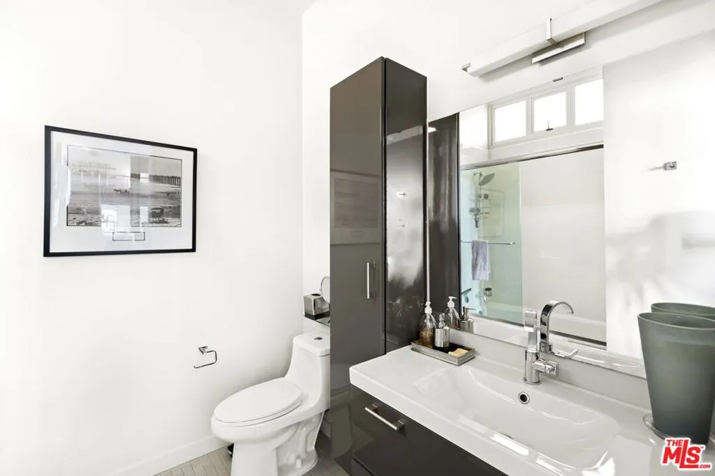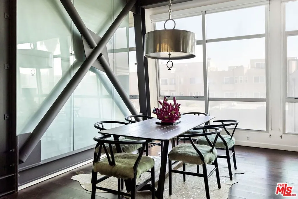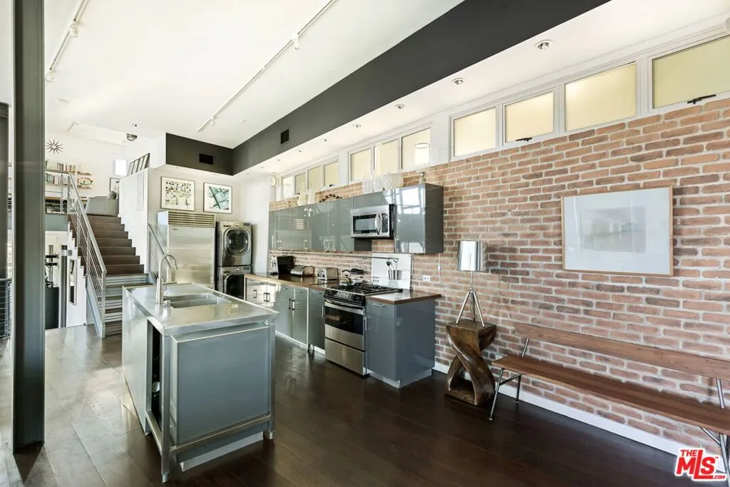 Presenting this rare, architectural New York loft-style home in the heart of downtown Santa Monica. Designed by William Dale Brantley using only the finest steel, glass, and brick finishes, this sleek 2 bedroom, 2 bathroom + office/den space is timeless. The open floor plan is reminiscent of a fine art gallery, with an abundance of natural light pouring in from the wall of windows. The view embodies a perfect blend of east coast meets west coast, with mature palm trees towering over the cityscape. The fully-equipped kitchen features wood countertops with exposed brick backsplash and stainless steel appliances. The main floor is complete with a full bathroom, guest bedroom or gym, dining room, andformal living room with an 80-inch TV and private patio. The sensational primary suite features a walk-in closet and spa-like bathroom with double vanity, soaking tub and shower. The top level is uniquely set up as a second living area and office, ideal for those looking to work or create from home. Conveniently located walking distance to Santa Monica's finest restaurants, shops, markets (2 blocks from Trader Joe's), and the best part of all: 9 blocks from the beach! In-unit laundry and 2 car secure, covered parking. With unparalleled quality, style & design, this is the inspired space you have been searching for.