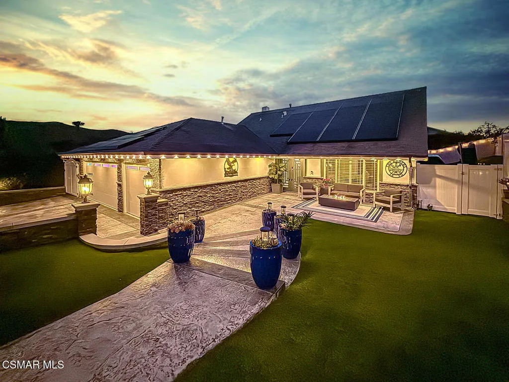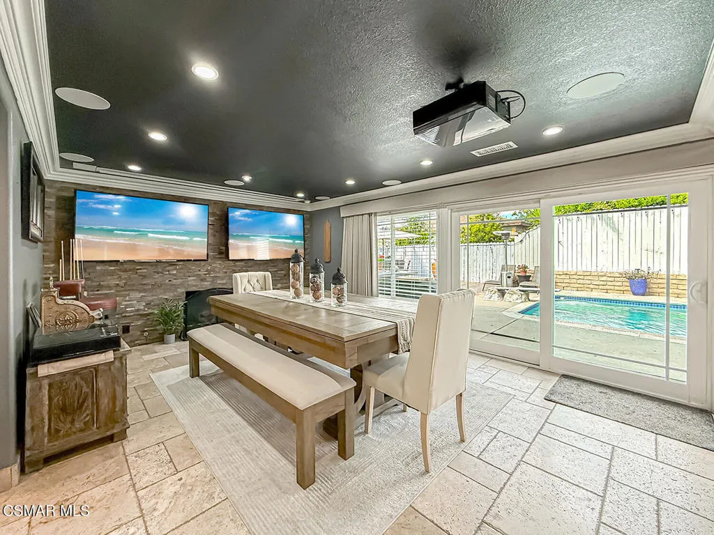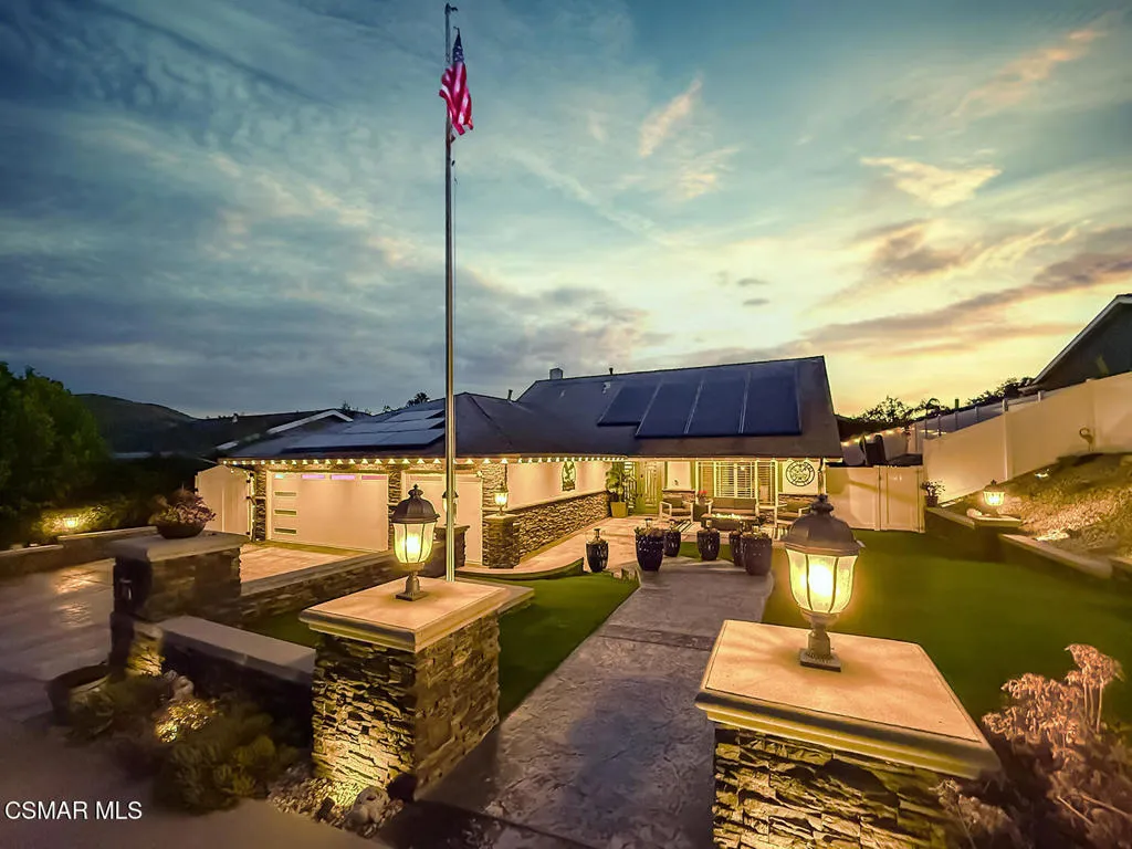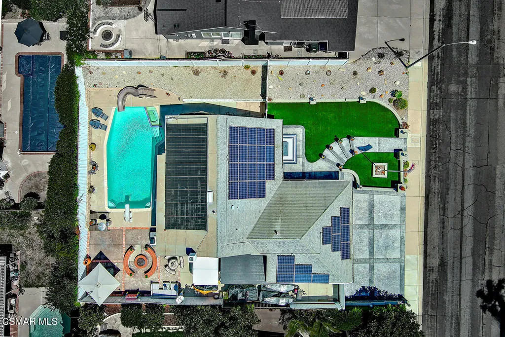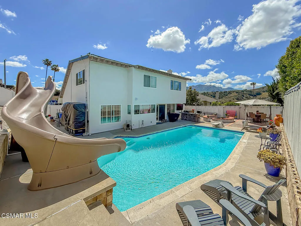 Welcome to 371 Havenside, a highly upgraded view home with RV parking, pool and amazing California outdoor living potential. This gem is ideally situated in a lovely neighborhood that ends on quiet cul-de-sac in the heart of the serene and highly sought-after community of Newbury Park. This wonderfully upgraded residence offers the perfect blend of comfort, style, and effortless California living.Step inside to discover travertine floors flowing throughout the home, creating a warm and elegant foundation. The updated kitchen features light and bright white cabinetry, offering a fresh, modern feel that opens seamlessly to the living spaces. The kitchen dining area duals as table by day and pool table by night (not included) and the space also include dual movie over size screens and ceiling mounted projector for movie and sports fans! (included!) The thoughtfully updated primary suite provides a private retreat, while the 4th bedroom has been transformed into a custom dream walk-in closet--easily convertible back to a bedroom if desired.Dining room has been transformed into your own private tasing room!Designed for both relaxation and entertaining, the outdoor spaces are exceptional. Enjoy a low-maintenance front lounge area with beautiful concrete work and a cozy fire pit, enhanced by custom lighting that creates an inviting ambiance day and night. The backyard showcases a sparkling pool, built-in barbecue, lush turf, and peaceful hillside views, all complemented by custom lighting throughout the front and rear yards, offering a true private oasis.Additional highlights include leased solar for reduced energy costs, beautifully crafted exterior stonework, and a freshly painted interior. The home also features a 3-car garage, substantial RV or boat parking, and additional driveway space for up to four vehicles--an incredibly rare offering.In addition of downstairs office is a bonus room, workout haven. This additional area is not included in sq footage and was competed by licensed contractor& is not permitted.This is a rare opportunity to own a turnkey home that combines luxury, functionality, and the tranquility of Newbury Park living. This home is close to stores, restaurants and modern convenience shops and great schools, come see for yourself!Exterior EnhancementsThe front yard has been completely transformed with a full custom remodel, including:Stack stone accents and custom plantersConcrete and hardscape upgradesArtificial turf for low-maintenance beautySmooth stucco finishUnder-eave lighting and walkway lightingFull landscape lighting systemAdditional upgrades include:Newer garage doors and openerFully remodeled garage spaceInterior UpgradesStep inside to a home that has been extensively upgraded with premium materials and craftsmanship:Travertine flooring throughout, including a fully upgraded staircaseFully remodeled bathrooms (downstairs guest, upstairs, and primary suite)All-new stone baseboards throughoutCompletely remodeled kitchen with upgraded cabinetryCustom-built wine room additionStylish barn-style sliding doors connecting the family room to the wine roomCrown molding and chair rail detailingCustom lighting throughout the entire homeNew flooring in the second bedroom closetCustom attic access in the garage with finished stucco and lightingStandout FeaturesDedicated wine room -- a rare and upscale additionMultiple entertainment zones with included media featuresDesigner finishes throughoutTurnkey indoor/outdoor living experience