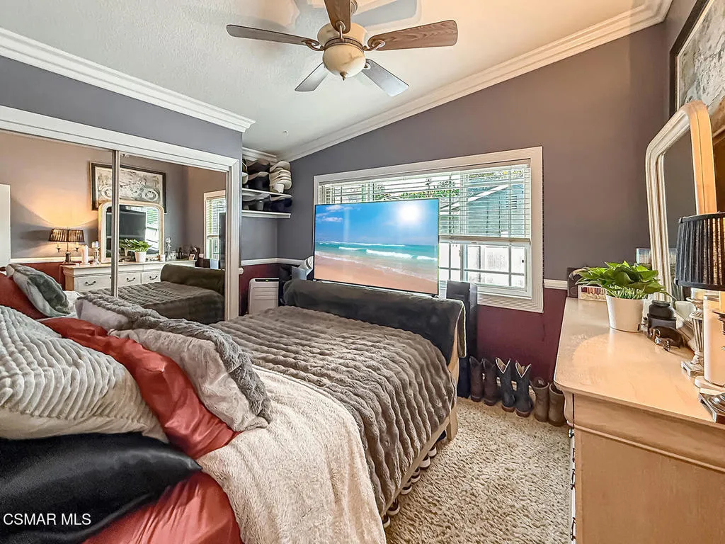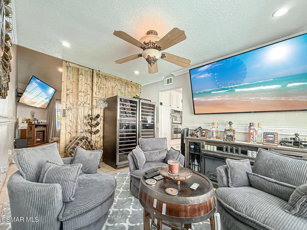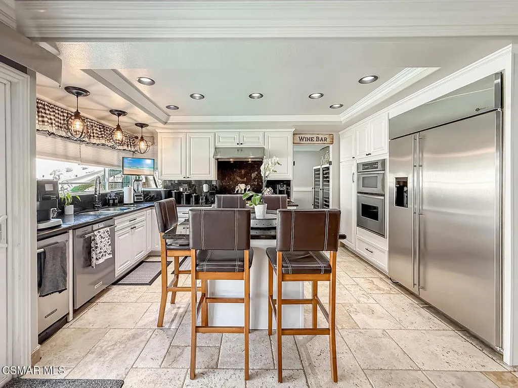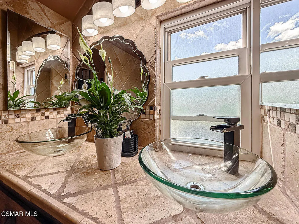 Welcome to 371 Havenside, a highly upgraded view home with RV parking, pool and amazing California outdoor living potential. This gem is ideally situated in a lovely neighborhood that ends on quiet cul-de-sac in the heart of the serene and highly sought-after community of Newbury Park. This wonderfully upgraded residence offers the perfect blend of comfort, style, and effortless California living.Step inside to discover travertine floors flowing throughout the home, creating a warm and elegant foundation. The updated kitchen features light and bright white cabinetry, offering a fresh, modern feel that opens seamlessly to the living spaces. The kitchen dining area duals as table by day and pool table by night (not included) and the space also include dual movie over size screens and ceiling mounted projector for movie and sports fans! (included!) The thoughtfully updated primary suite provides a private retreat, while the 4th bedroom has been transformed into a custom dream walk-in closet--easily convertible back to a bedroom if desired.Dining room has been transformed into your own private tasing room!Designed for both relaxation and entertaining, the outdoor spaces are exceptional. Enjoy a low-maintenance front lounge area with beautiful concrete work and a cozy fire pit, enhanced by custom lighting that creates an inviting ambiance day and night. The backyard showcases a sparkling pool, built-in barbecue, lush turf, and peaceful hillside views, all complemented by custom lighting throughout the front and rear yards, offering a true private oasis.Additional highlights include leased solar for reduced energy costs, beautifully crafted exterior stonework, and a freshly painted interior. The home also features a 3-car garage, substantial RV or boat parking, and additional driveway space for up to four vehicles--an incredibly rare offering.In addition of downstairs office is a bonus room, workout haven. This additional area is not included in sq footage and was competed by licensed contractor& is not permitted.This is a rare opportunity to own a turnkey home that combines luxury, functionality, and the tranquility of Newbury Park living. This home is close to stores, restaurants and modern convenience shops and great schools, come see for yourself!Exterior EnhancementsThe front yard has been completely transformed with a full custom remodel, including:Stack stone accents and custom plantersConcrete and hardscape upgradesArtificial turf for low-maintenance beautySmooth stucco finishUnder-eave lighting and walkway lightingFull landscape lighting systemAdditional upgrades include:Newer garage doors and openerFully remodeled garage spaceInterior UpgradesStep inside to a home that has been extensively upgraded with premium materials and craftsmanship:Travertine flooring throughout, including a fully upgraded staircaseFully remodeled bathrooms (downstairs guest, upstairs, and primary suite)All-new stone baseboards throughoutCompletely remodeled kitchen with upgraded cabinetryCustom-built wine room additionStylish barn-style sliding doors connecting the family room to the wine roomCrown molding and chair rail detailingCustom lighting throughout the entire homeNew flooring in the second bedroom closetCustom attic access in the garage with finished stucco and lightingStandout FeaturesDedicated wine room -- a rare and upscale additionMultiple entertainment zones with included media featuresDesigner finishes throughoutTurnkey indoor/outdoor living experience