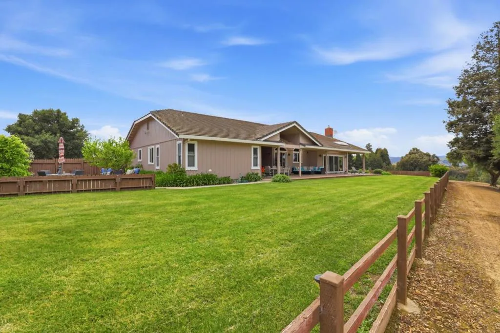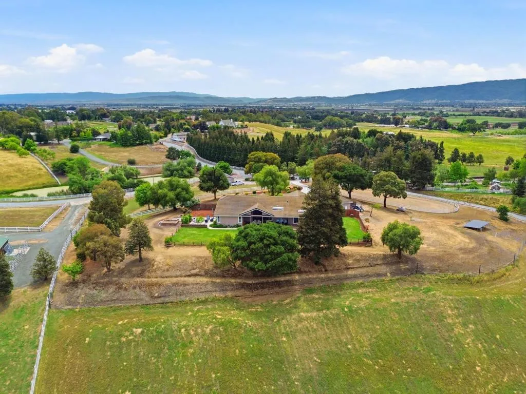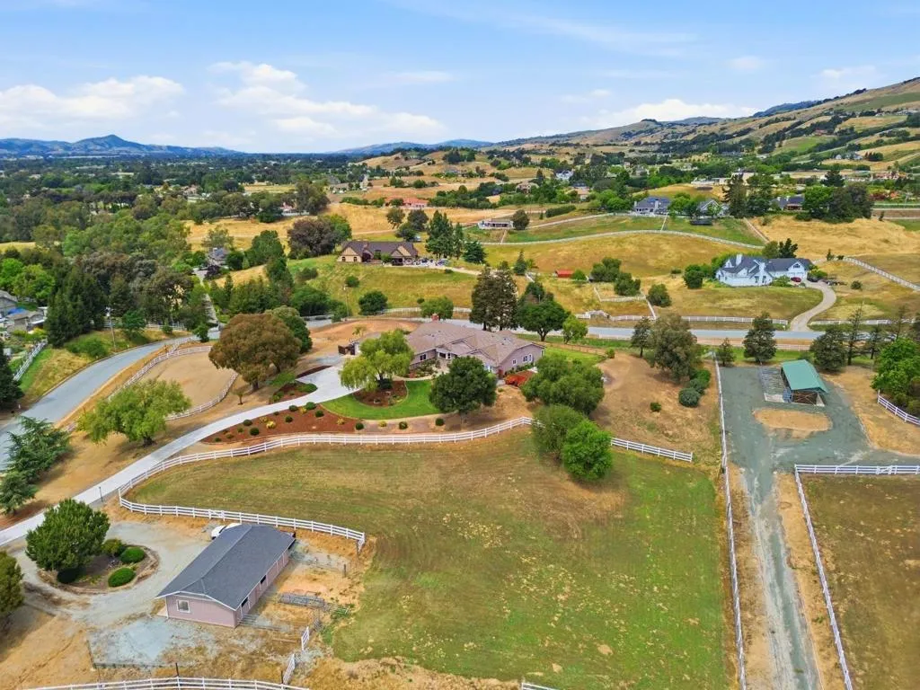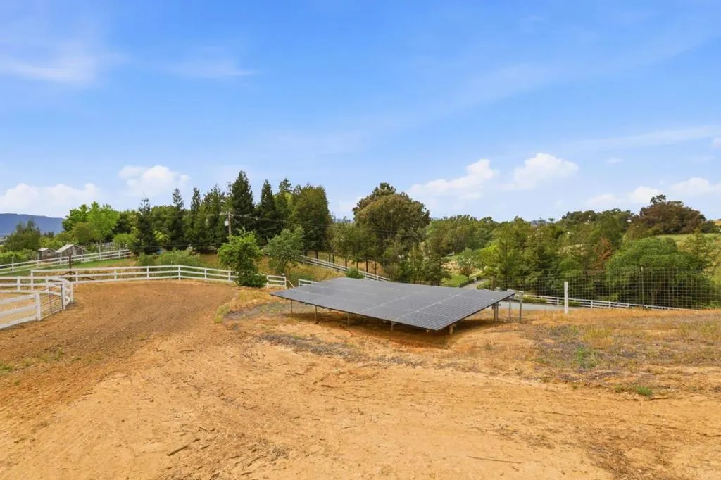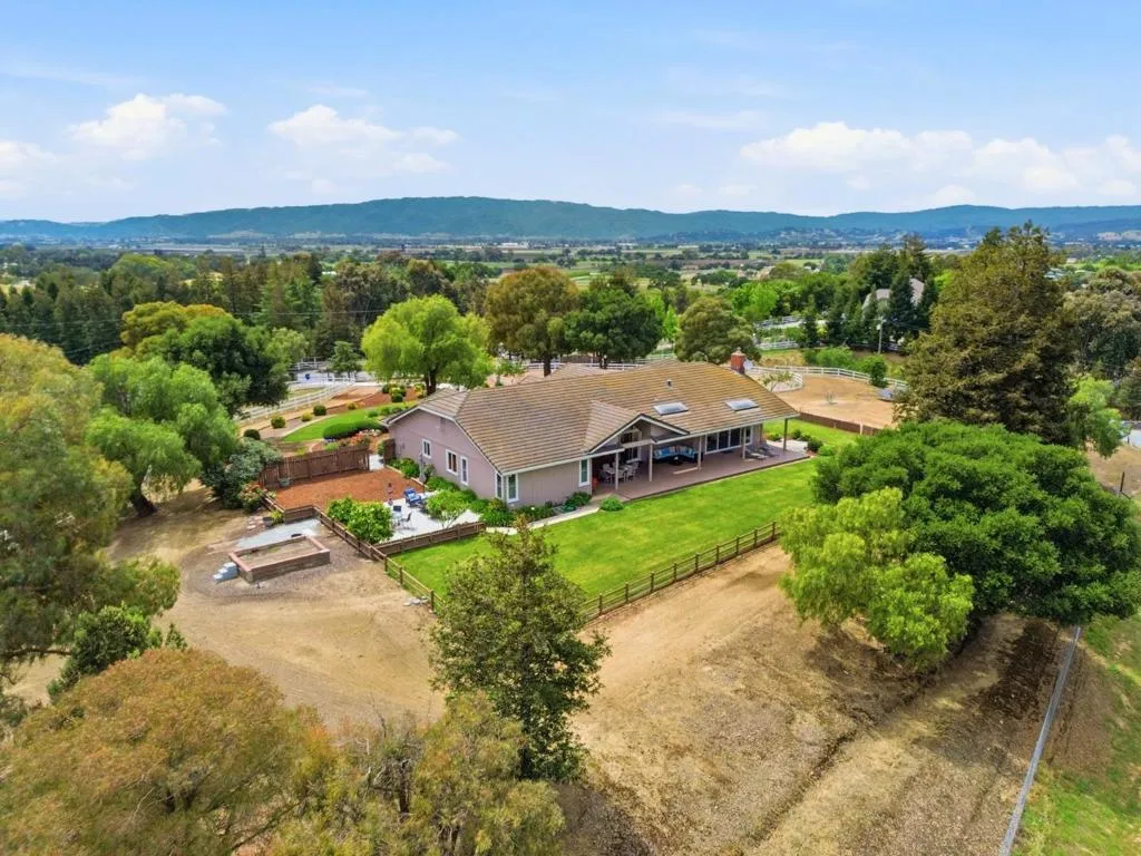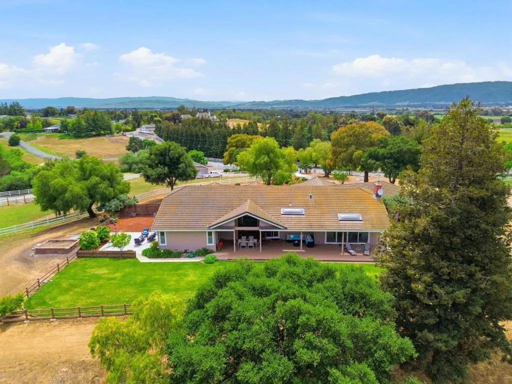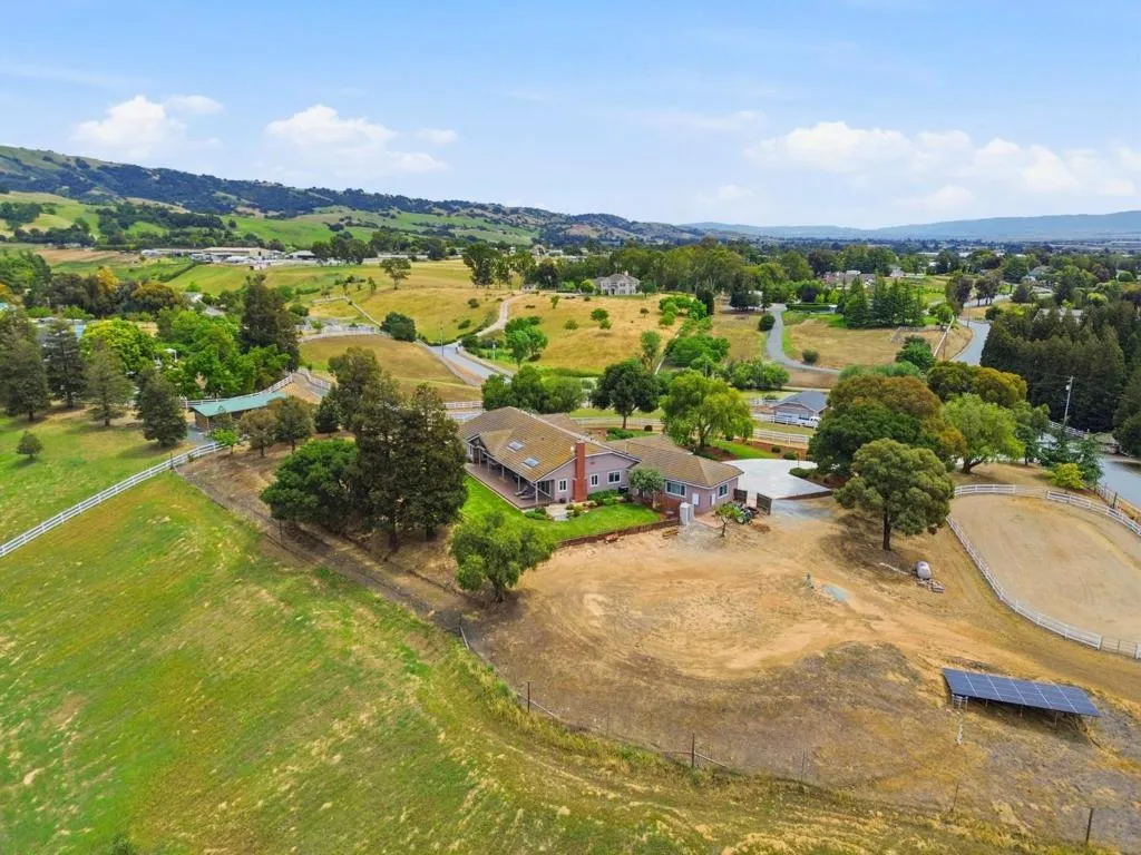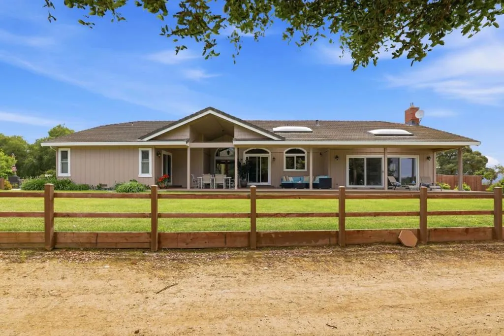 Privacy without isolation perfectly defines the lifestyle this exceptional single-story ranch delivers. Set atop a premium hilltop parcel w/ county-maintained road access on 3 sides, the property offers a rare sense of seclusion, panoramic valley & hillside views, and a peaceful setting - yet remains just minutes from shopping, dining & everyday conveniences. The homes placement was thoughtfully chosen to capture natural light, reduce wind exposure & maximize both views and functionality, creating a seamless connection between indoor & outdoor living. Inside, the layout is warm and inviting, centered around a stunning family room with a dramatic wall of windows and a cozy gas fireplace. The kitchen and living spaces flow effortlessly to a large covered patio, ideal for entertaining or simply enjoying the surrounding landscape. Extensive upgrades include remodeled bathrooms, hardwood flooring, a new driveway, and energy-efficient features such as a 10kW solar system with Tesla battery backup and a modern heat pump. The grounds offer walking paths, gardens, multiple sitting areas, and a barn with future potential, including possible ADU use. Whether you're seeking space for recreation, animals, or quiet retreat, this property captures the balance so many buyers are searching for
