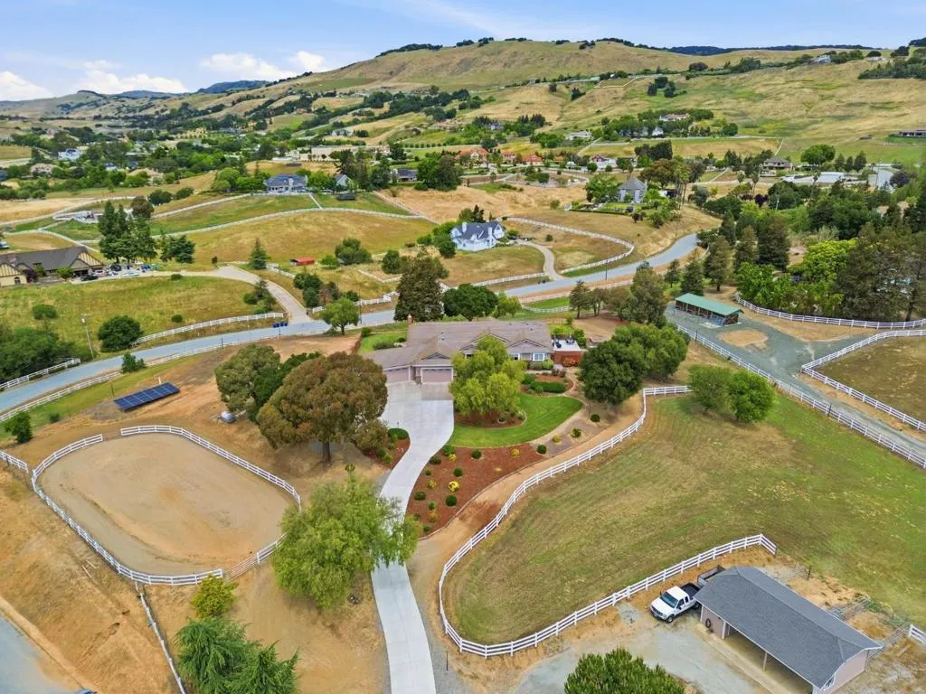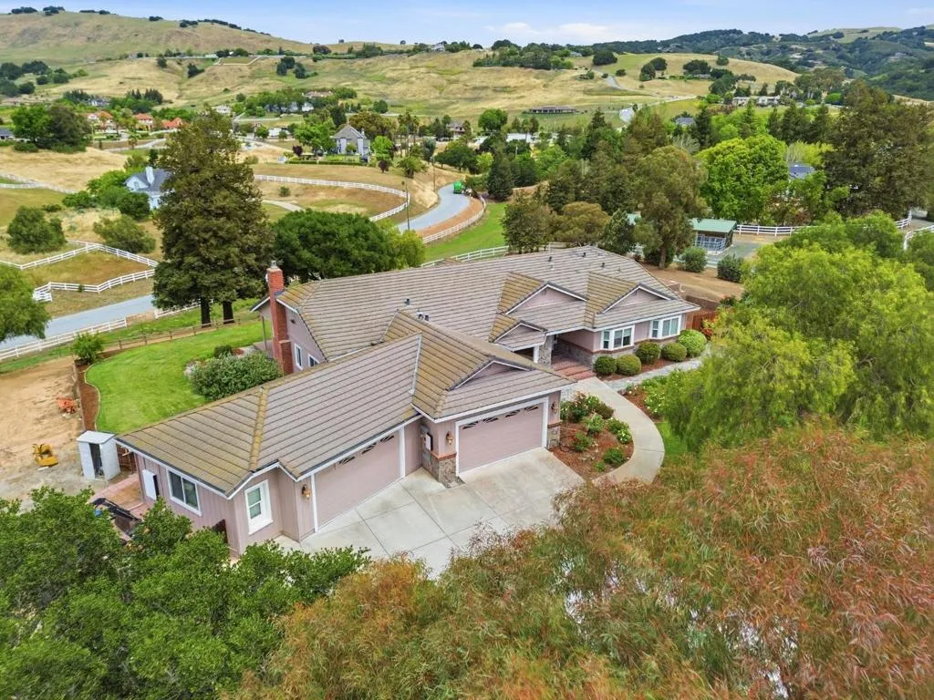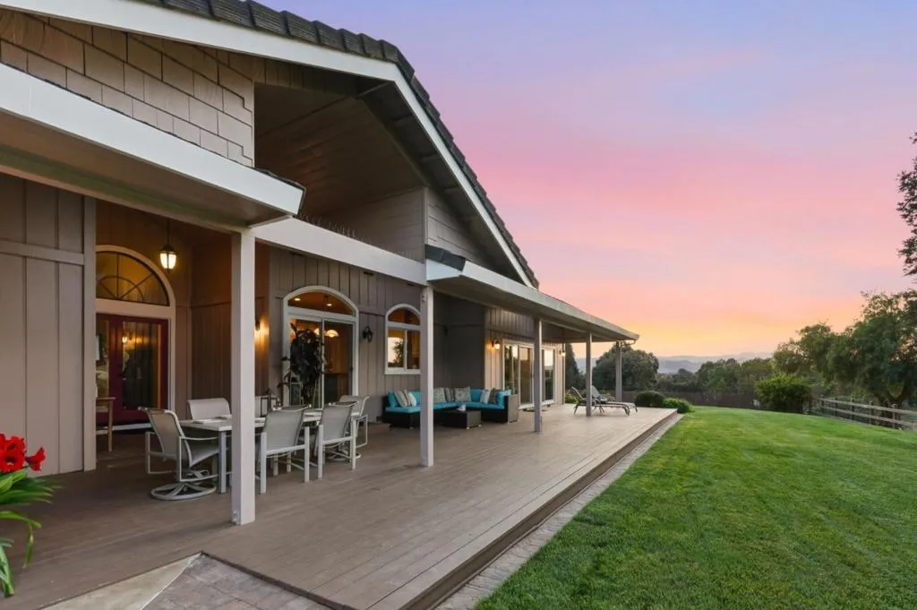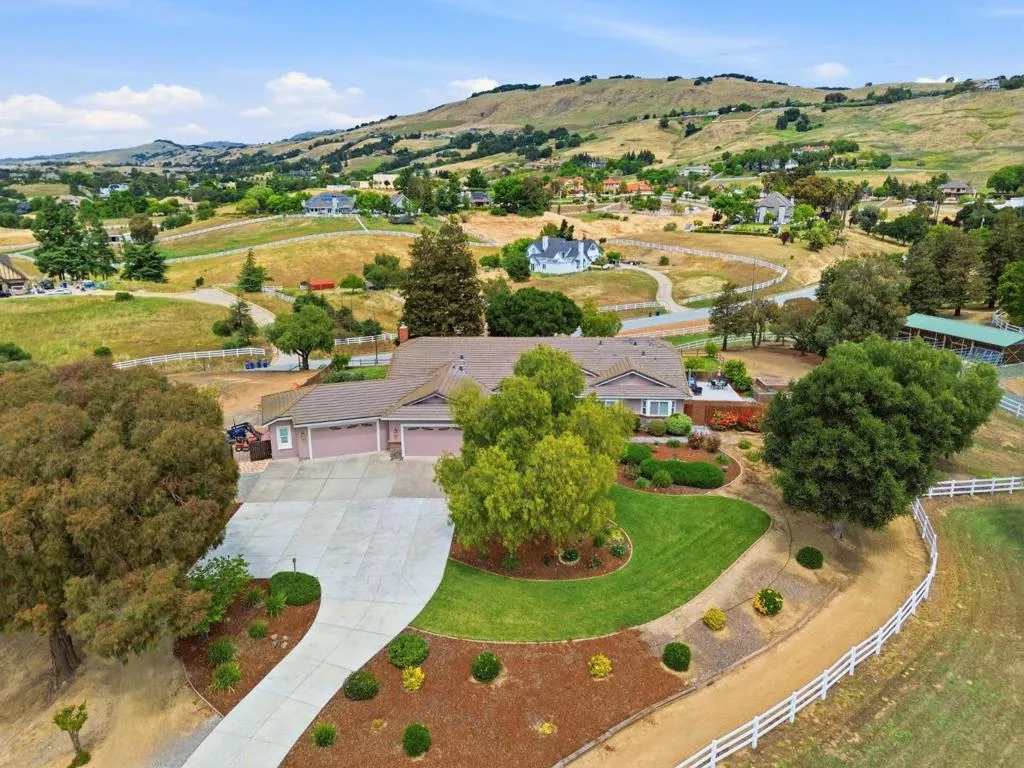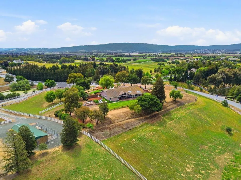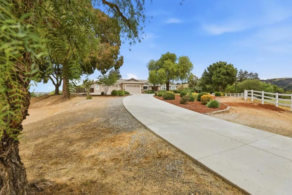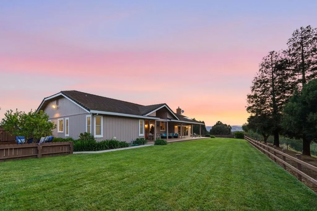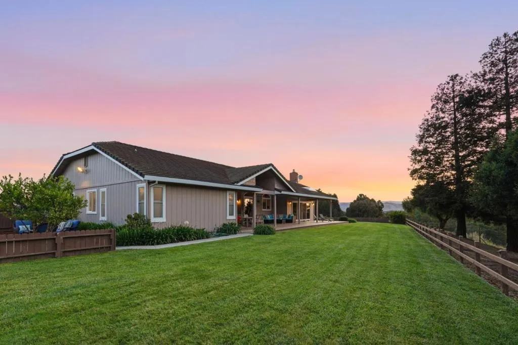 Privacy without isolation perfectly defines the lifestyle this exceptional single-story ranch delivers. Set atop a premium hilltop parcel w/ county-maintained road access on 3 sides, the property offers a rare sense of seclusion, panoramic valley & hillside views, and a peaceful setting - yet remains just minutes from shopping, dining & everyday conveniences. The homes placement was thoughtfully chosen to capture natural light, reduce wind exposure & maximize both views and functionality, creating a seamless connection between indoor & outdoor living. Inside, the layout is warm and inviting, centered around a stunning family room with a dramatic wall of windows and a cozy gas fireplace. The kitchen and living spaces flow effortlessly to a large covered patio, ideal for entertaining or simply enjoying the surrounding landscape. Extensive upgrades include remodeled bathrooms, hardwood flooring, a new driveway, and energy-efficient features such as a 10kW solar system with Tesla battery backup and a modern heat pump. The grounds offer walking paths, gardens, multiple sitting areas, and a barn with future potential, including possible ADU use. Whether you're seeking space for recreation, animals, or quiet retreat, this property captures the balance so many buyers are searching for