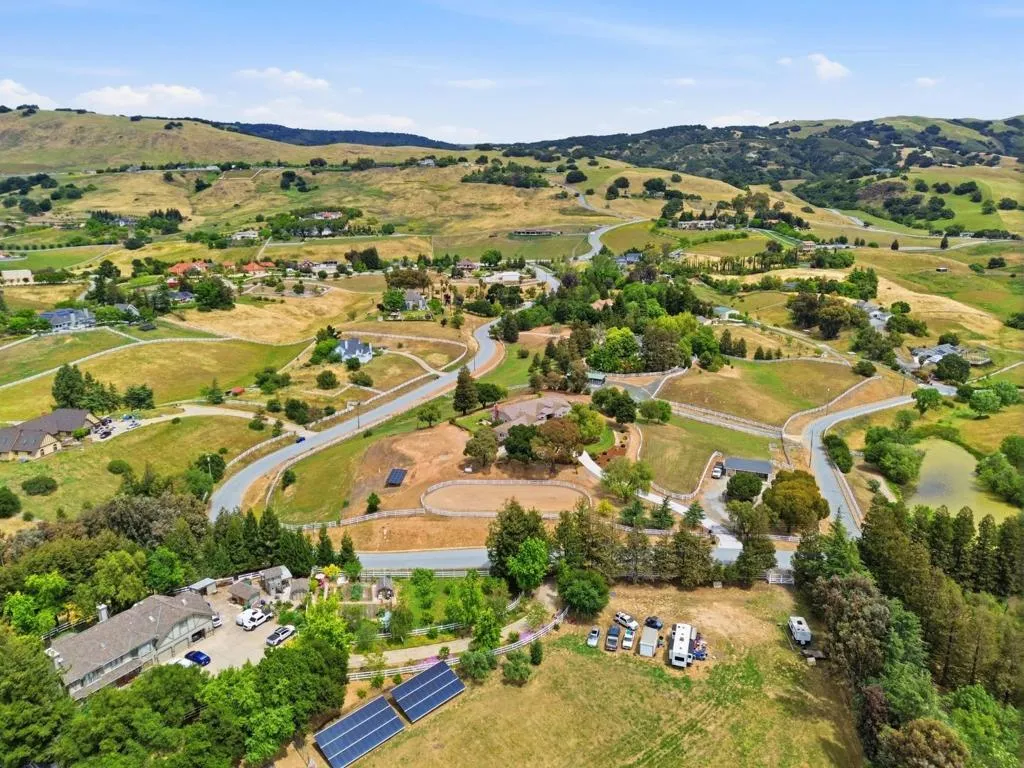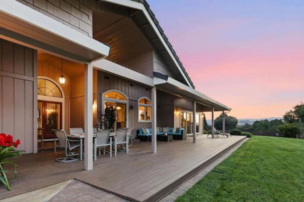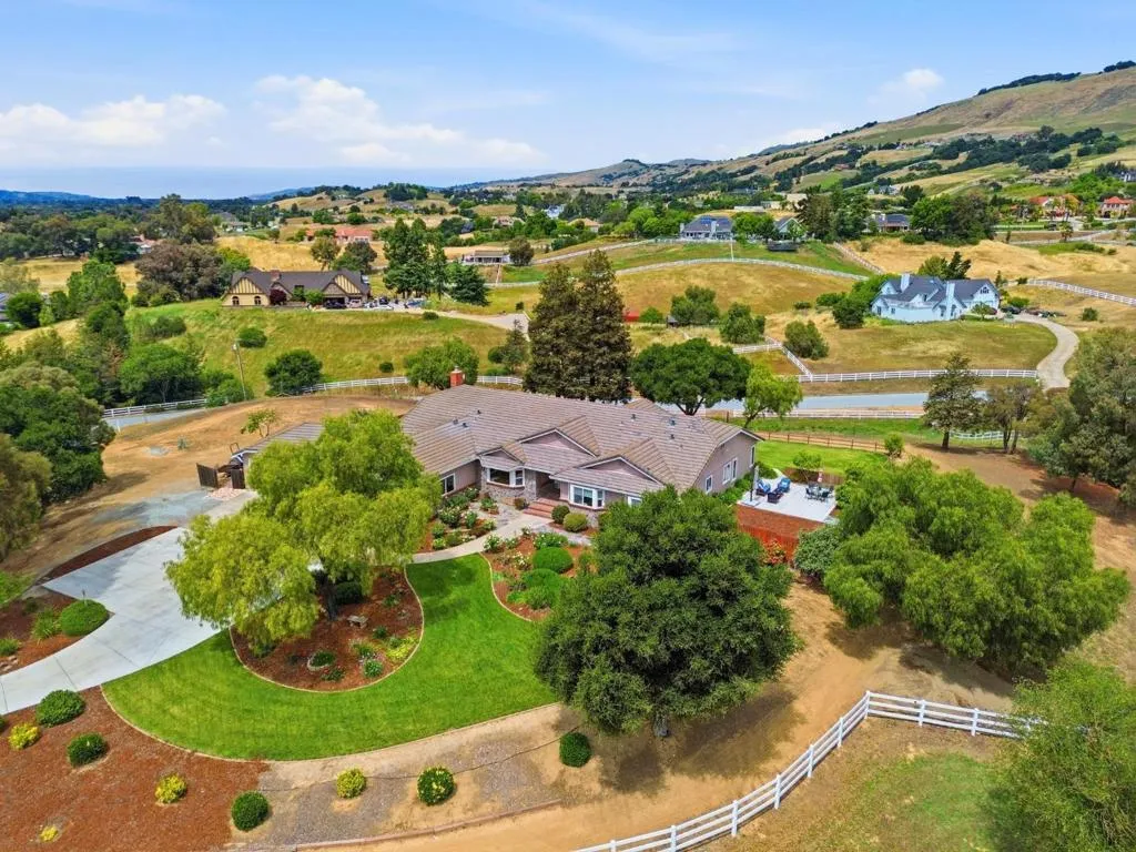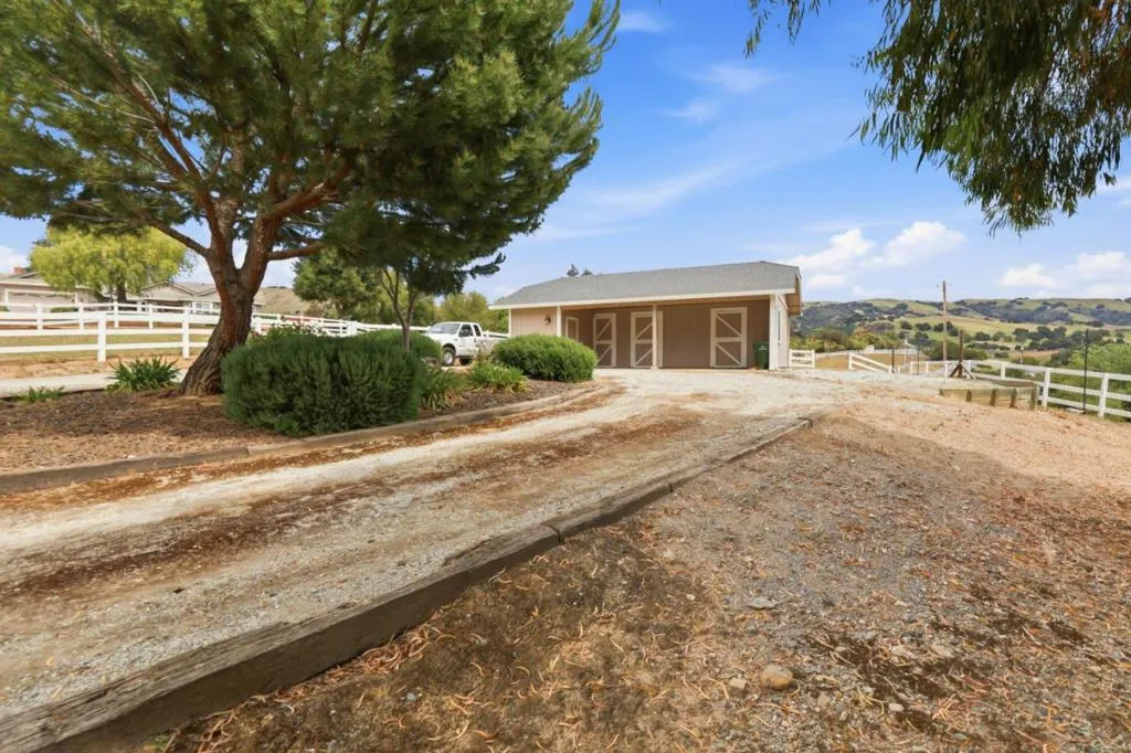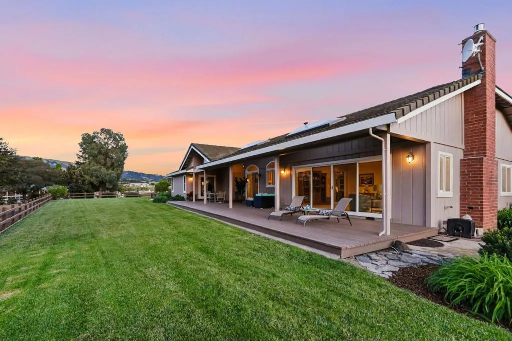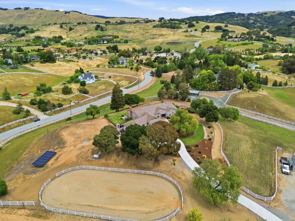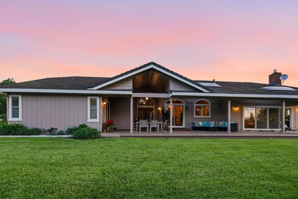 Privacy without isolation perfectly defines the lifestyle this exceptional single-story ranch delivers. Set atop a premium hilltop parcel w/ county-maintained road access on 3 sides, the property offers a rare sense of seclusion, panoramic valley & hillside views, and a peaceful setting - yet remains just minutes from shopping, dining & everyday conveniences. The homes placement was thoughtfully chosen to capture natural light, reduce wind exposure & maximize both views and functionality, creating a seamless connection between indoor & outdoor living. Inside, the layout is warm and inviting, centered around a stunning family room with a dramatic wall of windows and a cozy gas fireplace. The kitchen and living spaces flow effortlessly to a large covered patio, ideal for entertaining or simply enjoying the surrounding landscape. Extensive upgrades include remodeled bathrooms, hardwood flooring, a new driveway, and energy-efficient features such as a 10kW solar system with Tesla battery backup and a modern heat pump. The grounds offer walking paths, gardens, multiple sitting areas, and a barn with future potential, including possible ADU use. Whether you're seeking space for recreation, animals, or quiet retreat, this property captures the balance so many buyers are searching for