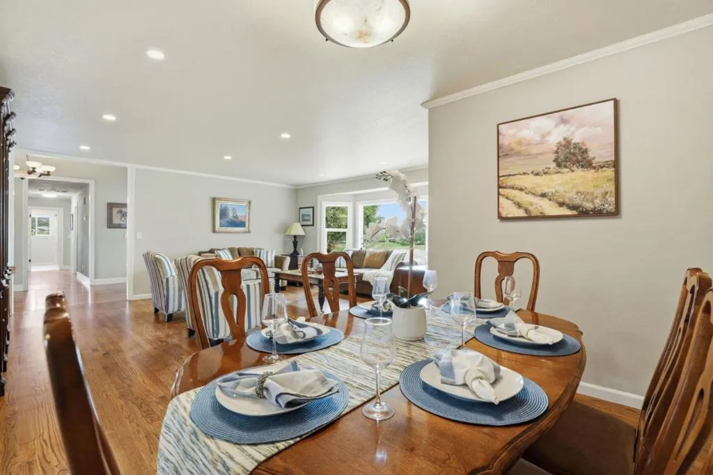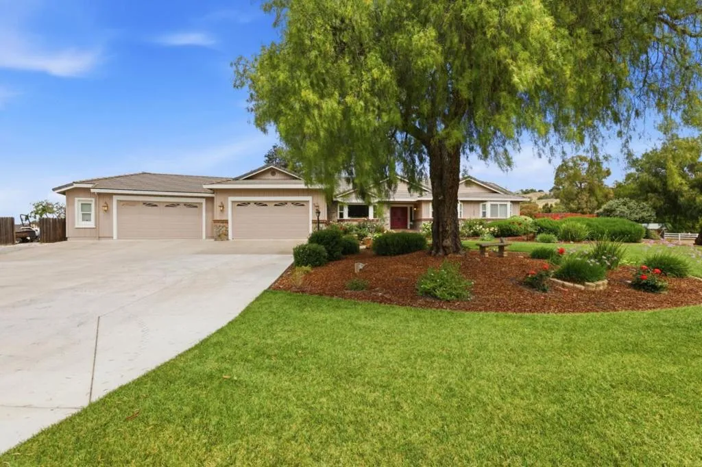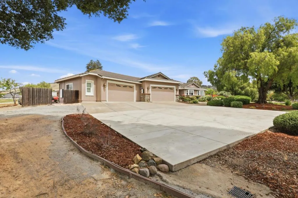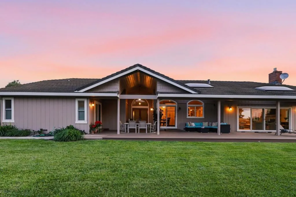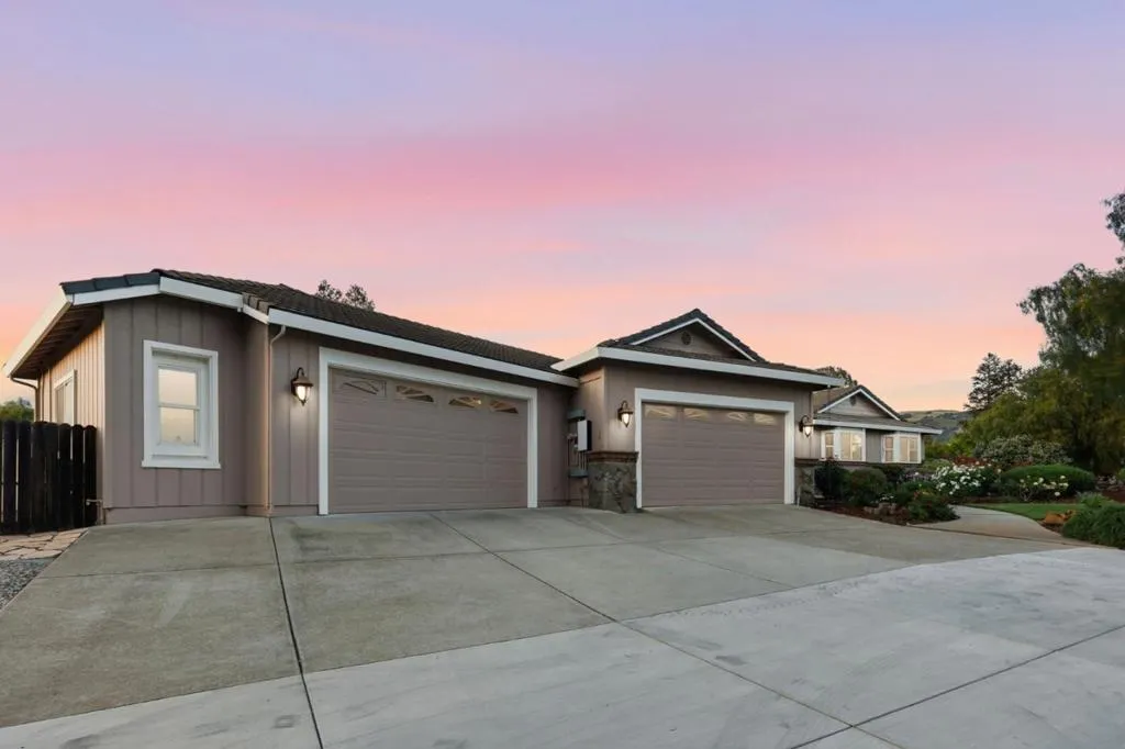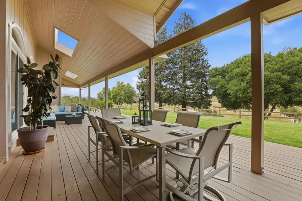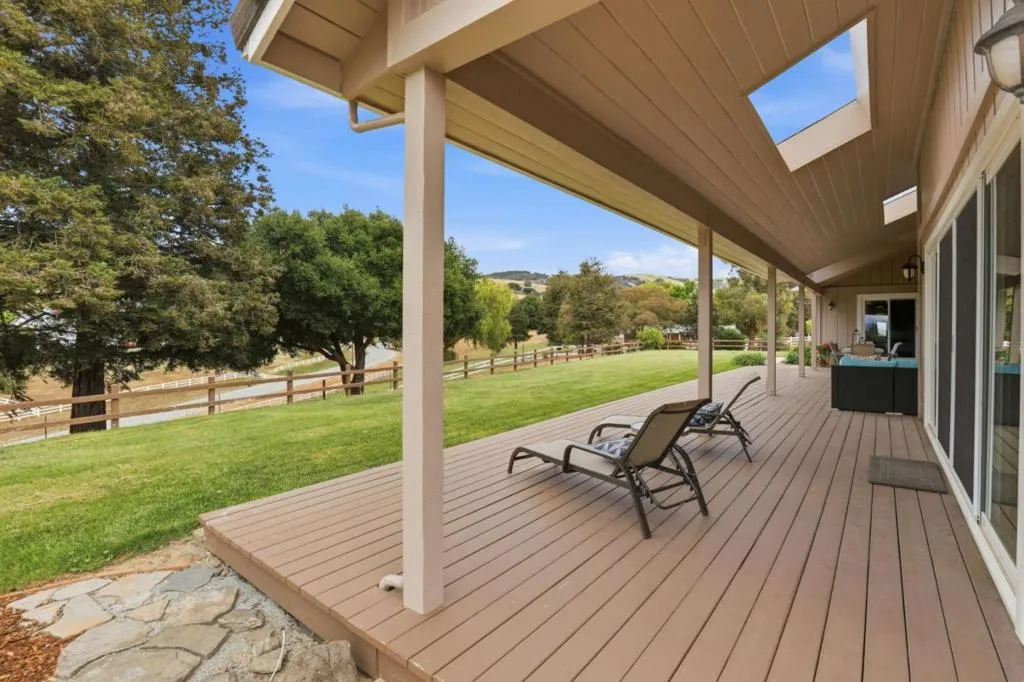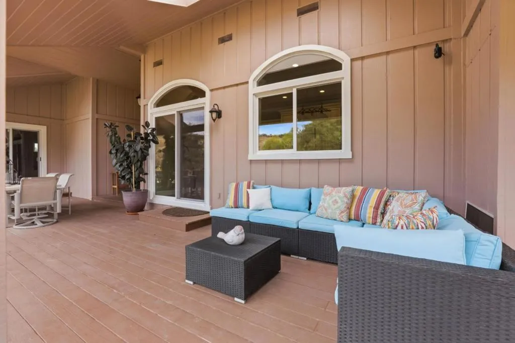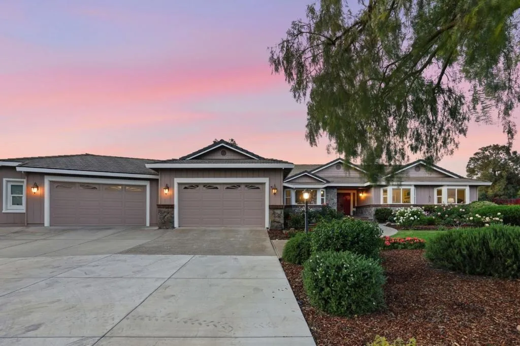 Privacy without isolation perfectly defines the lifestyle this exceptional single-story ranch delivers. Set atop a premium hilltop parcel w/ county-maintained road access on 3 sides, the property offers a rare sense of seclusion, panoramic valley & hillside views, and a peaceful setting - yet remains just minutes from shopping, dining & everyday conveniences. The homes placement was thoughtfully chosen to capture natural light, reduce wind exposure & maximize both views and functionality, creating a seamless connection between indoor & outdoor living. Inside, the layout is warm and inviting, centered around a stunning family room with a dramatic wall of windows and a cozy gas fireplace. The kitchen and living spaces flow effortlessly to a large covered patio, ideal for entertaining or simply enjoying the surrounding landscape. Extensive upgrades include remodeled bathrooms, hardwood flooring, a new driveway, and energy-efficient features such as a 10kW solar system with Tesla battery backup and a modern heat pump. The grounds offer walking paths, gardens, multiple sitting areas, and a barn with future potential, including possible ADU use. Whether you're seeking space for recreation, animals, or quiet retreat, this property captures the balance so many buyers are searching for