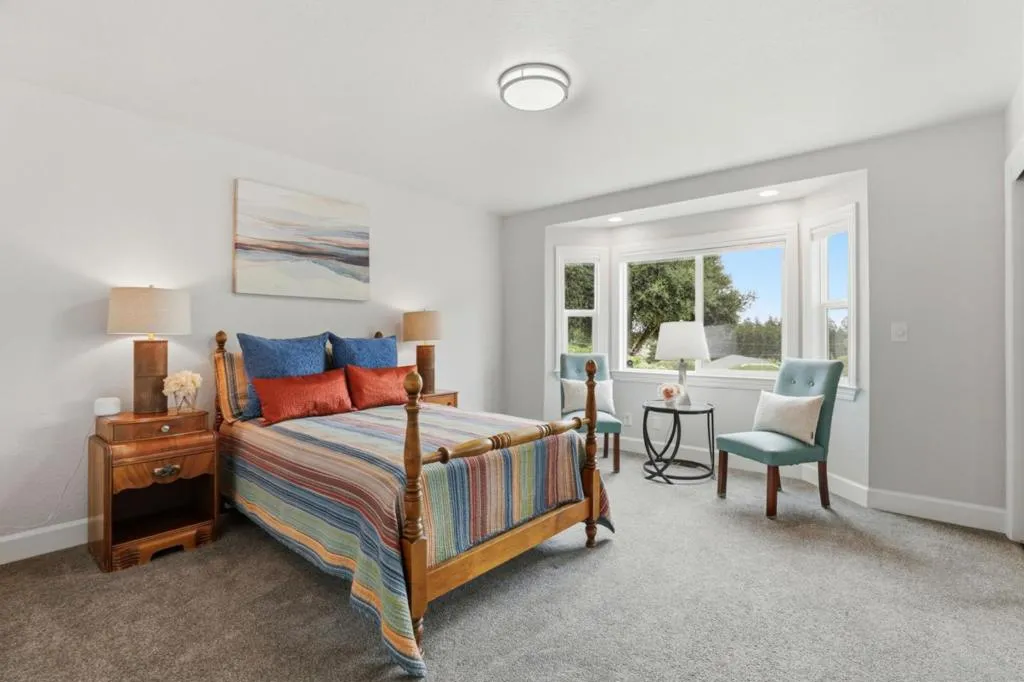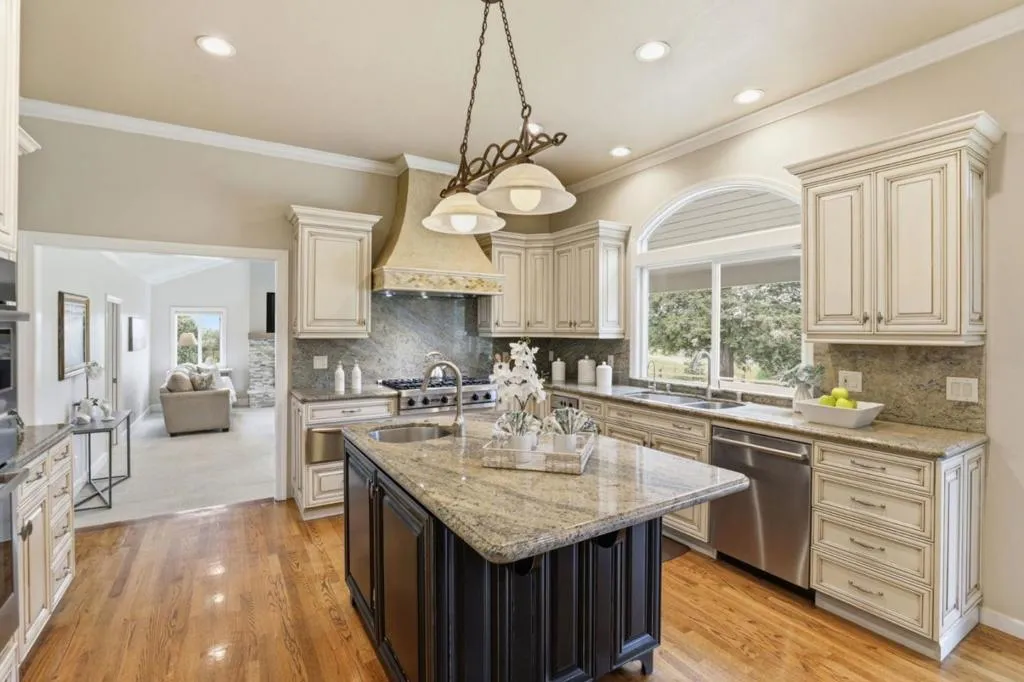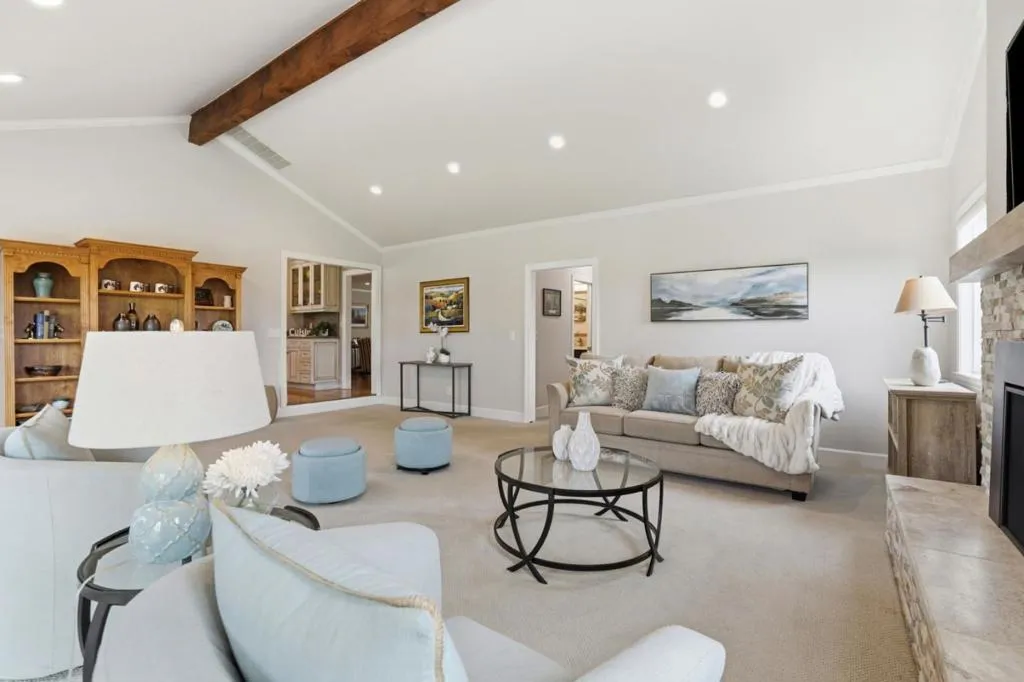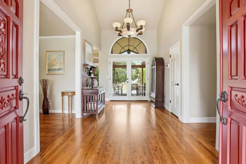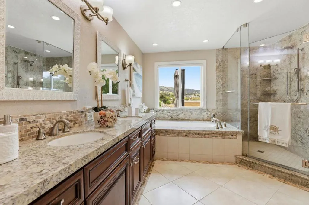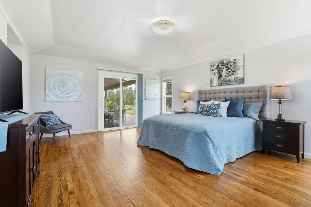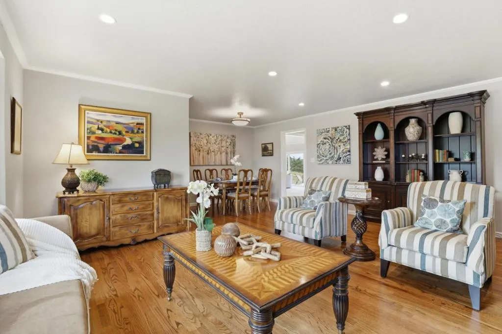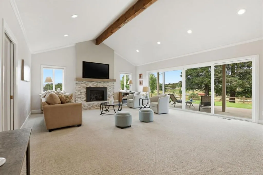 Privacy without isolation perfectly defines the lifestyle this exceptional single-story ranch delivers. Set atop a premium hilltop parcel w/ county-maintained road access on 3 sides, the property offers a rare sense of seclusion, panoramic valley & hillside views, and a peaceful setting - yet remains just minutes from shopping, dining & everyday conveniences. The homes placement was thoughtfully chosen to capture natural light, reduce wind exposure & maximize both views and functionality, creating a seamless connection between indoor & outdoor living. Inside, the layout is warm and inviting, centered around a stunning family room with a dramatic wall of windows and a cozy gas fireplace. The kitchen and living spaces flow effortlessly to a large covered patio, ideal for entertaining or simply enjoying the surrounding landscape. Extensive upgrades include remodeled bathrooms, hardwood flooring, a new driveway, and energy-efficient features such as a 10kW solar system with Tesla battery backup and a modern heat pump. The grounds offer walking paths, gardens, multiple sitting areas, and a barn with future potential, including possible ADU use. Whether you're seeking space for recreation, animals, or quiet retreat, this property captures the balance so many buyers are searching for