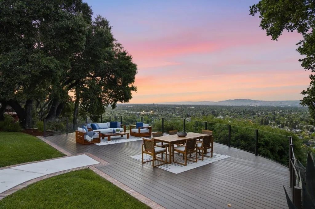 Spectacular, panoramic views distinguish this exceptional residence at 108 Harwood Court, Los Gatos. Encompassing approximately 4,471 square feet and situated on 1.2 acres, the home offers 5 bedrooms and 3.5 bathrooms, thoughtfully designed to accommodate both formal entertaining and comfortable daily living. The well-appointed kitchen is equipped with a chefs gas cooktop, granite countertops, and a generous pantry. Newly refinished hardwood floors and an elegant crystal chandelier enhance the grand foyer, defined by dramatic dual staircases. 2 bedrooms are located on the main level and share a full bathroom, well-suited for guests or multigenerational living. A dedicated executive office provides additional flexibility. High ceilings, abundant natural light, and 3 fireplaces add architectural interest throughout. A spacious deck offers an ideal setting for outdoor entertaining while capturing the breathtaking views. Additional features include a formal dining room, a separate family room, powder room, and a spacious utility room with washer and dryer. The property includes a 4-car garage, carport, and offers convenient access to nearby hiking trails and a short drive to downtown Los Gatos.