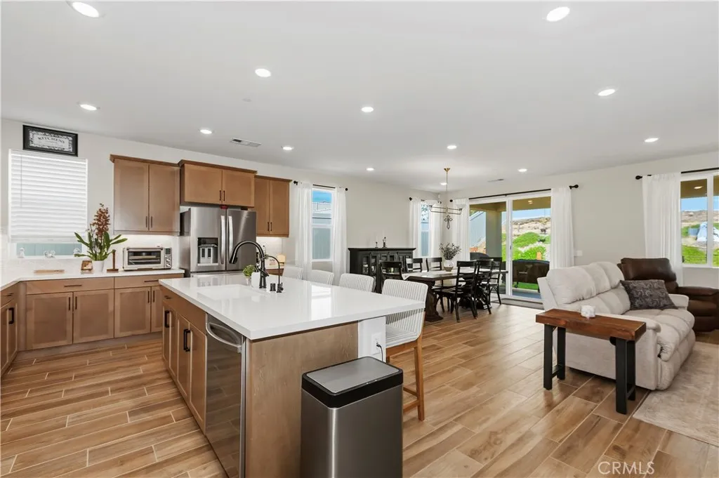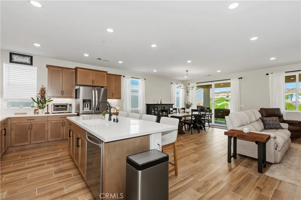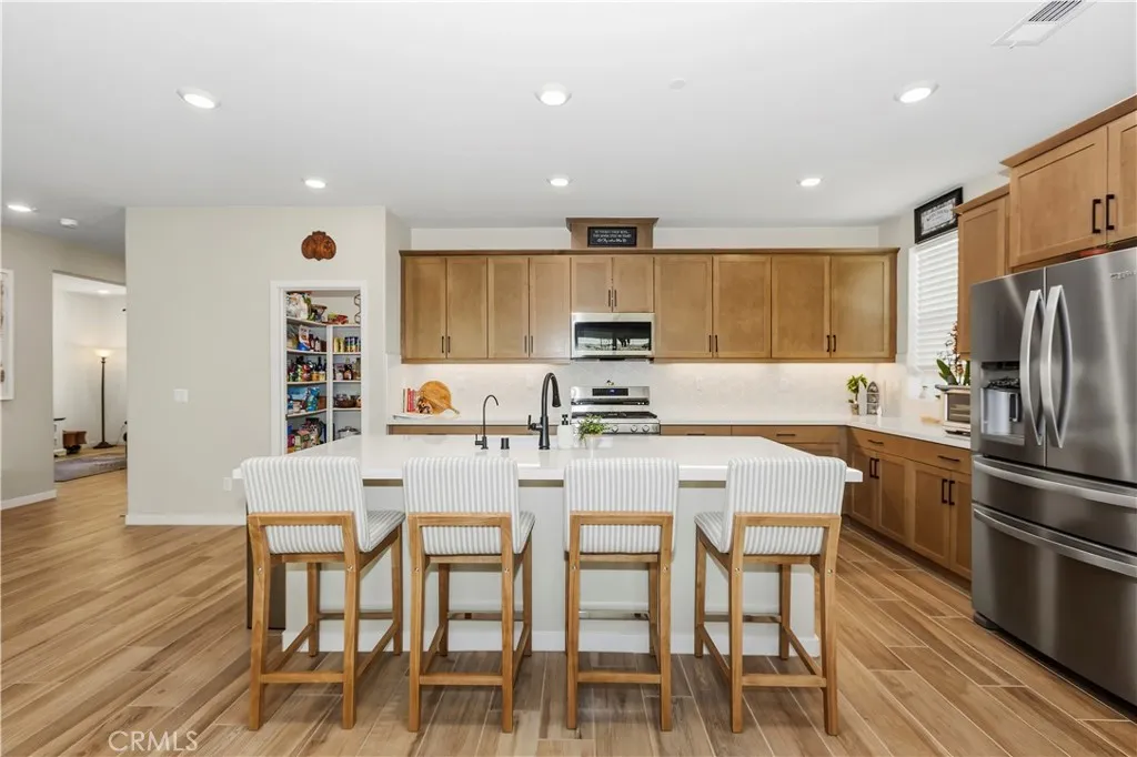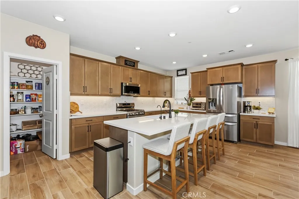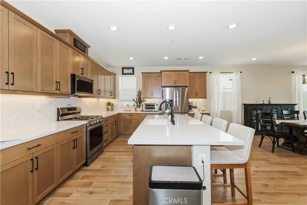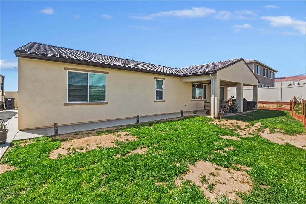 Opportunity knocks! Better than new, built in 2025 and barely a year old, this beautifully upgraded home offers the rare opportunity to enjoy like-new construction without the wait, expense, and hassle —plus thoughtful enhancements already in place. From the moment you arrive, you’ll notice the expanded functionality and curb appeal, including a widened driveway, a dedicated concrete RV slab with a 50-amp plug, and a fully fenced front yard. A whole-home water softener system, paid-off solar panels, integrated Wi-Fi, and a comprehensive security setup with cameras and alarm system add both comfort and peace of mind. Inside, the home showcases a blend of modern style and smart design. The main living areas feature upgraded tile flooring, complemented by a stylish kitchen with enhanced tile backsplash, under-cabinet lighting, and upgraded smart appliances, including the stove, microwave, and dishwasher. Solid core interior doors elevate the feel throughout, while bedrooms are prewired for ceiling fans or lighting. Convenience continues with added cabinetry in the laundry room and hallway, plus prewired wall-mounted TV connections in the living room, primary bedroom, and bonus room—perfectly positioned for seamless entertainment. Also has possible 4th bedroom/home office/formal Living Room. Step into the backyard and discover a space designed for both relaxation and entertaining. A covered patio with recessed lighting and a ceiling fan creates the ideal setting for year-round enjoyment. The yard is extensively landscaped and equipped with a full sprinkler system and drip irrigation, making it as functional as it is beautiful. Additional upgrades like the insulated garage door and extended walkways in both the front and back further enhance the home’s livability. This property truly stands out with its combination of modern construction and high-quality, move-in-ready upgrades.