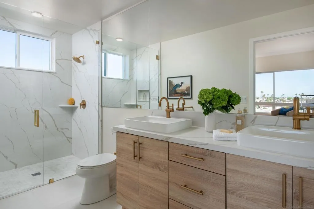 Designed for the modern buyer, this refined single-level residence blends volume and warmth with soaring ceilings, oversized windows, soft finishes, and natural textures that fill each room with light. The open floor plan features generous living spaces, a private balcony, in-unit laundry, and a curated kitchen with a quartz waterfall island and custom cabinetry. This beautifully appointed east-facing home offers two bedrooms and two baths, enjoying soft morning light and sweeping panoramic views of the surrounding neighborhood and tranquil mountain backdrop. Thoughtfully crafted for comfort and style, it provides peaceful outlooks and practical livability within one of San Diego’s most vibrant communities. This premier penthouse-level unit includes additional north-facing windows in the primary bedroom and bath, enhancing natural light and views. Every residence includes two secure parking spaces within a gated subterranean garage, along with smart pre-wiring and timeless design details that ensure each home remains both future-ready and enduringly stylish. Rendezvous brings a new perspective to urban living with a limited collection of 35 newly built condominiums and townhomes designed to stand apart. Set at one of North Park’s most energetic intersections, this boutique community places residents just steps from neighborhood cafés, independent retailers, and the area’s vibrant cultural scene. With limited-time buyer incentives and options that welcome VA, 1031 exchange, and contingent purchasers, Rendezvous presents a rare opportunity to secure ownership in one of San Diego’s most walkable and creatively driven neighborhoods.