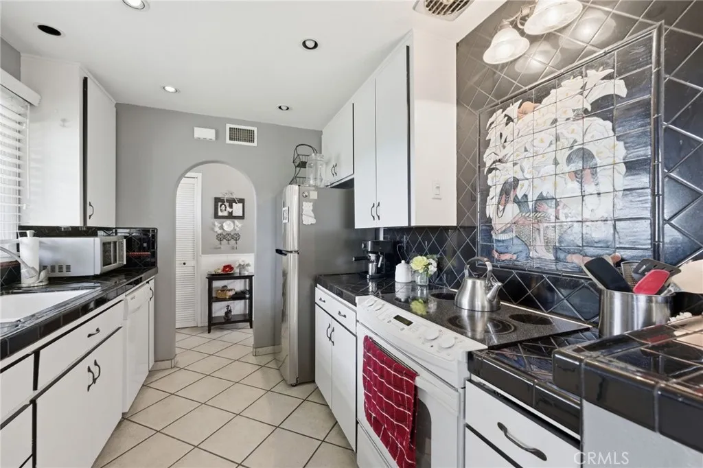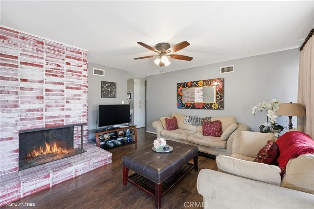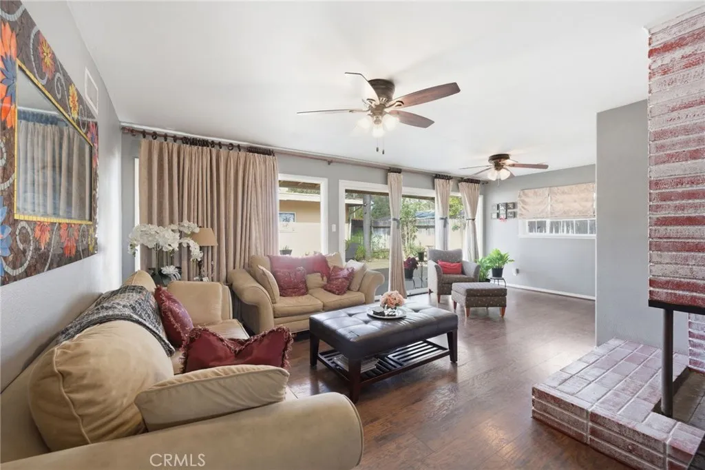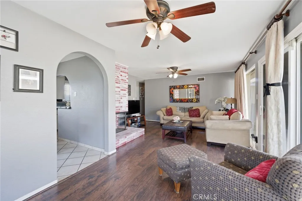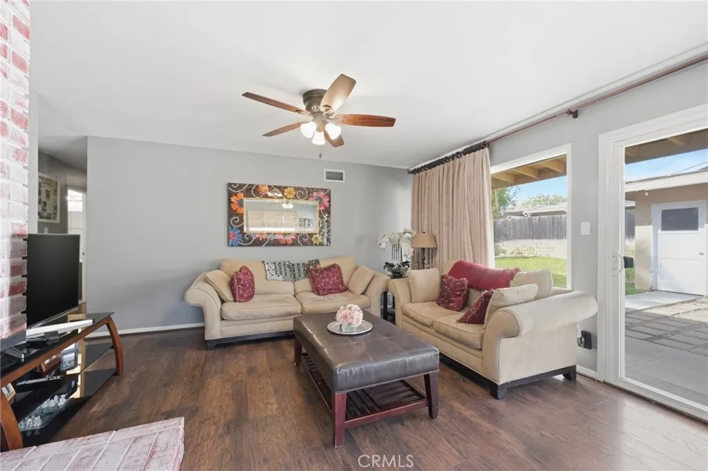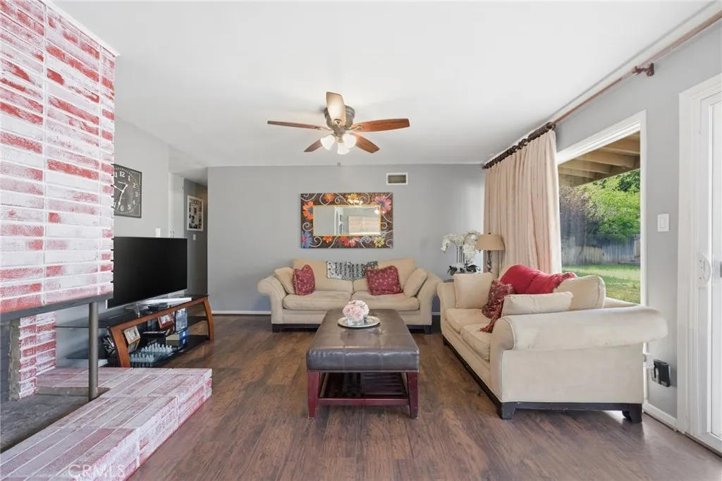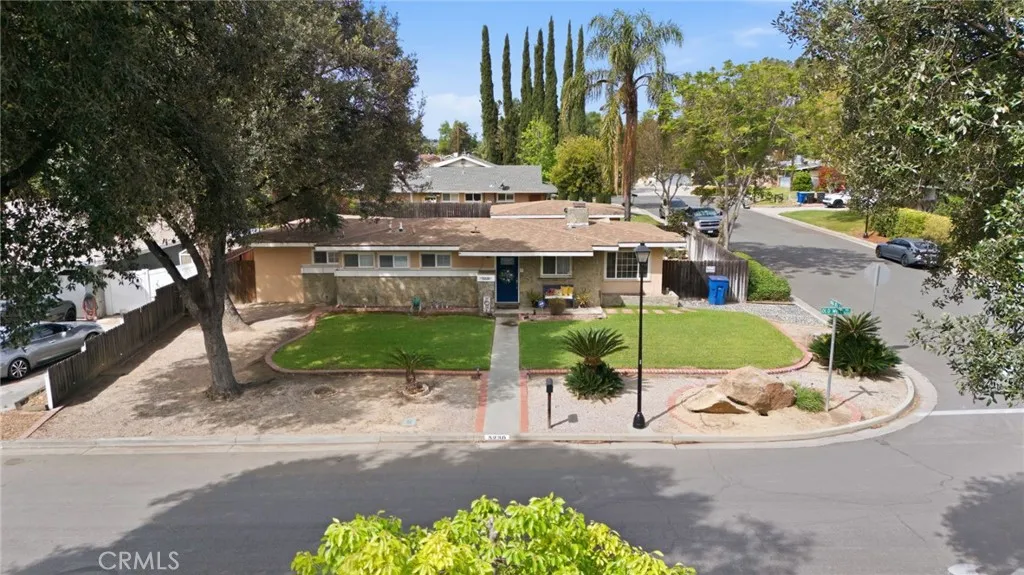 Welcome to 5230 Old Mill Rd, Riverside a charming single story home nestled in a quiet, tree lined neighborhood with inviting curb appeal and mature landscaping. Inside, you’ll find a light filled layout featuring rich wood style flooring, fresh neutral paint and a cozy living room with a painted brick fireplace. The kitchen offers white cabinetry, tile countertops, ample storage, recessed lighting and a window over the sink, flowing into a dedicated dining area. Bedrooms are spacious with wood flooring and ceiling fans, while the bathroom showcases custom tile and a unique vanity for added character. Additional highlights include dual pane windows, central HVAC, indoor laundry and built-in storage. The backyard offers multiple patio areas, a large open yard and a detached garage with potential for ADU or flexible use. Conveniently located near shopping, dining, parks, schools and with easy 91 freeway access. This home blends comfort, charm and opportunity.