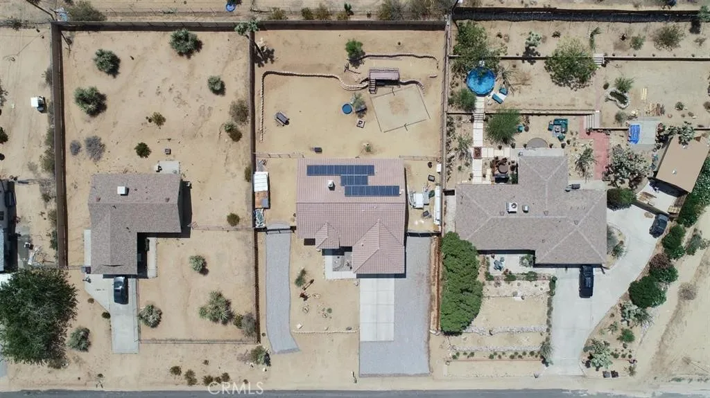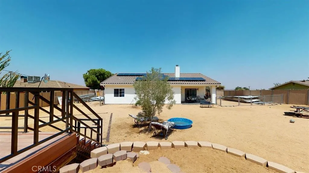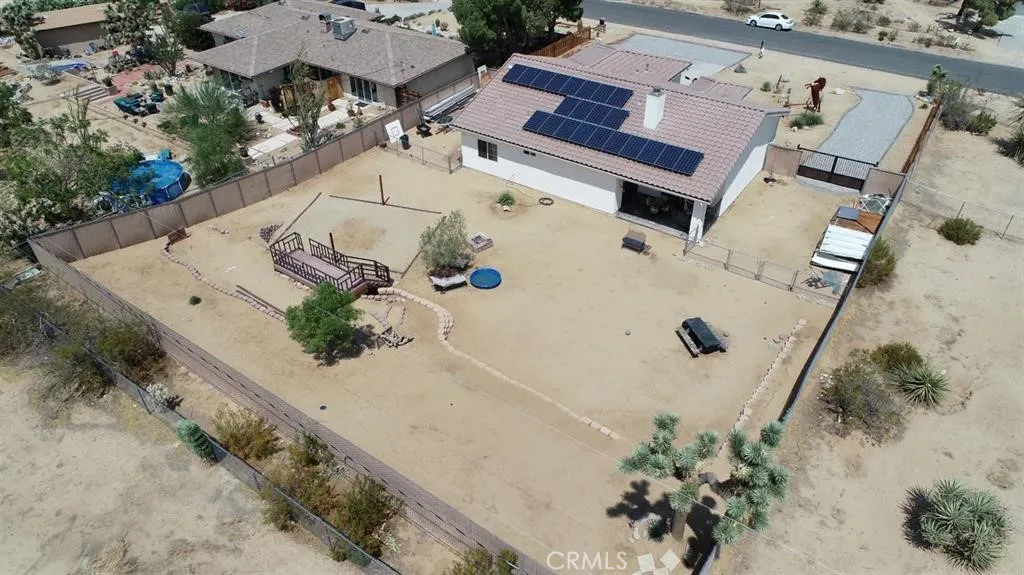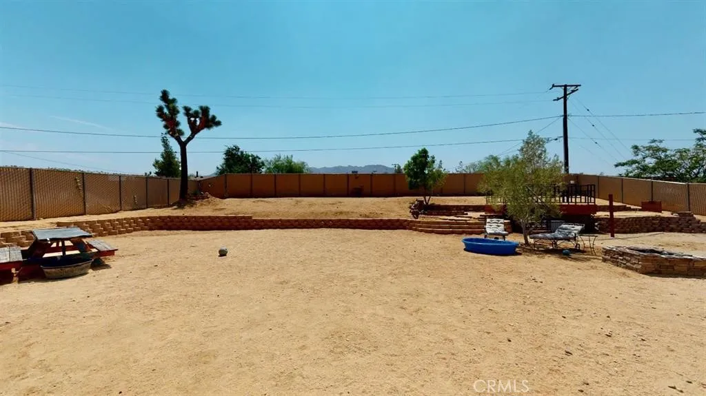 Your very own Desert Oasis. 25 miles from Desert Hot Springs and minutes from Friendly Hill Park. Joshua Tree National Park is just 6.2 miles. This beautiful home features 3 bedrooms and 2 bathrooms on almost half an acre of land. Granite top counters with matching appliances that bring an amazing accent to the wood and glass door cabinets. Bathrooms have been upgraded with new flooring, walls and a shower in the master with rock tile floor and two shower heads. Fire place in the living room adds that perfect ambiance for those cool desert evenings. French doors leading to back yard have blinds built into the dual pane glass. These doors are also located in the master bedroom to backyard. Back yard has fenced areas on both side of the house and a deck already for your above ground pool. Privacy slats are through the chain link fence and a cozy little covered patio to relax on. View is an amazing desert and mountain landscaping. Property is solar powered at a low rate. Water Softening System supplies cleaner and softer water to you.
