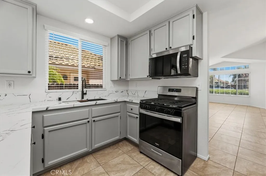 Don't miss this beautifully renovated SINGLE STORY in the Las Brisas area of Murrieta. It has all new exterior and interior paint. The open kitchen has New quartz counter tops, New sink and faucet, New range, microwave and disposal, New recessed lighting. The baths have been remodeled with a New walk in shower in the primary bath, New quartz counters, New lighting, hardware, and exhaust fans. There is New hardware and light fixtures throughout the living areas as well. This floor plan has high ceilings, a living room fireplace, tons of windows and lots of natural light. The seller has gone overboard to make sure everything is just right, even with New window coverings, window screens, exterior lighting, and even New attic insulation as well. The garage is newly finished with new man doors. The very private back yard has an aluminum patio cover, a new retaining wall and low maintenance landscaping with decorative rocks. This house is truly turn-key! Quiet peaceful location! Walking distance to highly rated Murrieta schools. ***ONE OF THE LOWEST PROPERTY TAX RATES IN MURRIETA*** AND NO HOA FEES OR RULES!