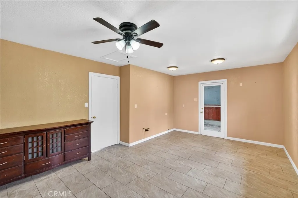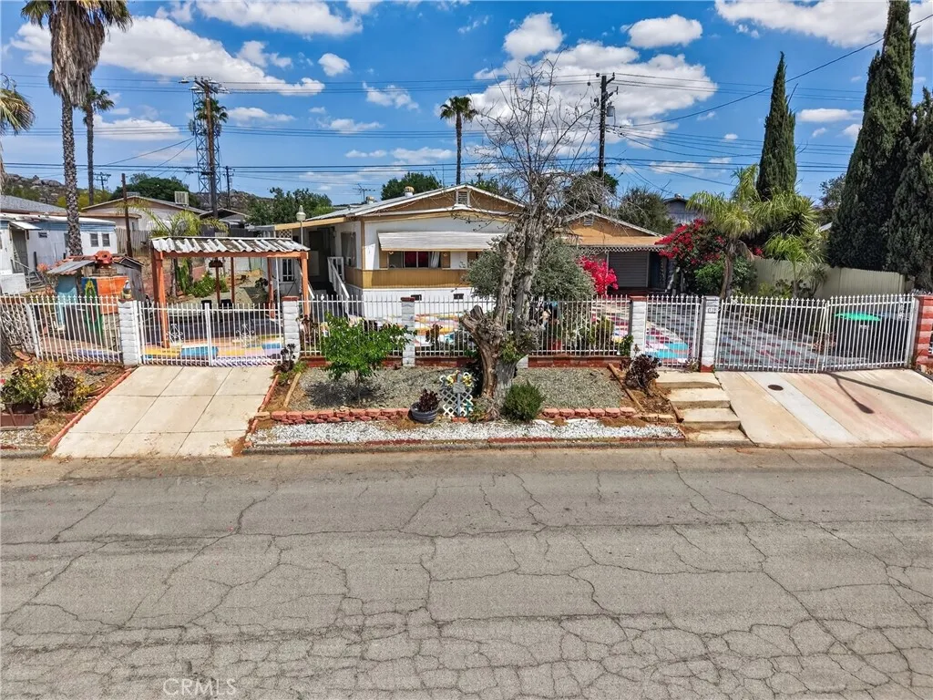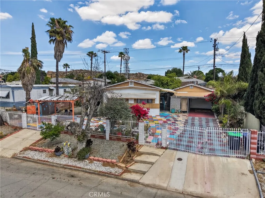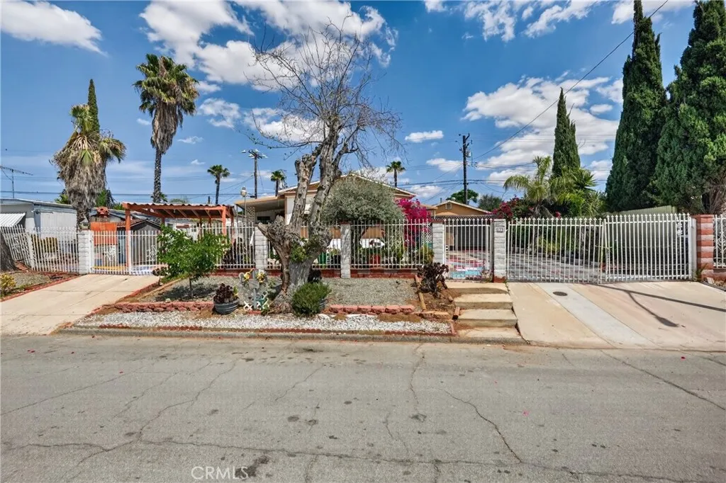 Lovely home in the City of Perris! This home features spacious bedrooms, a large living room, a dining area, and a cozy kitchen. It includes two bathrooms and is well maintained, with a detached garage and additional shed/storage. The primary bedroom has its own bathroom. The property sits on a spacious lot, perfect for entertaining, with fruit trees and a gated entrance for added privacy. Conveniently located near Enchanted Hills Elementary School, Enchanted Hills Park, the Metrolink station, and Downtown Perris. A must-see!