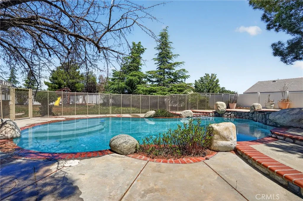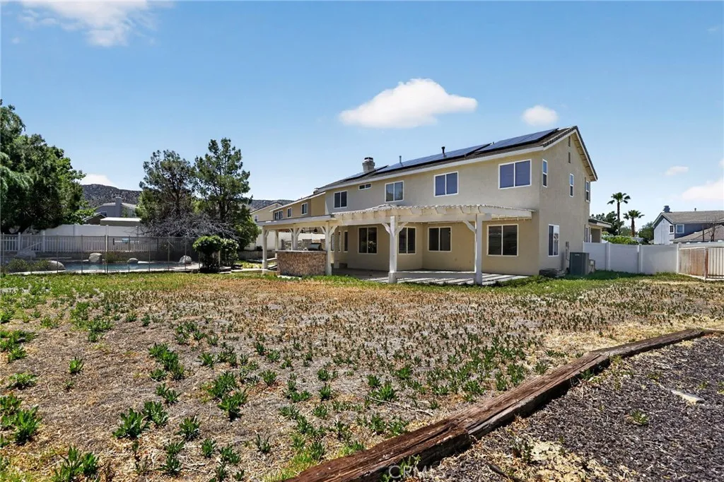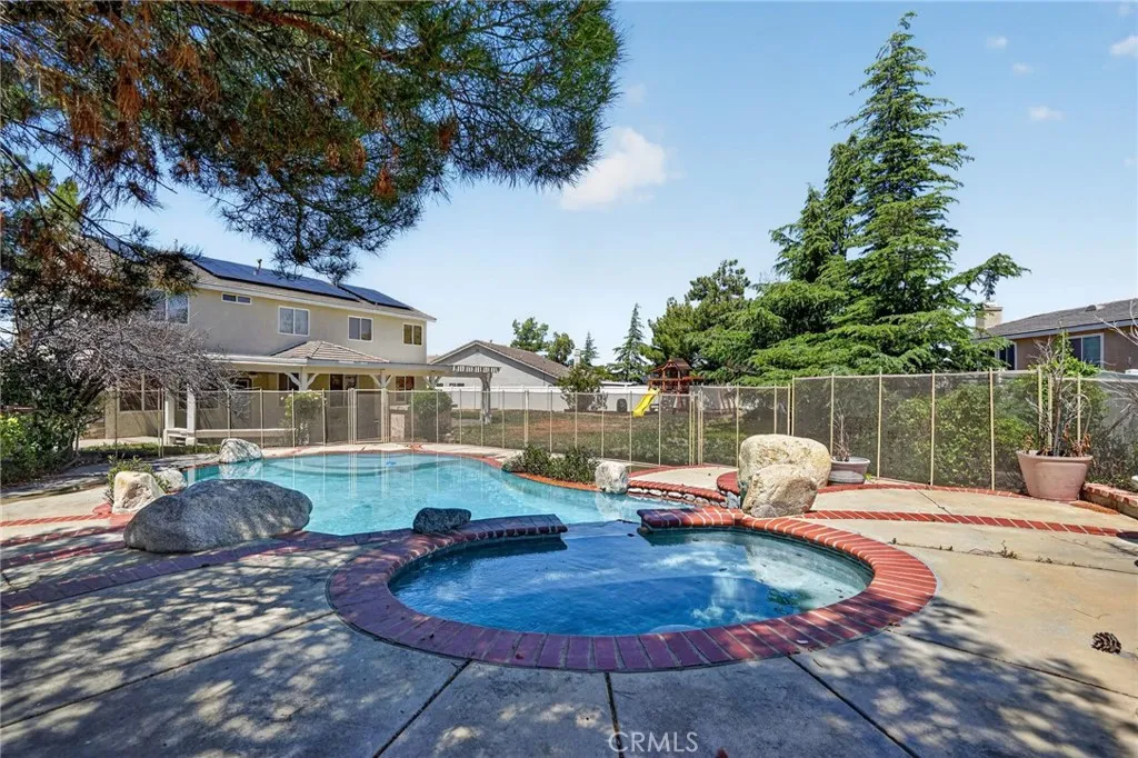 Welcome to this spacious and beautifully designed 6-bedroom, 3-bathroom home offering 3,325 square feet of comfortable living space on a generous 13,962 sq ft lot. From the moment you enter, you’ll appreciate the open floor plan, complemented by formal living and dining rooms—perfect for both everyday living and entertaining. The heart of the home is the inviting family room, featuring a large fireplace that creates a warm and welcoming atmosphere. The kitchen is thoughtfully designed with a central island, ample storage, recessed lighting, and an elegant chandelier, making it both functional and stylish. Convenience meets flexibility with one bedroom and a full bathroom located on the main floor—ideal for guests or multi-generational living. Upstairs, the spacious primary suite offers a grand double-door entry, a walk-in closet, and a private adjoining bathroom. A versatile loft provides additional living space for a home office, media room, or play area. Step outside to your own private oasis, complete with an in-ground pool and spa—perfect for relaxing or entertaining year-round. The home also features a 3-car garage and fully paid-off solar panels, offering energy efficiency and long-term savings. This home truly has it all—space, comfort, and standout amenities inside and out.