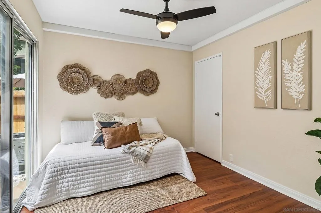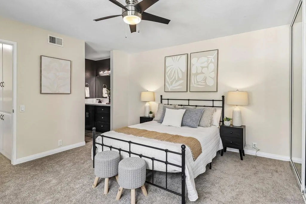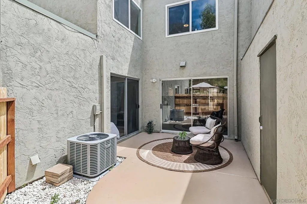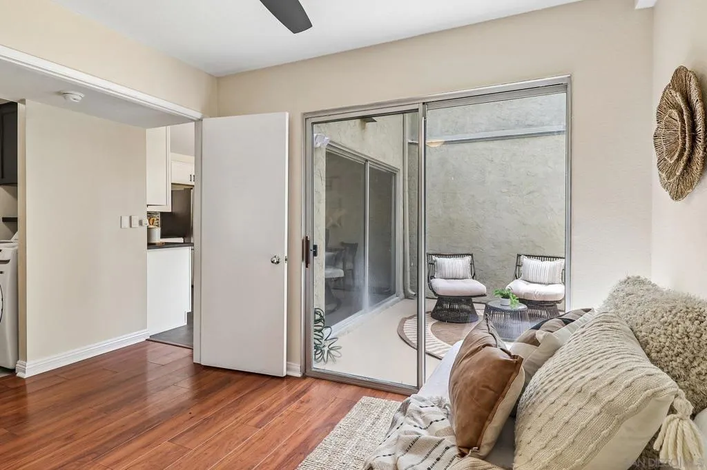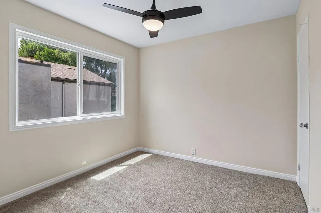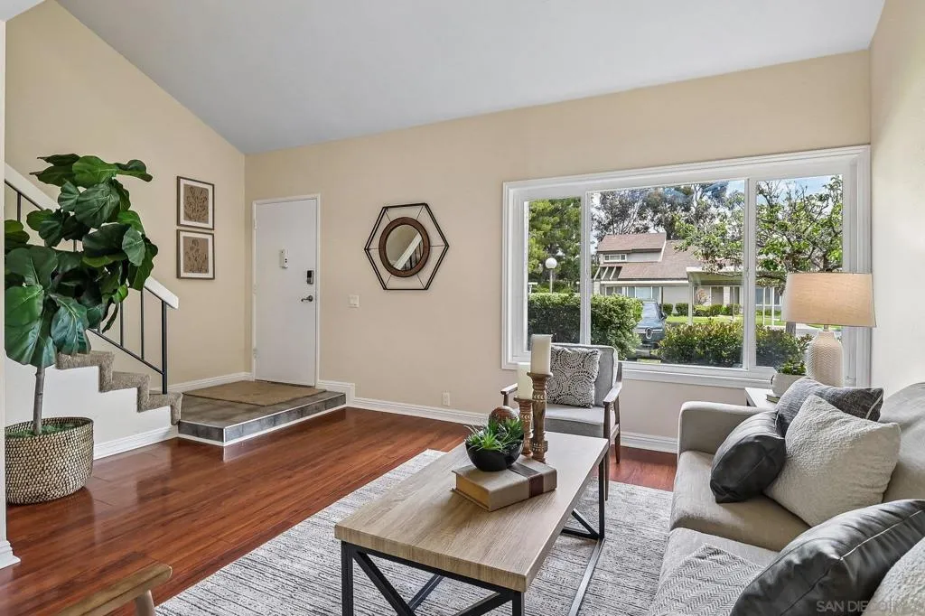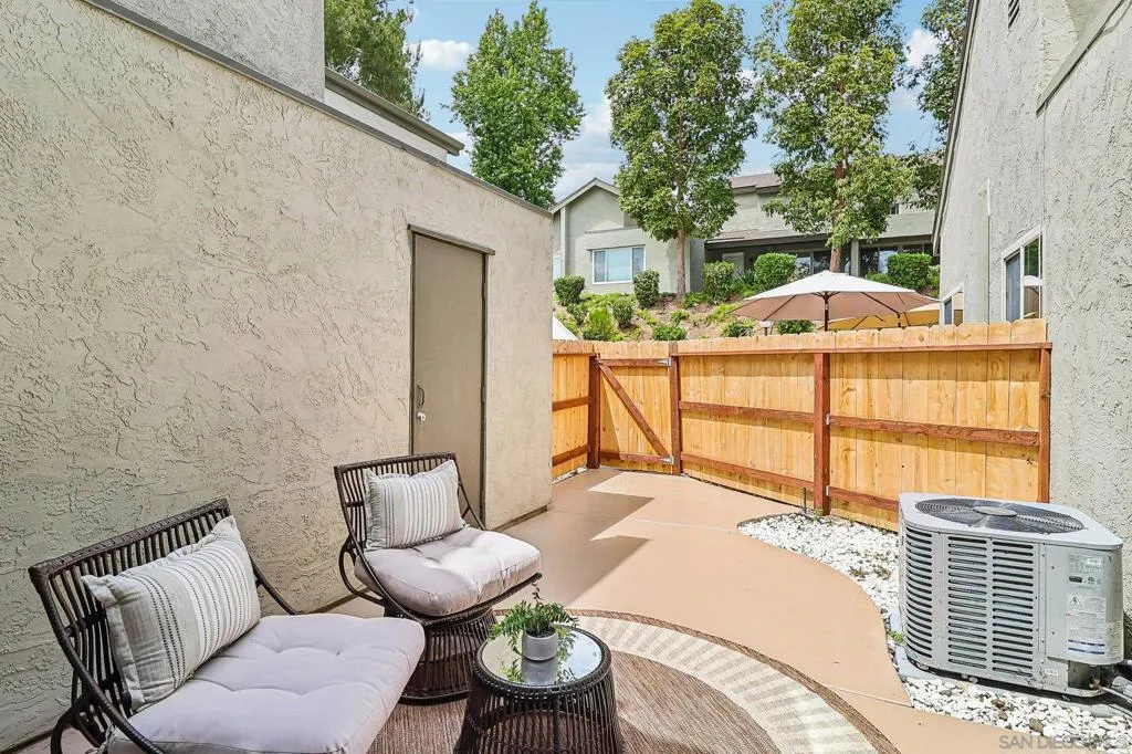 Welcome to 10828 Caravelle Place—an updated and move-in ready townhome in the highly sought-after Villa Martinique community of Tierrasanta, known as “The Island in the Hills.” This FHA/VA-approved 3-bedroom, 1.5-bath home offers approximately 1,250 sq ft of comfortable living with a functional layout that includes a desirable first-floor bedroom, perfect for guests or a home office. The remodeled kitchen features modern cabinetry and sleek black quartz countertops, opening to a bright living space with engineered wood flooring throughout. The home also features new carpeting and fresh paint. Upstairs, you’ll find a spacious primary suite, an additional bedroom, and a full bath with a separate vanity. Additional highlights include central A/C, full-size in-unit laundry, and two assigned parking spaces. Enjoy your private rear patio, ideal for relaxing or entertaining. Large storage area just off the back patio. Complex has access to community amenities, including a pool, tennis courts, and scenic walking trails. The HOA covers water, trash, fire insurance, and exterior maintenance. Located within walking distance to top-rated schools like Tierrasanta Elementary (with Spanish immersion), DePortola Middle, and Canyon Hills High, and just minutes to Mission Trails Regional Park, shopping, dining, and major freeways. This is a fantastic opportunity in one of San Diego’s most central and desirable neighborhoods.