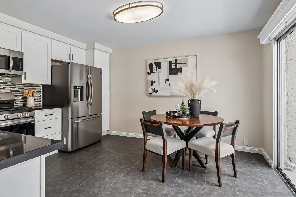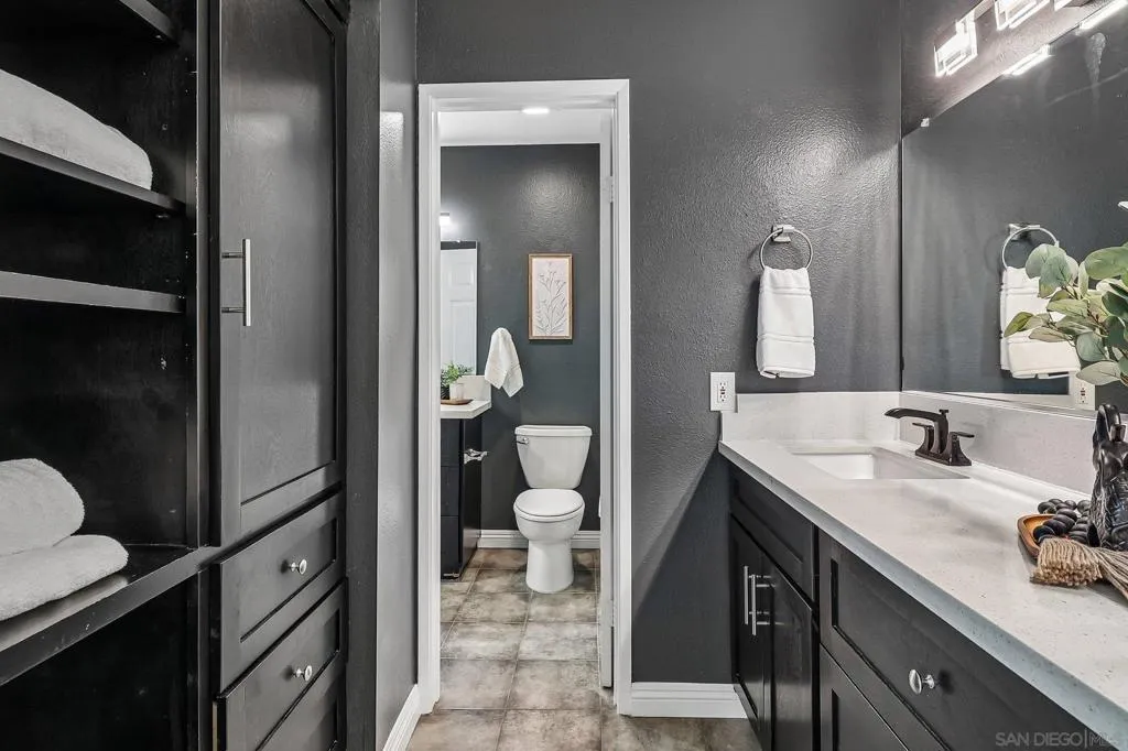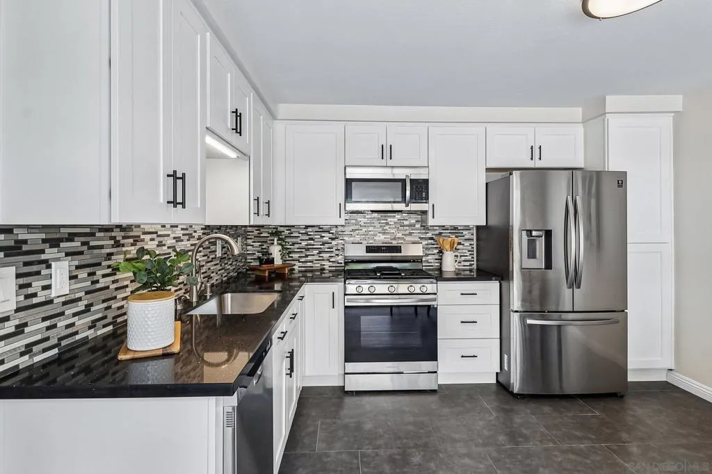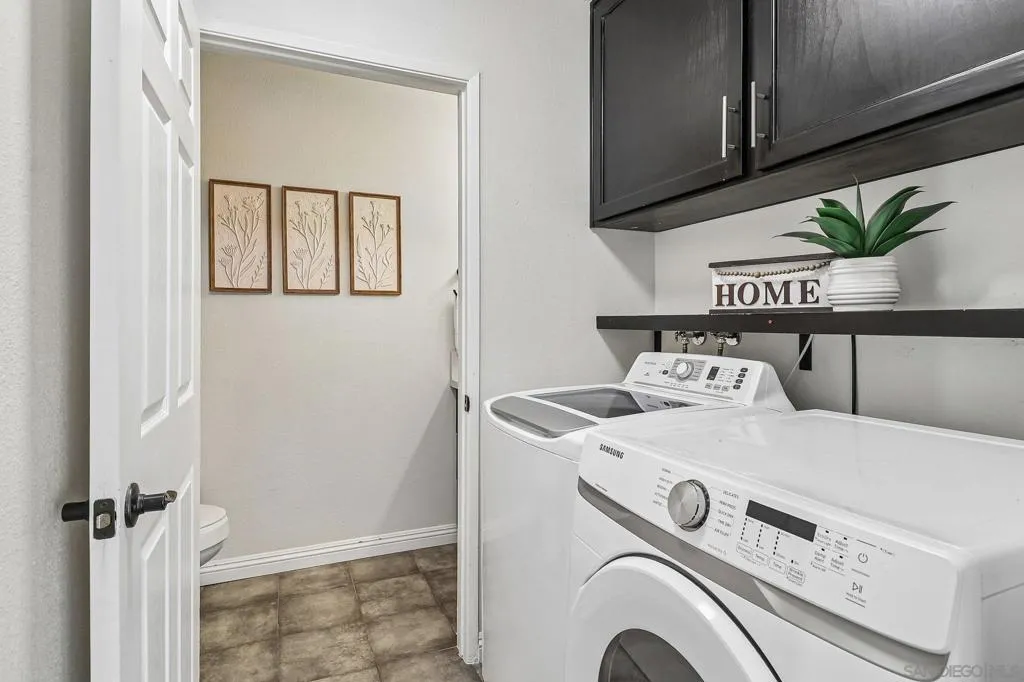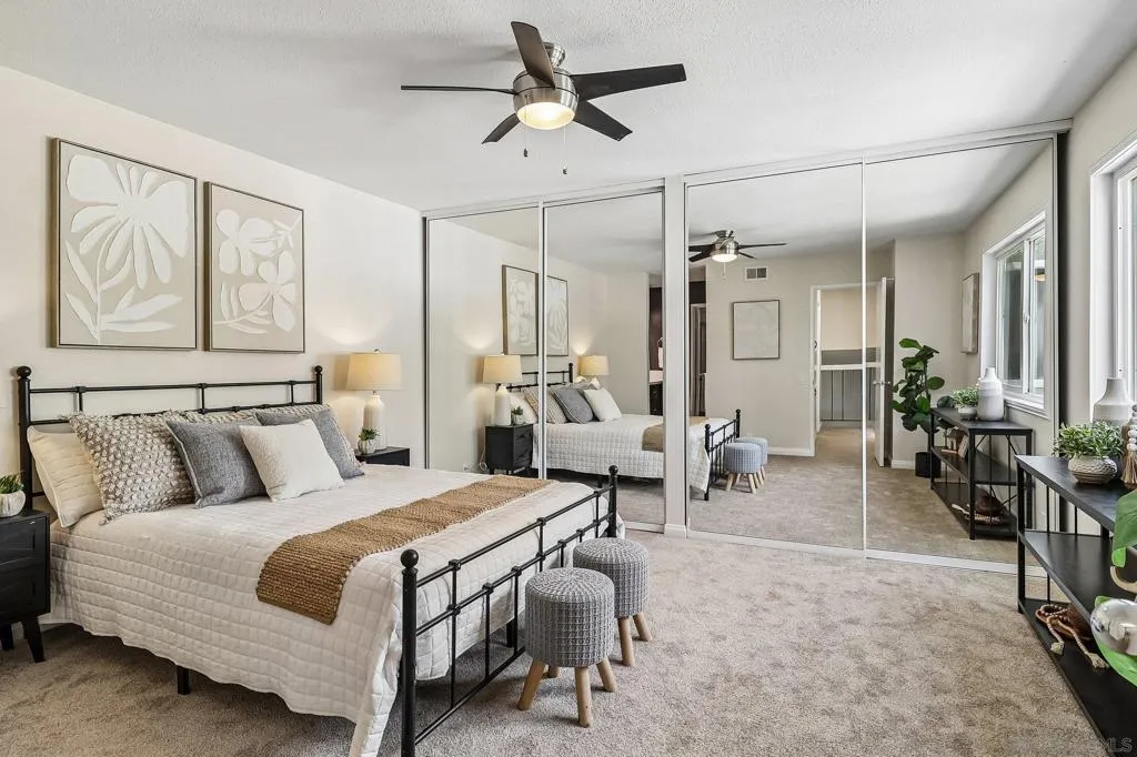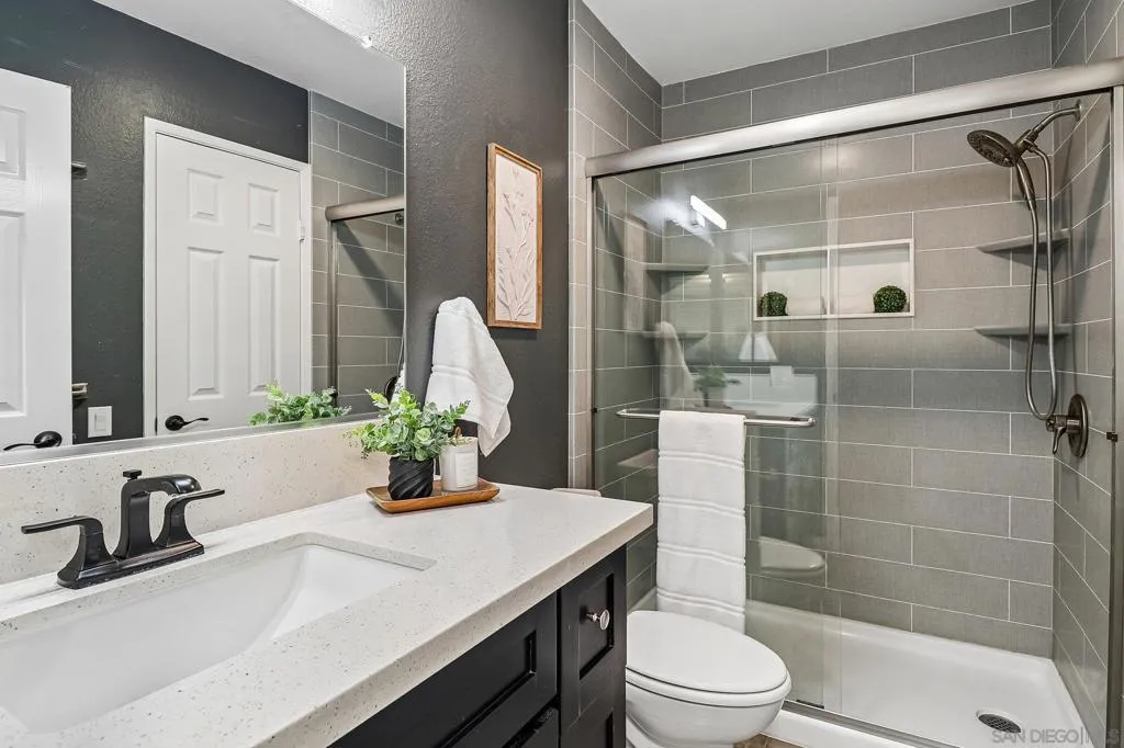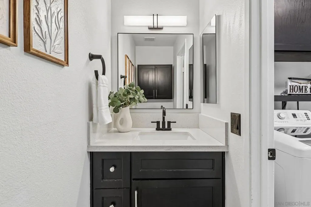 Welcome to 10828 Caravelle Place—an updated and move-in ready townhome in the highly sought-after Villa Martinique community of Tierrasanta, known as “The Island in the Hills.” This FHA/VA-approved 3-bedroom, 1.5-bath home offers approximately 1,250 sq ft of comfortable living with a functional layout that includes a desirable first-floor bedroom, perfect for guests or a home office. The remodeled kitchen features modern cabinetry and sleek black quartz countertops, opening to a bright living space with engineered wood flooring throughout. The home also features new carpeting and fresh paint. Upstairs, you’ll find a spacious primary suite, an additional bedroom, and a full bath with a separate vanity. Additional highlights include central A/C, full-size in-unit laundry, and two assigned parking spaces. Enjoy your private rear patio, ideal for relaxing or entertaining. Large storage area just off the back patio. Complex has access to community amenities, including a pool, tennis courts, and scenic walking trails. The HOA covers water, trash, fire insurance, and exterior maintenance. Located within walking distance to top-rated schools like Tierrasanta Elementary (with Spanish immersion), DePortola Middle, and Canyon Hills High, and just minutes to Mission Trails Regional Park, shopping, dining, and major freeways. This is a fantastic opportunity in one of San Diego’s most central and desirable neighborhoods.