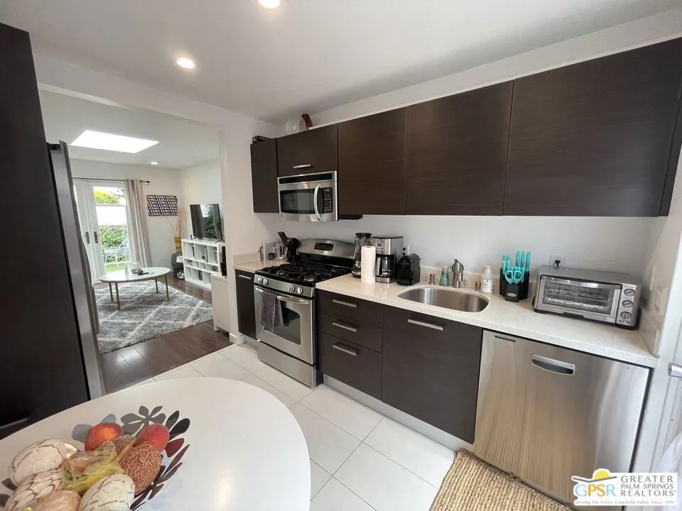 DOGS & CATS WELCOME! 2 PRIVATE YARDS AND IN UNIT WASHER DRYER IN HEART OF SM. Experience the best of indoor/outdoor California living in this beautifully renovated bungalow that truly feels like a private home.Rare Outdoor LivingTwo private yardsFront yard: Spacious, accessed through elegant French doors from the living room + doggy door for petsRear yard (off kitchen): Ideal for BBQ, dining, and relaxingHome FeaturesBright, airy layout with large skylight in living roomQuiet 4-unit building with only two shared wallsEnhanced soundproofing between unitsTwo private entrances (front + rear yard access)Living room leads to front yard through French doorsDoor from kitchen leads to private yard great for diningKitchenCaesarstone countertopsStainless steel appliances:Gas stove/ovenDishwasherLarge refrigerator with water/ice makerMicrowaveComfort & ConvenienceWood-style flooring throughout + tiled bathroomIn-unit washer & dryerCentral A/C and heatingCustom top-down/bottom-up blinds + blackout blinds in bedroomsSpacious primary bedroom fits a king bed + built-in drawersAmple closet spaceSmart Home FeaturesRing doorbell with videoNest thermostat (control temperature remotely great for pets)ParkingOne (1) reserved parking space availableEV charger availablePrime LocationJust blocks from Ocean Park Blvd: cafes, restaurants, gyms, yoga studios, banks & parks~10-minute bike ride to the beachEasy access to Westwood, Brentwood, Beverly Hills, and major freewaysOwner pays for water and trash and gardener. Tenant pays for all utilities, internet and cable.