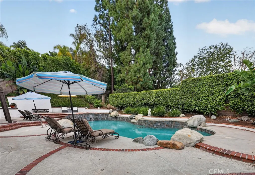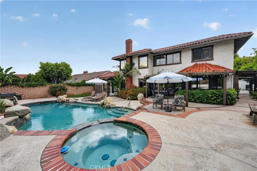 5-Bedroom Home with Pool, Spa, & 3 Car Garage with MAIN FLOOR Primary BEDROOM. Tucked away on a tranquil cul-de-sac street, this stunning 5-bedroom, 3-bathroom home offers 3,420 square feet of thoughtfully designed living space on a generous 10,480 square-foot lot. From the moment you step inside, you'll be captivated by the soaring vaulted ceilings, which create a bright, open, and airy ambiance throughout the living room, family room, and formal dining room. The family room’s inviting fireplace adds warmth and charm, seamlessly flowing into the chef’s kitchen. Designed for both style and functionality, the kitchen boasts sleek stainless steel appliances, gleaming granite countertops, and a spacious island, making it perfect for entertaining and everyday gatherings. The main-floor primary suite is a serene retreat, featuring a spa-like en-suite bathroom with a luxurious walk-in shower. Four additional large bedrooms upstairs with new carpet share a hall bathroom with a walk in shower, large vanity with dual sinks, providing both comfort and convenience. A spacious main-floor laundry room adds to the home’s practicality. Just off the living and dining room is your large guest bathroom. The entire home has fresh interior paint and all bedroom have new carpet. The front of the home has great curb appeal and offers a peaceful and inviting covered gated sitting area. Step outside into your private backyard oasis, where a sparkling pool and spa invite you to relax, unwind, and entertain. Whether you're basking in the sunshine or hosting memorable gatherings under the stars, this outdoor retreat is designed for year-round enjoyment. Located in a prime area, this home offers the perfect blend of luxury and convenience. Located next to Orange Park Acres and Villa Park. Outdoor enthusiasts will appreciate easy access to multiple hiking trails, Santiago Regional Park, while commuters will enjoy quick connections to the 55, 91, and the 241 toll road. This rare gem won’t last long—schedule your private tour today!