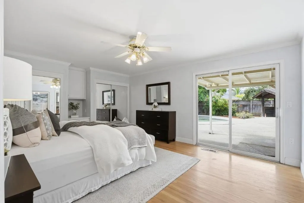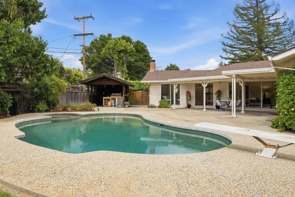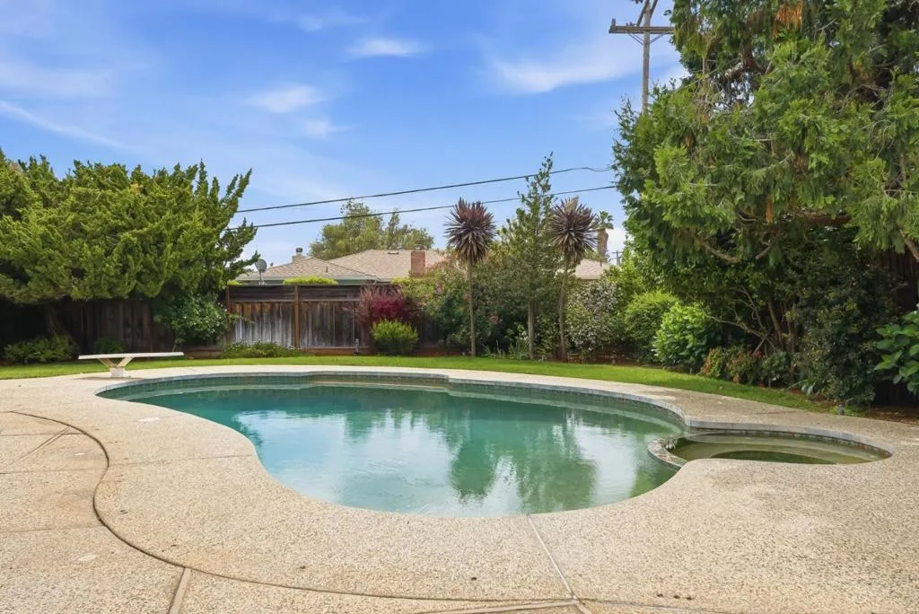 Welcome to 12817 Saratoga Glen Ct, a beautiful single story home located in the highly sought after Saratoga Woods. This 4 bed, 2.5 bath home features 2,219 sq ft of living space on a premium 13,000 sq ft pie shaped lot in a peaceful cul-d-sac. Bright and inviting, this Quintessential ranch style home has a well designed floorplan with many features including hardwood flooring and fresh interior paint. The vaulted living room features a fireplace and a wall of windows overlooking the gorgeous expansive backyard oasis with sparkling pool and spa. Separate family room/den offers an additional fireplace and backyard access. The primary suite serves as the perfect retreat featuring views of the lush grounds, dual mirrored closets and a fully remodeled custom spa-like bath with a walk-in shower. Enjoy seamless indoor outdoor living with a beautifully landscaped backyard adorned with prolific orange & lemon trees, Japanese Maple, camelias, hibiscus and an array of other beauties! Finished garage, additional workshop, excellent storage shed and RV/boat parking too! Conveniently located near Saratoga Woods Swim Club offering pool and/or social memberships, Prospect High, parks, shopping, dining, and easy access to 85 & Lawrence Expressway for easy commutes.