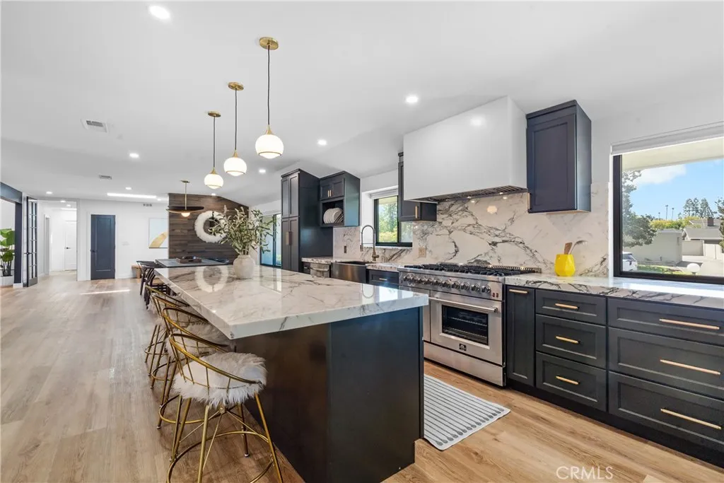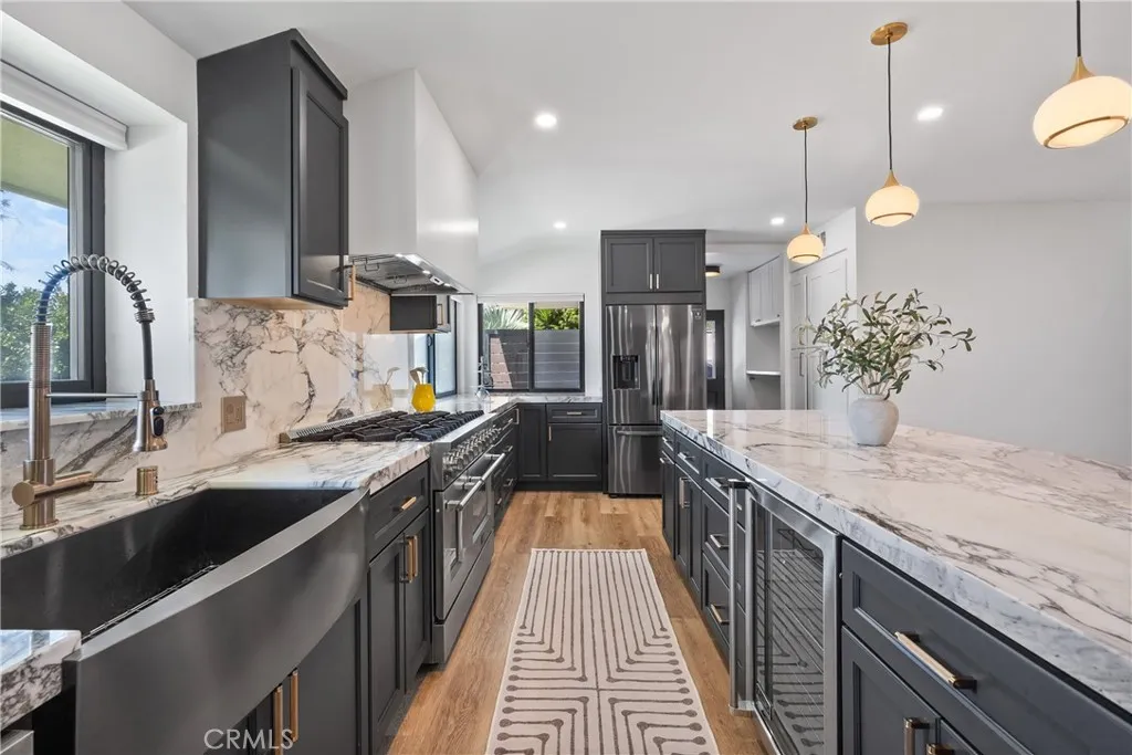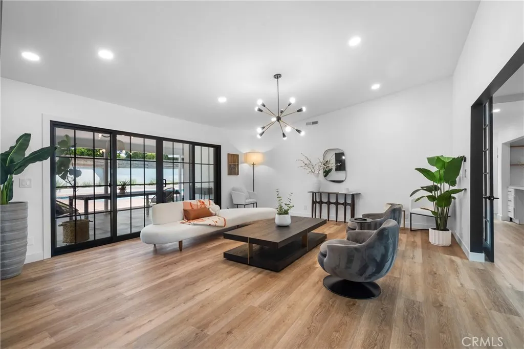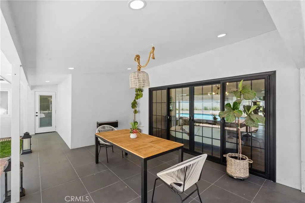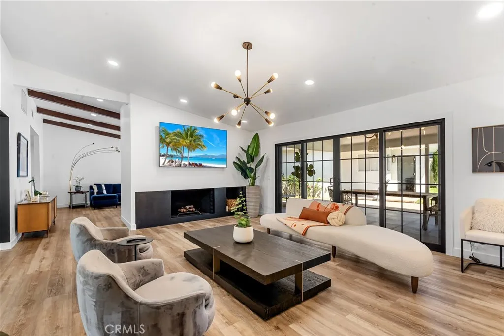 This reimagined residence offers a refined living experience in North Tustin, one of Orange County’s most established communities. The location provides a rare balance of convenience and lifestyle, situated just five minutes from Fairmont Private School and within the award-winning Tustin Unified School District, with nearby access to Peters Canyon regional trails and local international dining. The interior is defined by an open, light-filled floor plan characterized by beamed wood ceilings and extensive marble finishes. A central kitchen—anchored by an oversized island, 48" premium range, and integrated Viking refrigeration—serves as the functional heart of the home, connecting seamlessly to the dining and living areas. Secondary spaces, including a pantry and laundry room with custom tilework and dedicated storage, emphasize a focus on everyday utility. The primary suite is designed for privacy and scale, featuring a custom-built dressing area with his and her closets and a make-up vanity. A marble-finished en-suite equipped with a multi-head oversized walk-in shower and standalone tub. Additional bedrooms offer generous proportions, accented by individualized built-ins and bay windows. Set on a 14,000-square-foot lot, the grounds include stone-paved patios, a resort-style pool, and a detached exercise room. The lawn area is thoughtfully positioned for future RV access. An oversized, drywalled garage with cathedral ceilings adds significant utility to the property or a possible ADU for extended living. This home is a thorough exercise in quality and detail; we invite your most discerning clients to experience the craftsmanship firsthand.