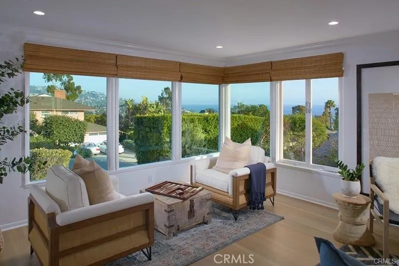 Freshly updated, this charming Laguna Beach single-level cottage, with no stairs, is oozing with charm and character. With spectacular ocean, downtown, and city lights views, and an easy walk to town location, you are all set for convenience and fun. Features include white-wash hardwood floors throughout, vintage style Dal tile bathrooms, a large view living room with a fireplace, a kitchen with painted white cabinetry, stainless steel appliances, and white Carrera countertops, new window treatments through out, air conditioning, built-ins, laundry room, two large outdoor patios, one with a fireplace, and a two car detached garage. UNFURNISHED 12-month lease. Agent is Owner.