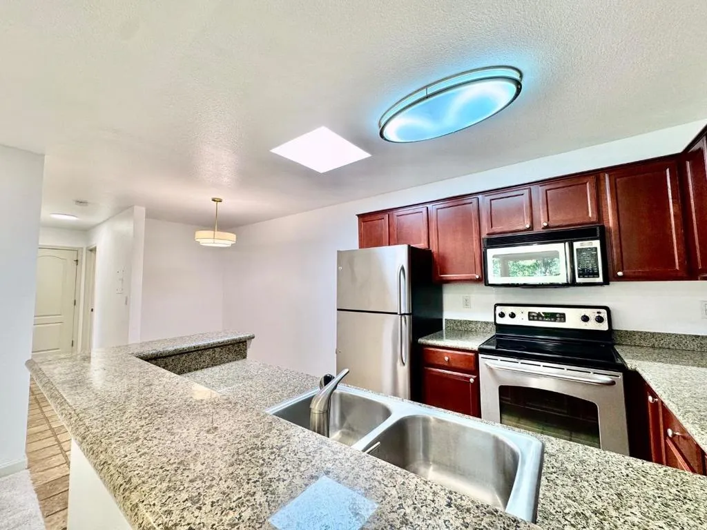 Welcome to 476 Dempsey Rd #277where comfort meets convenience in a prime Milpitas community. This beautifully remodeled condo offers a stylish, open-concept layout with modern upgrades throughout. The bright living room features plush carpeting, a window A/C unit, and access to a private balcony with peaceful tree views. The updated kitchen shines with granite countertops, cherry wood cabinets, stainless steel appliances, a new dishwasher, and a skylight. Additional highlights include fresh paint, new lighting, double-pane windows, low-maintenance outdoor space, and a dedicated carport. Ideally located near major highways, BART, shopping, the Great Mall, and top tech campusesand within the highly rated Milpitas school districtthis move-in ready home is a fantastic opportunity.