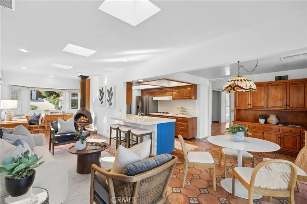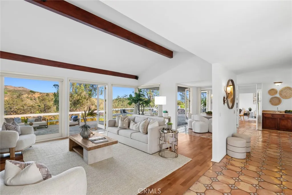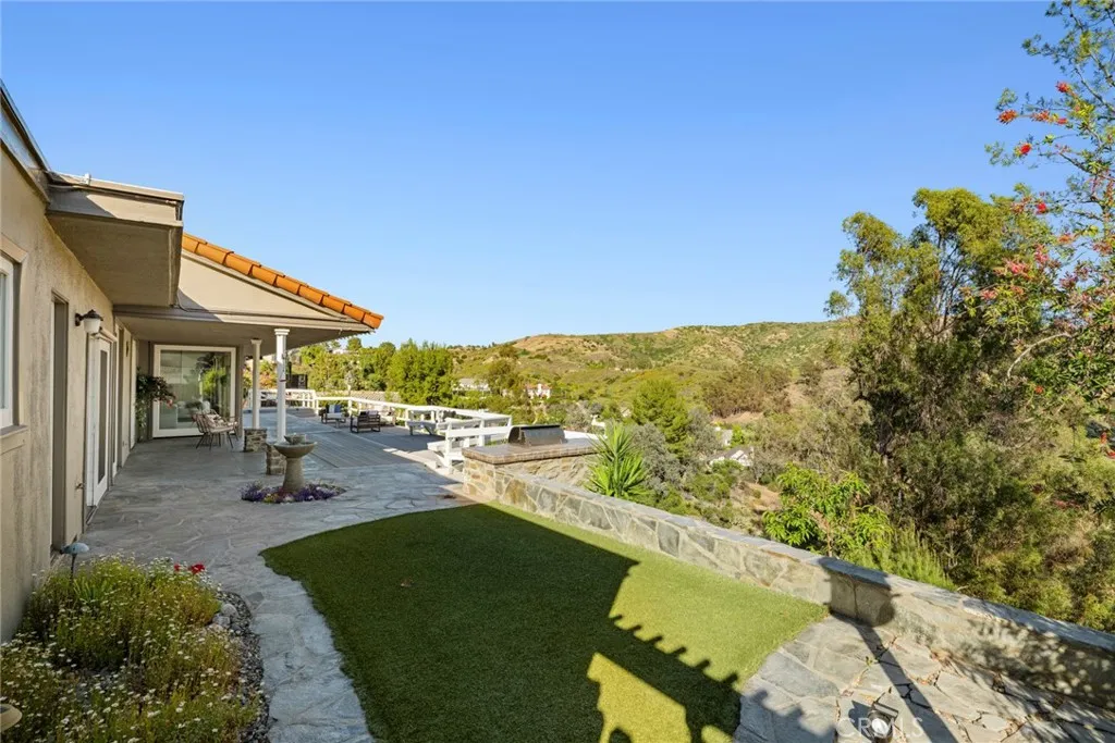 Tucked on one of North Tustin’s most desirable streets, this single-level mid-century residence captures sweeping canyon views from the moment you enter. Originally designed by renowned architect John Lyttle, the home is positioned to maximize light, privacy, and its panoramic setting offering a seamless connection between indoor living and the natural landscape beyond. Spanning nearly 2,300 square feet, the layout is both functional and inviting, with expansive living spaces oriented toward the view and a natural flow that supports easy, everyday living. Walls of glass frame the horizon, while the main living areas open effortlessly to a series of outdoor decks and terraced grounds creating multiple spaces to relax, entertain, or simply take in the surroundings. Set on an expansive 34,650 square foot lot, the property features thoughtfully designed outdoor areas, including several usable, walkable terrace levels that extend the living experience beyond the interior. The setting offers a rare combination of scale, privacy, and accessibility all on a wide, easy-to-navigate street. The home offers two bedrooms plus a den, providing flexibility for a home office, guest space, or potential third bedroom conversion. Recently refreshed with new interior paint, professional staging, and a clean, modern presentation, the home is move-in ready while still offering an opportunity to personalize over time. With its architectural pedigree, single-level layout, and compelling indoor-outdoor connection, this is a rare offering that balances livability, design, and setting in one of the area’s most sought-after neighborhoods.